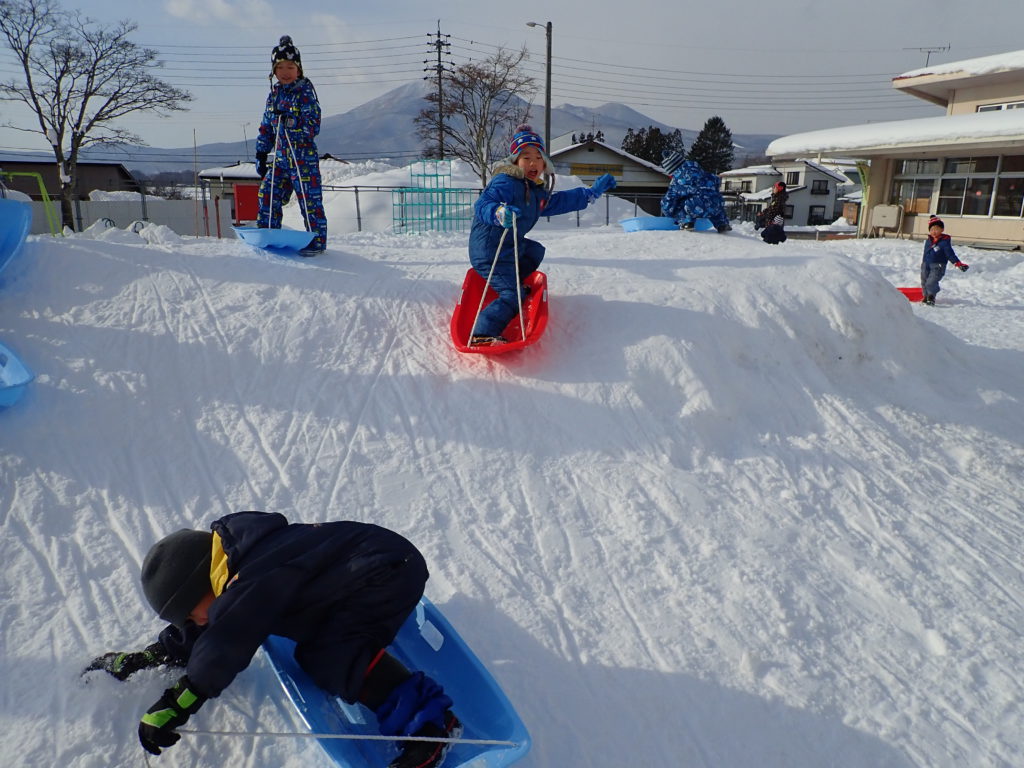 今年はまだ雪が少ないのですが、雪山を作って頂いたことで、子ども達の遊びもダイナミックになってにました。