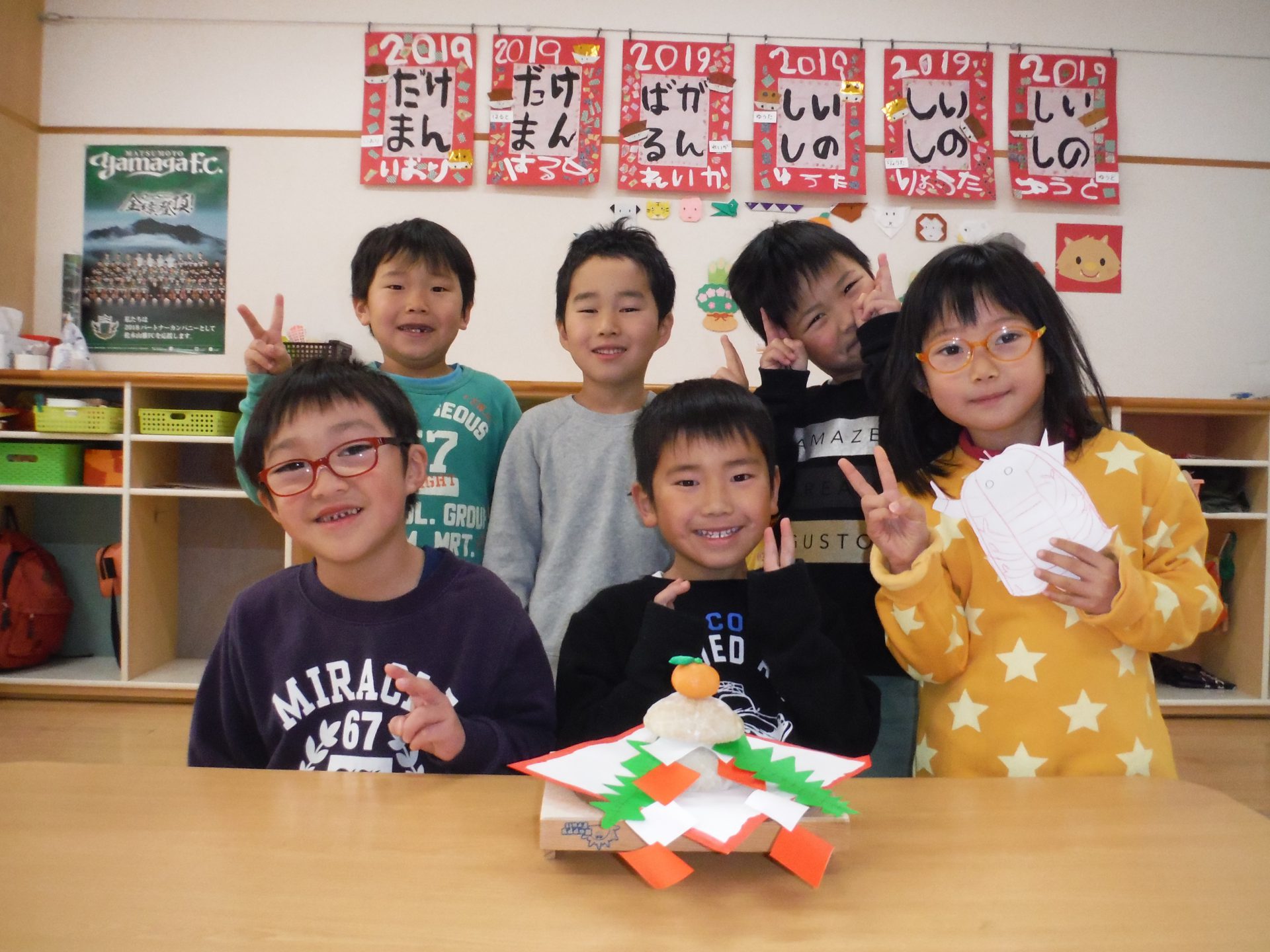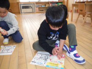 行事も絵本を調べみんなで鏡もちの飾りを作りました。