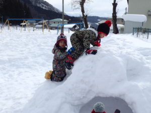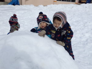 これからも日頃から慣れ親しみ安心できる環境の中で旺盛な探求意欲を発揮できるよう、また雪遊びなど様々な経験を何度もくり返しながら子どもの興味・関心の幅が更に広がるようにしていきたいです。