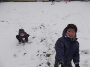 午後には雪はほぼ解けてしまったので、本当に一瞬の雪遊びでしたが、子ども達はとっても楽しいひと時を過ごしました。また雪が降るといいね!!