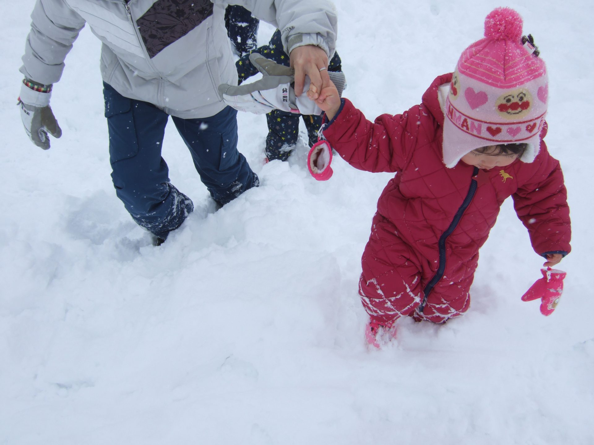 そんなお友達は自ら保育士の手を引いて雪の上をお散歩です。