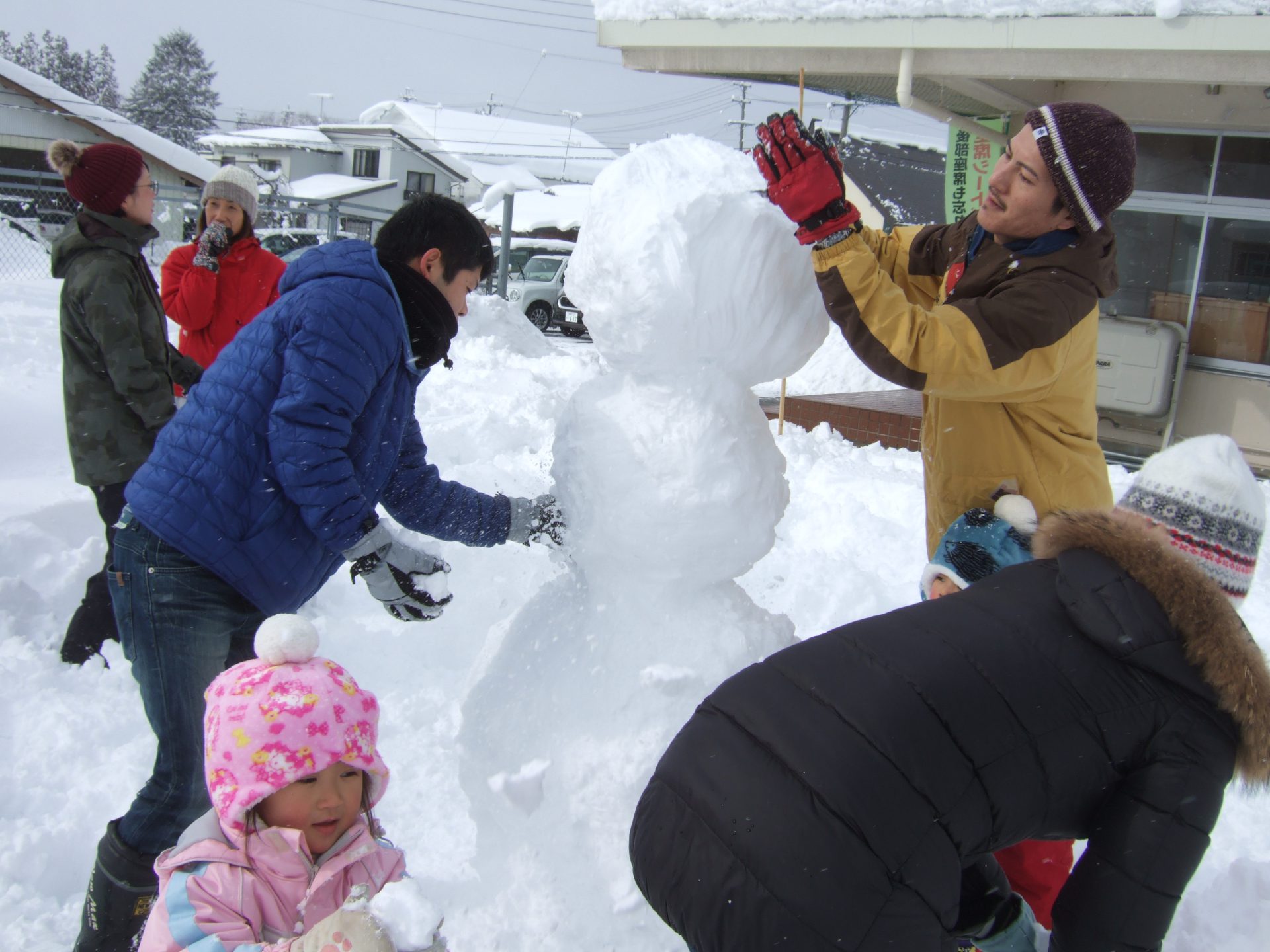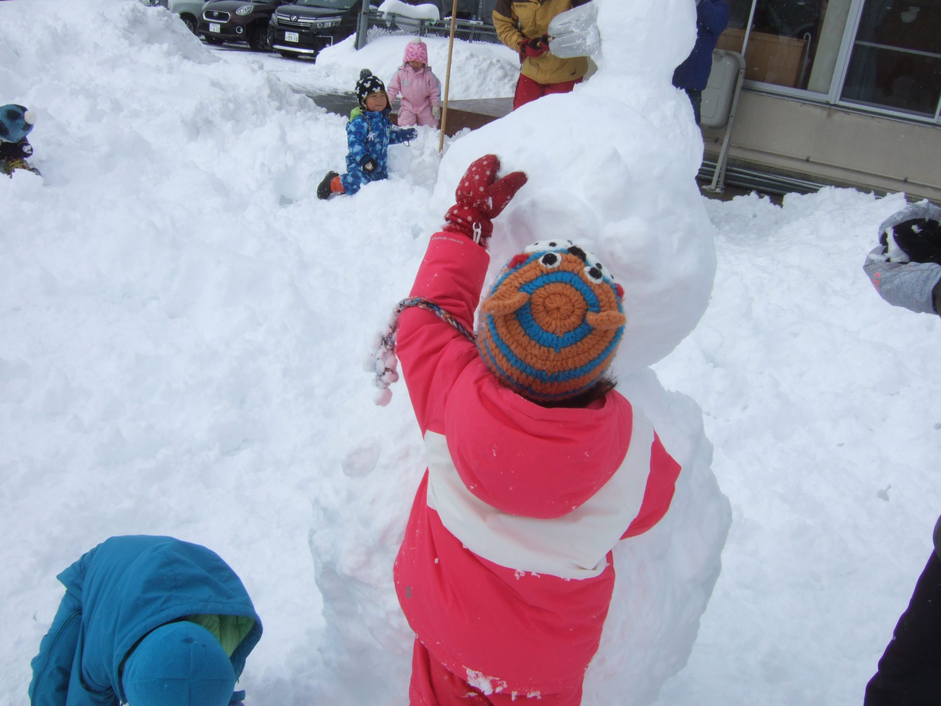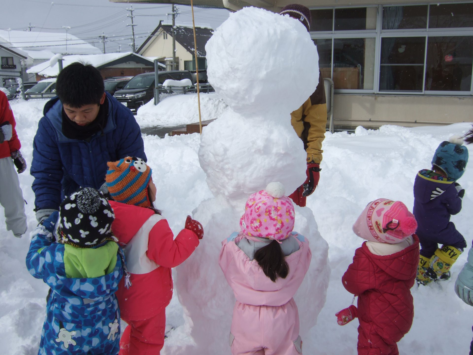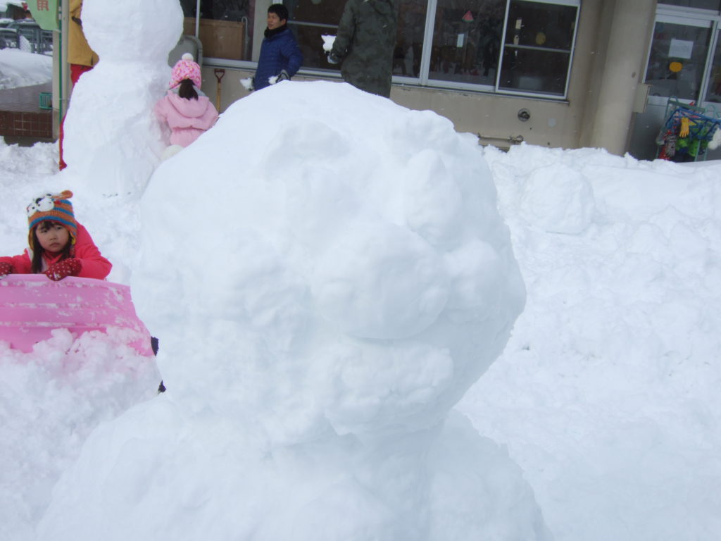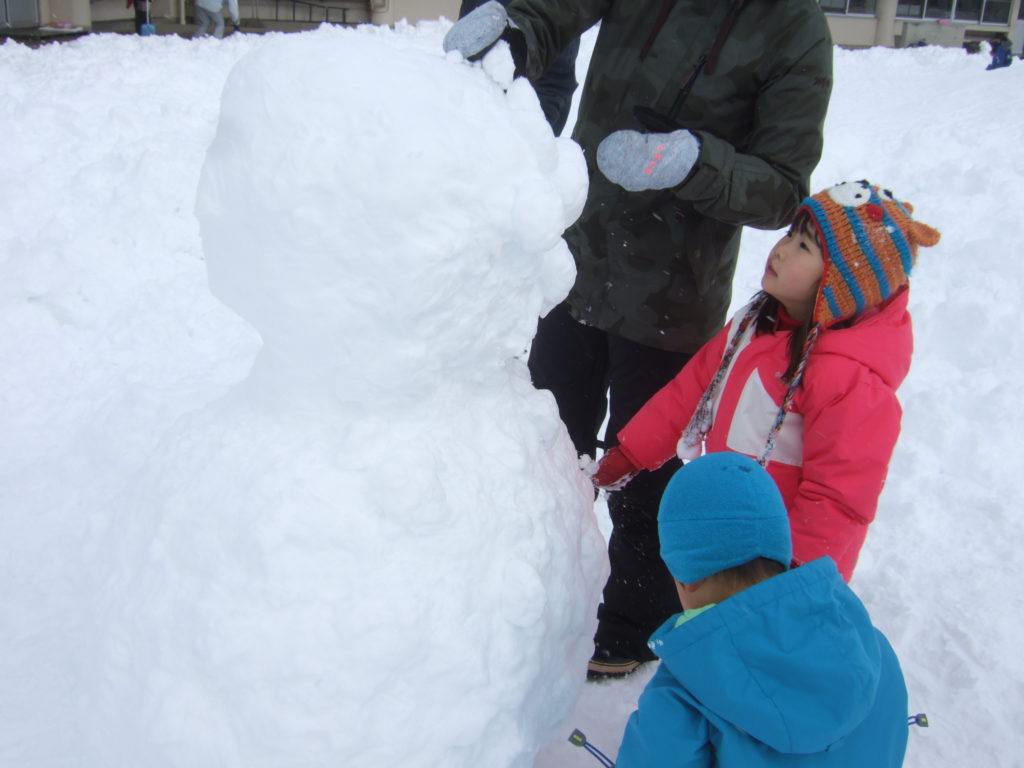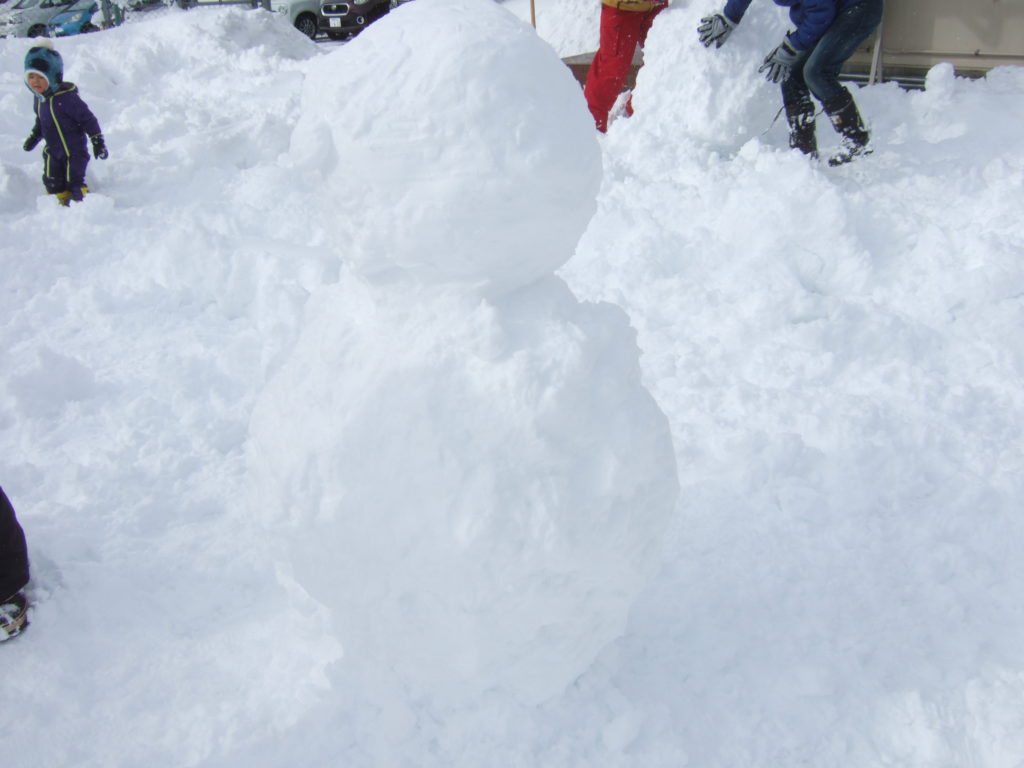 さすがお父さん達!ひょいっと重い雪玉をのせていましたよ。
