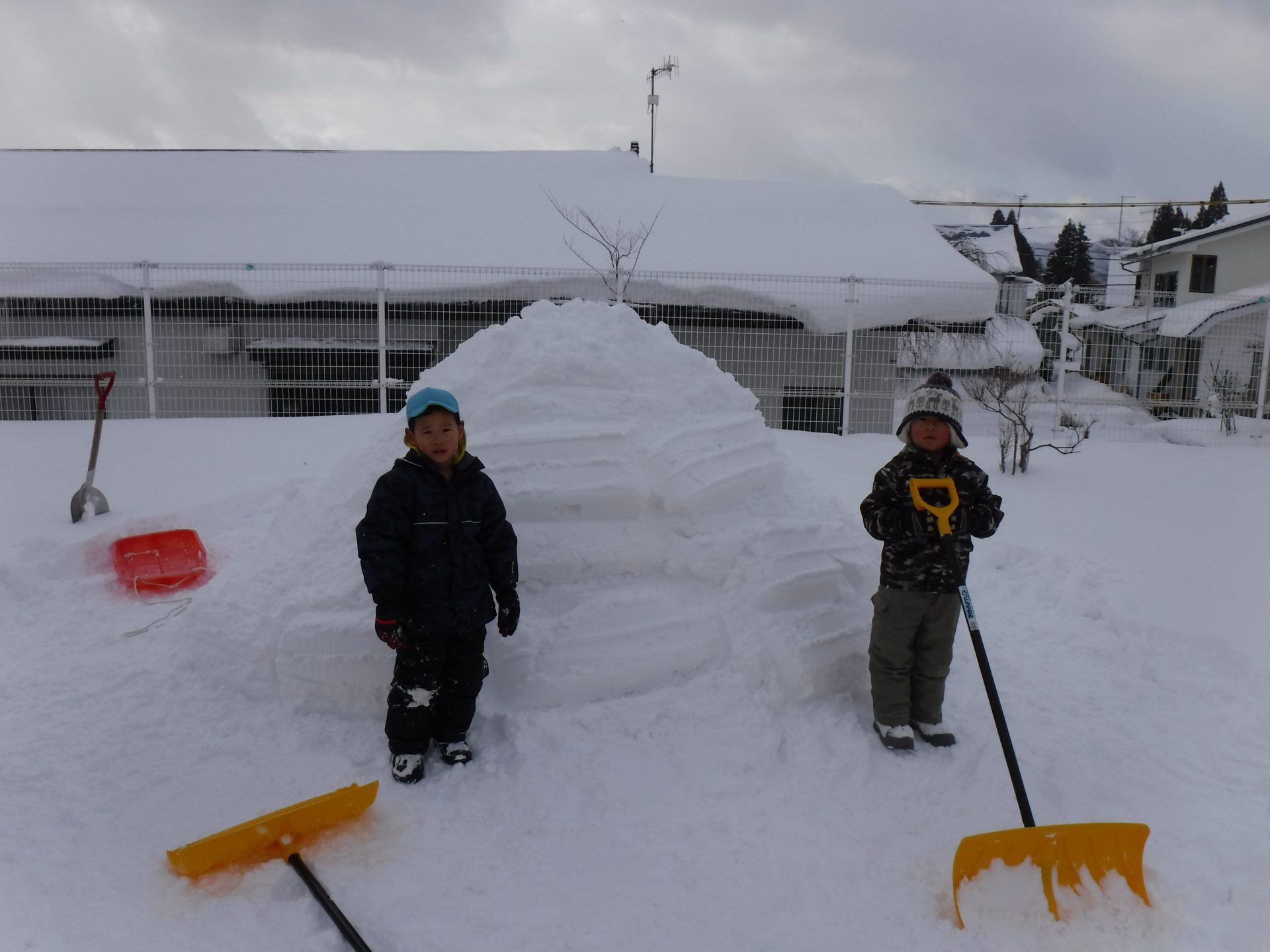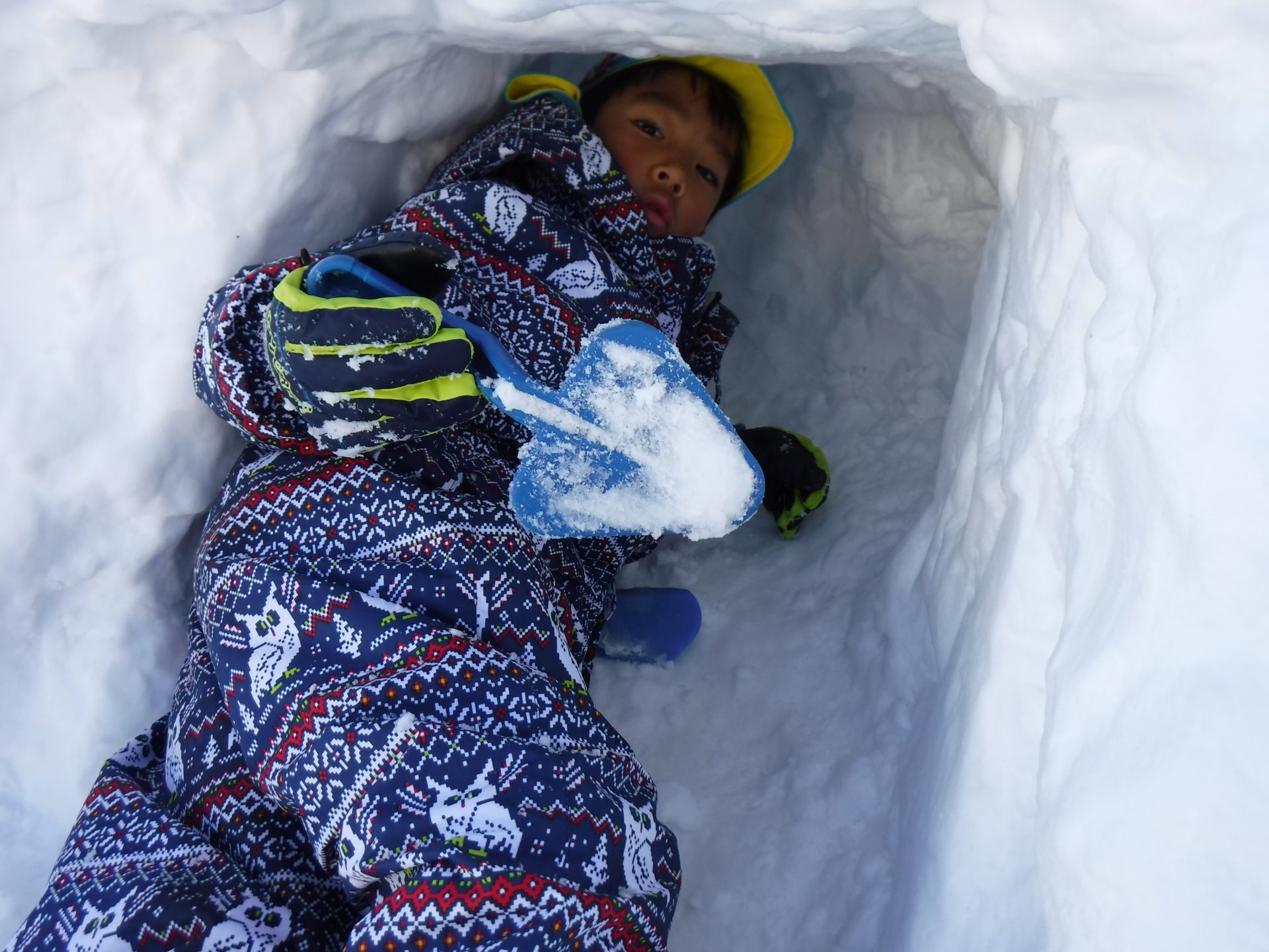 「こんなにきれいだよ!」とかまくら作りに明け暮れます。