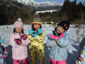 妙高や信濃町には十分な雪があったようですが、ここ戸隠では、先日の自然保育研修会を過ぎてようやく冬がやってきた感じでした。