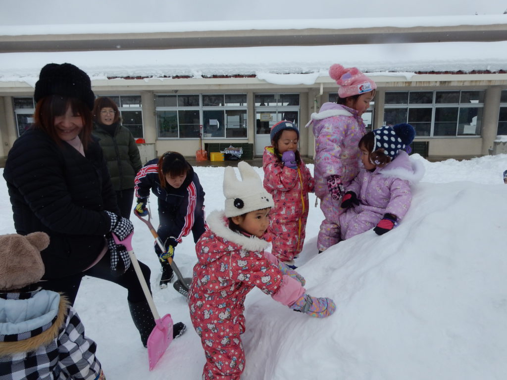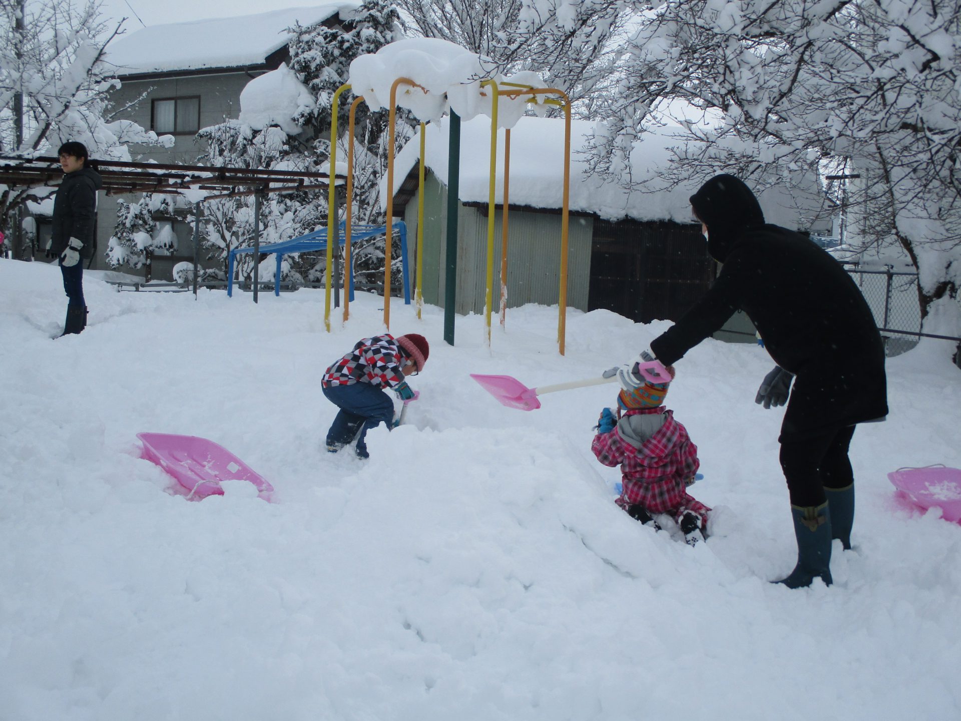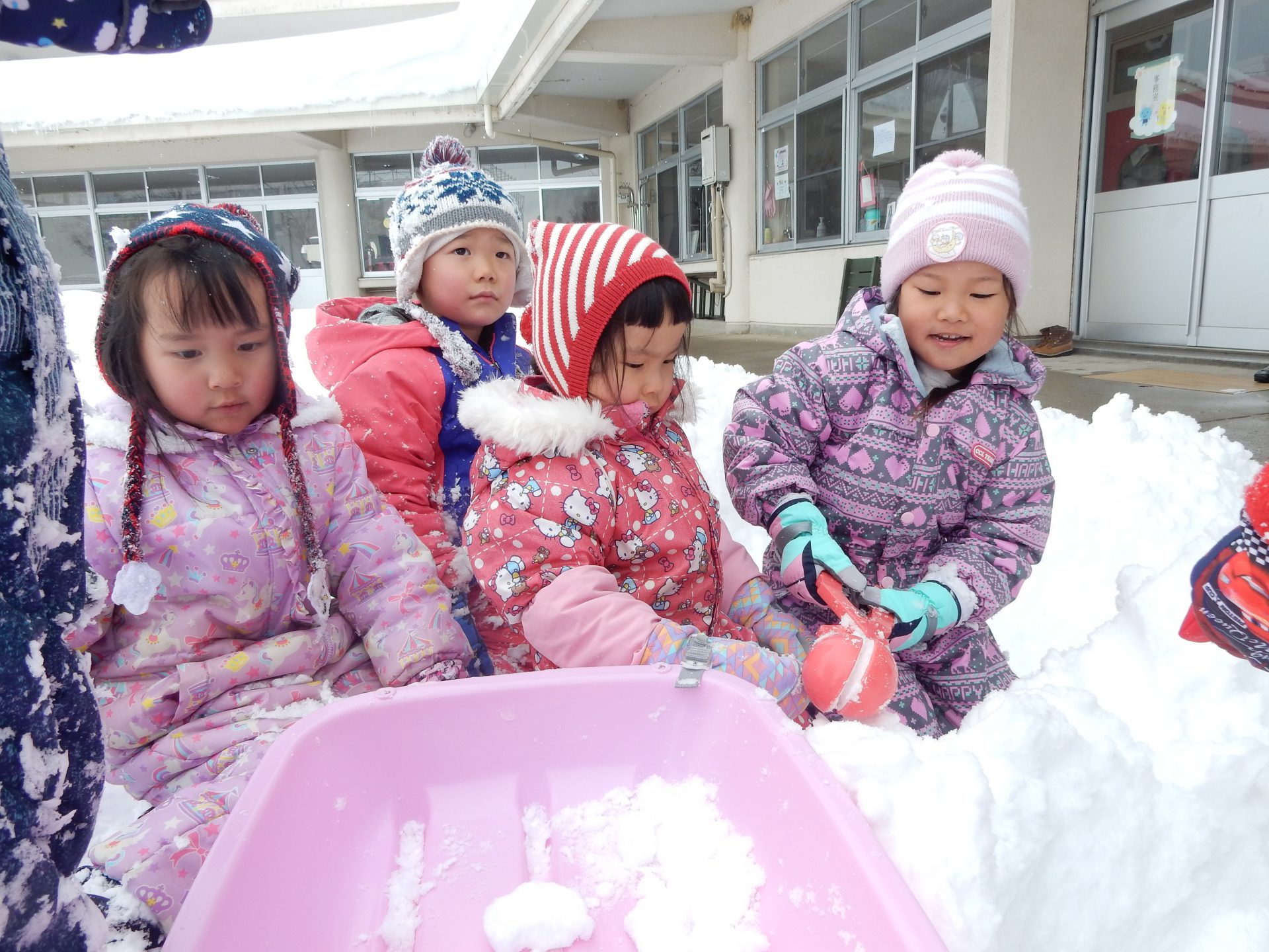信濃町の冬はまだまだ続きます。園庭いっぱいの雪で‘雪遊び’と一言で言っても遊び方や遊びの広がり方、子ども達の発見がたくさんあるんだな〜と子ども達の遊びを見て驚かされます。