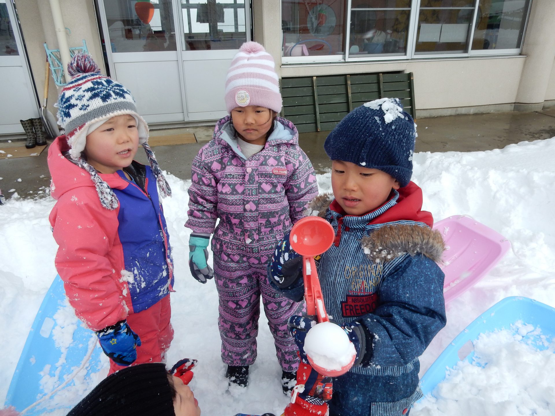 子ども達も雪で毎日遊んでいるうちに色々な雪質の日があることに気がつきました。