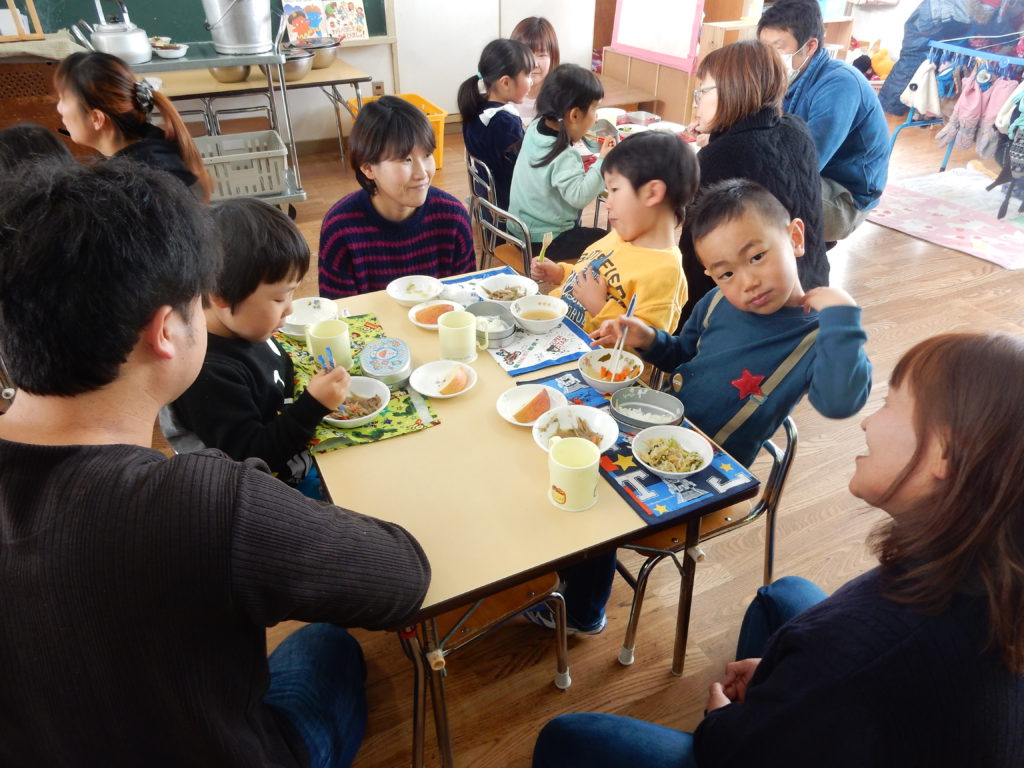 「あ〜ん」とお家の方の口に給食を運んであげる子もいて、微笑ましかったです。