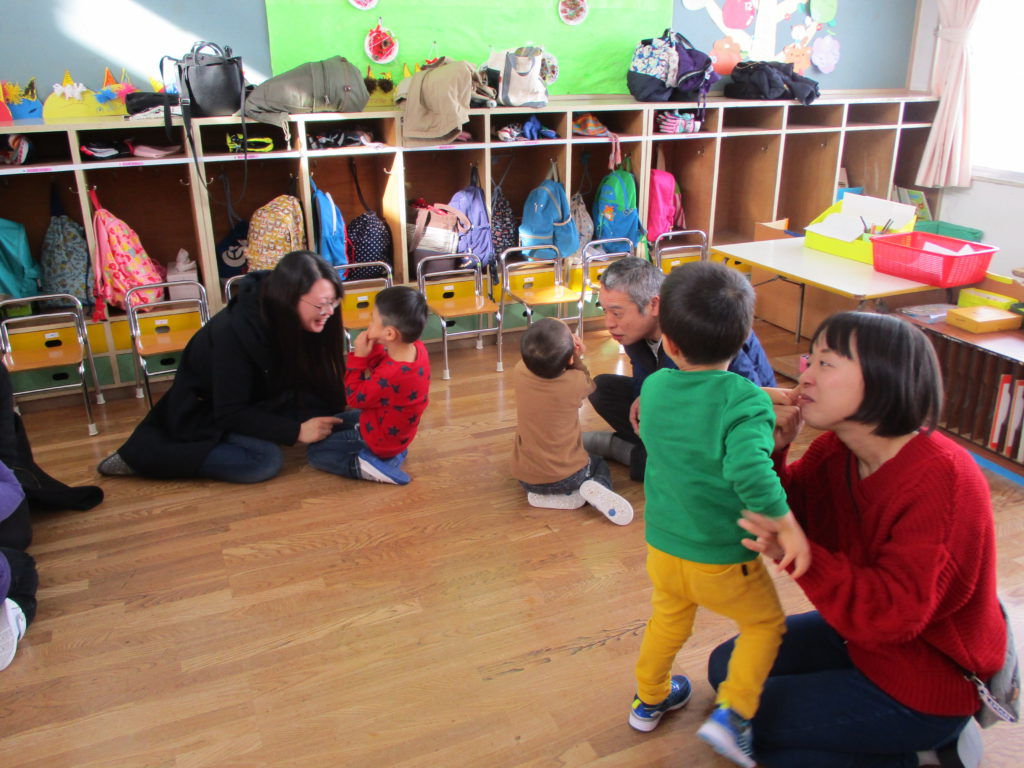 中にはちょっぴり照れくさそうな子もいましたが、いつもと違う保育園に子ども達も保育士もお家の方もドキドキ。