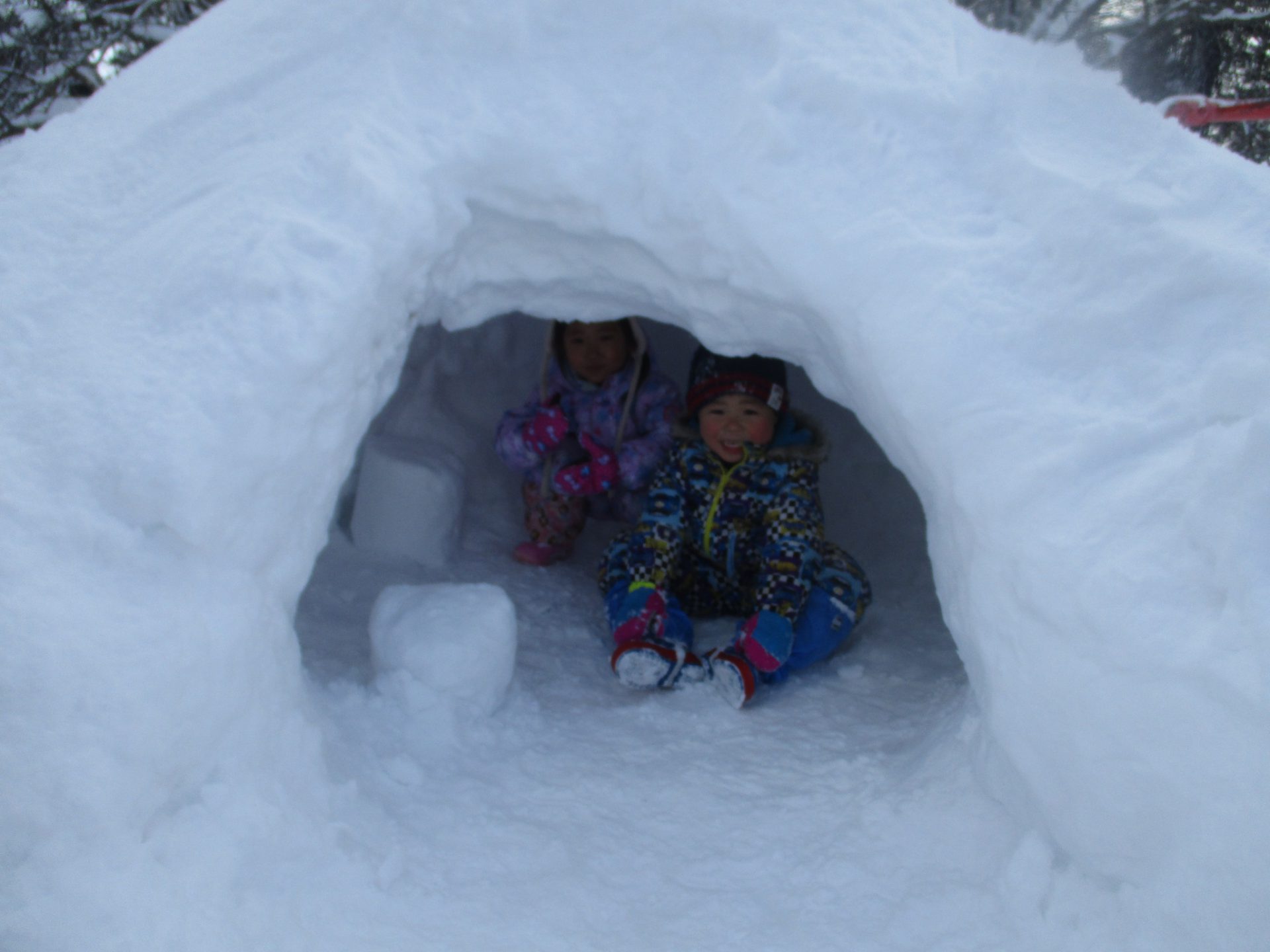 このかまくらは、保育参観の時に年中・長さんのお家の人が作ってくれたもの。