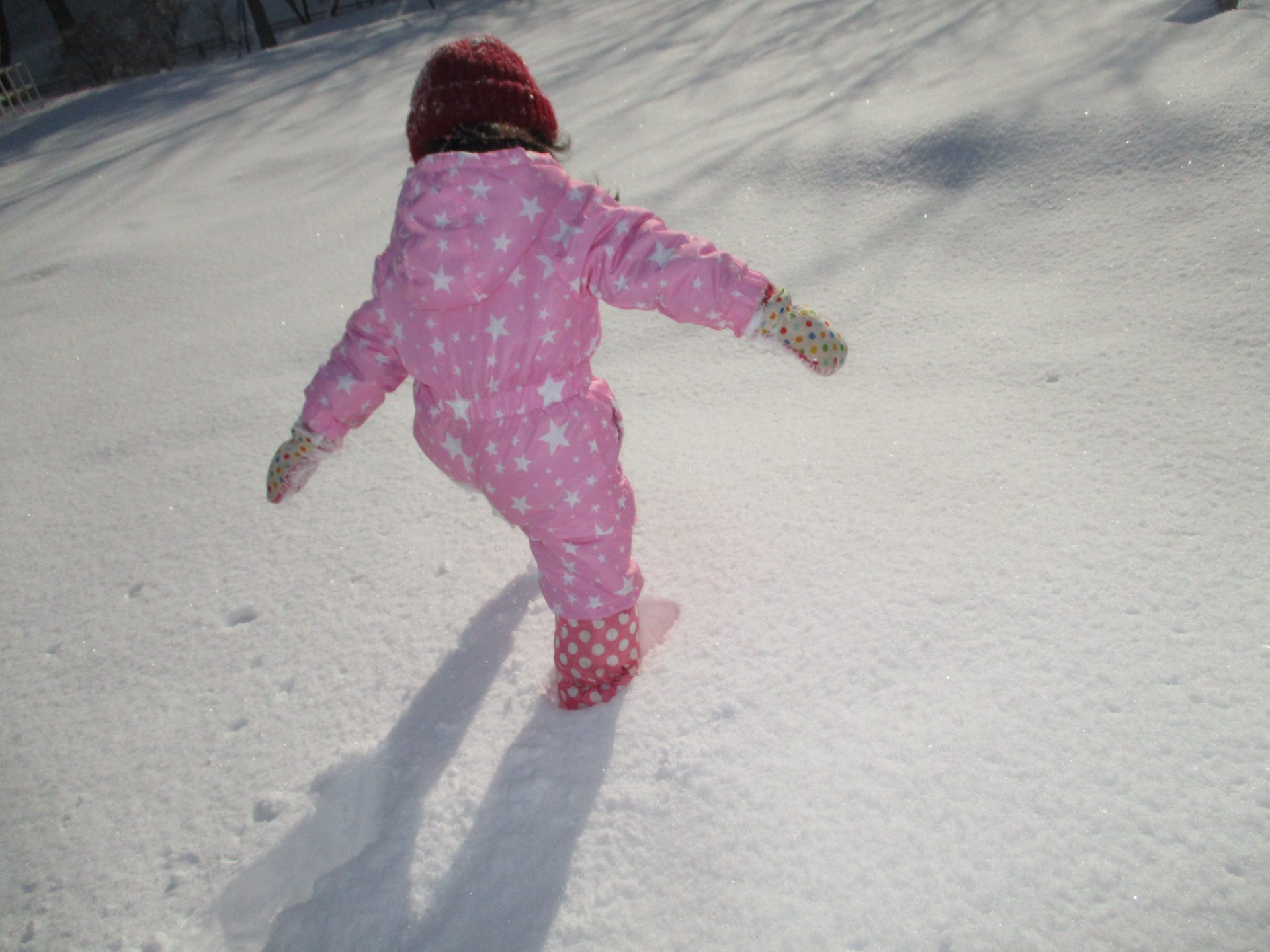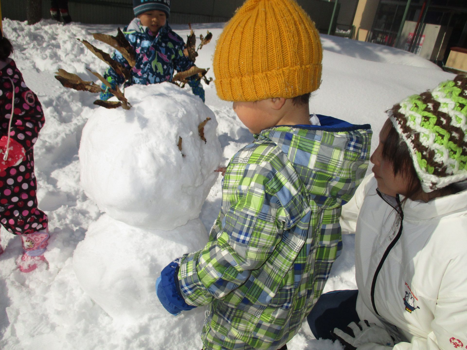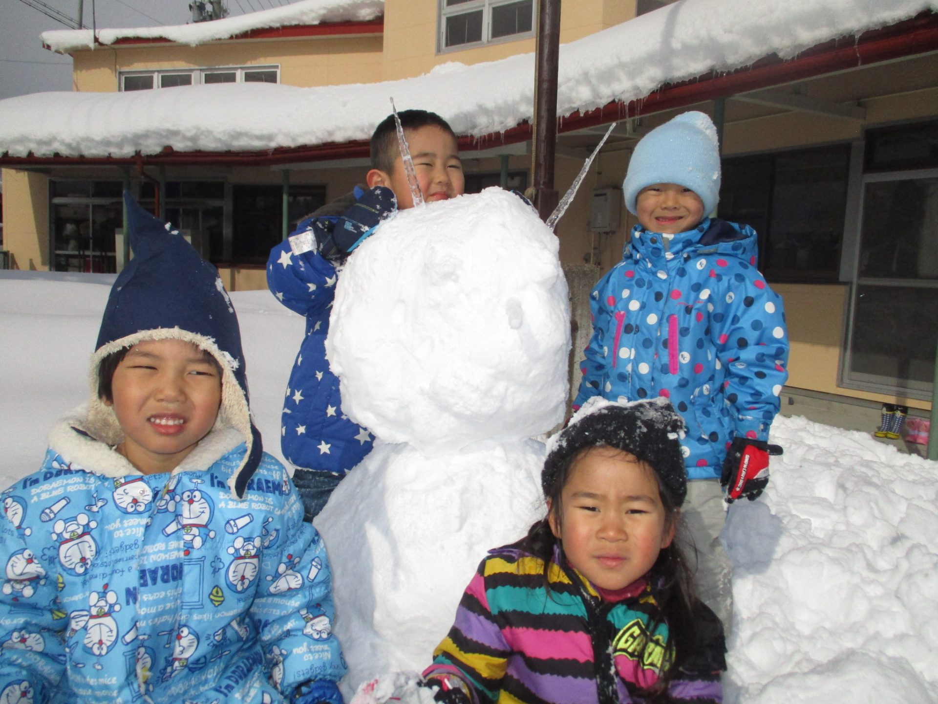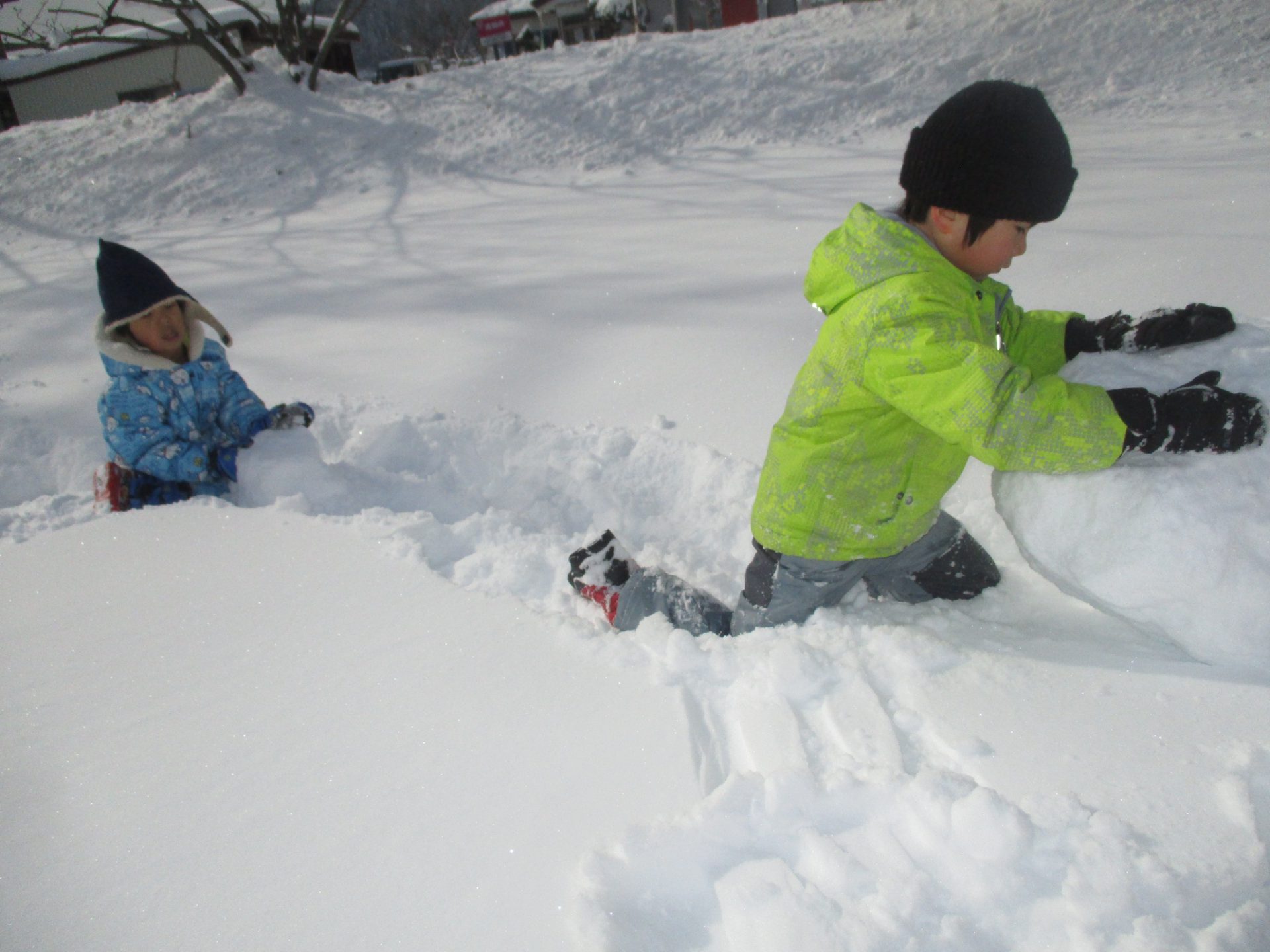 先日、年中・年長組の雪遊びの様子をご紹介したので、今回は未満・年少組の様子をご紹介します。