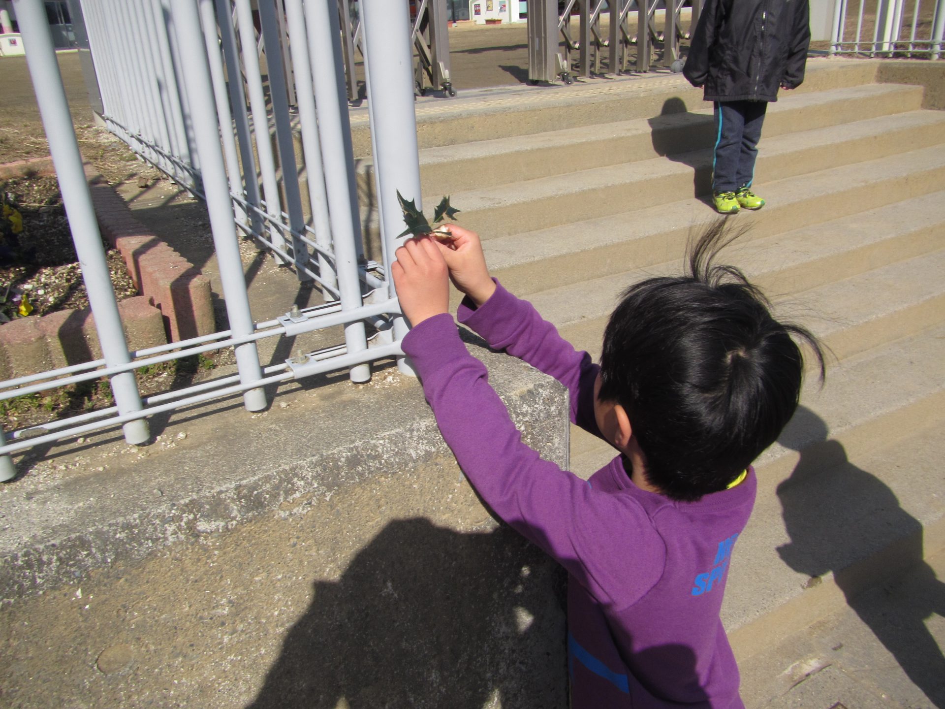 鬼の苦手な柊を子どもたち自ら採れたことで、豆まきに向けて気持ちが向いた。