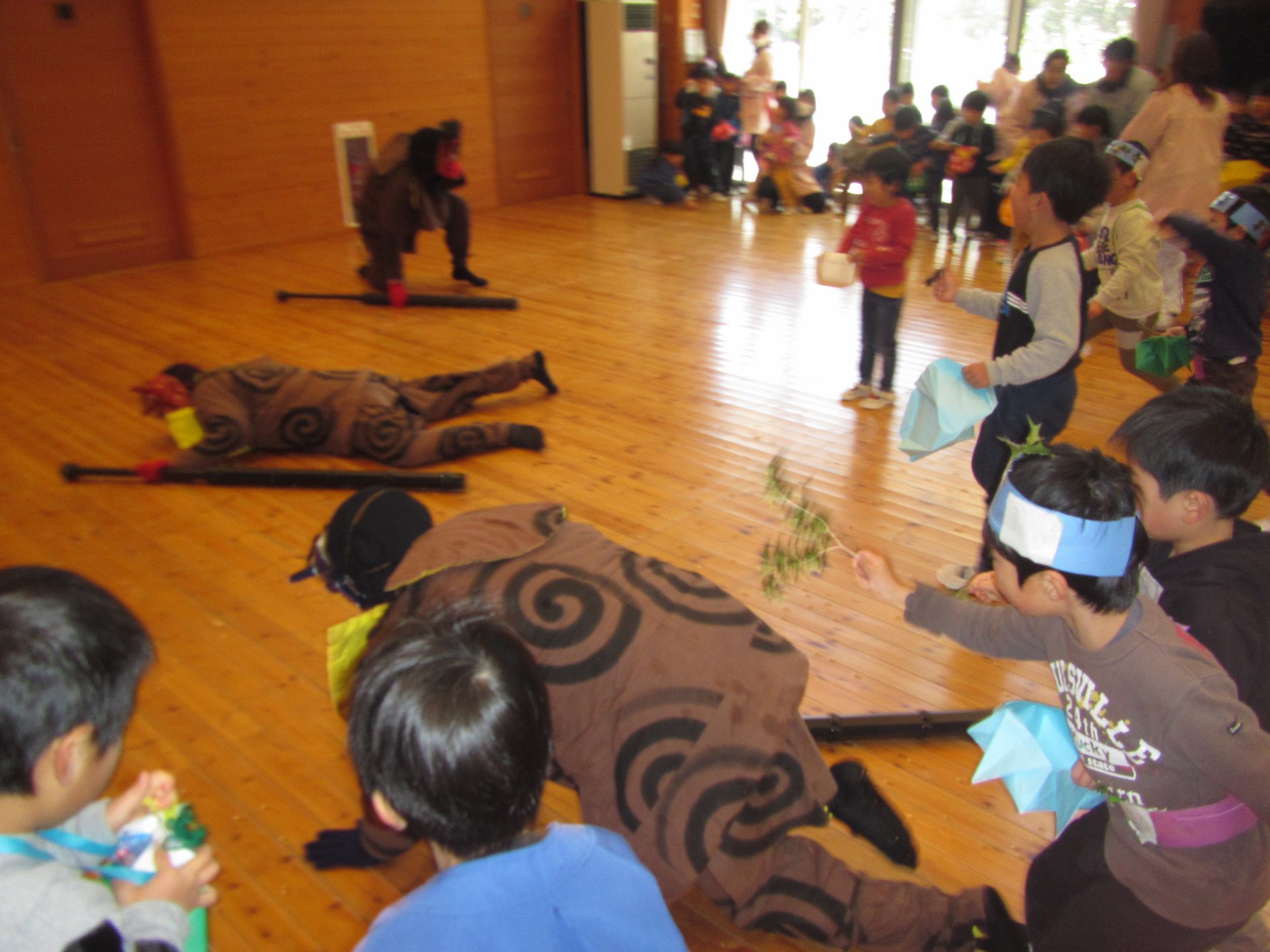 子どもたちの勇敢な姿に鬼たちも弱弱しく山へ帰っていった。