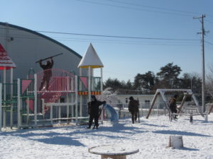 門扉のひいらぎも何とか通り過ぎた、鬼たちは山には無いであろう固定遊具に夢中