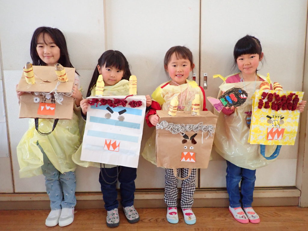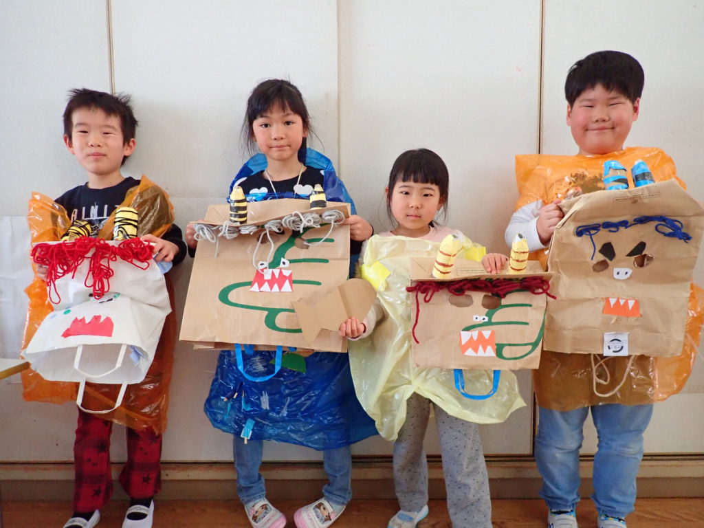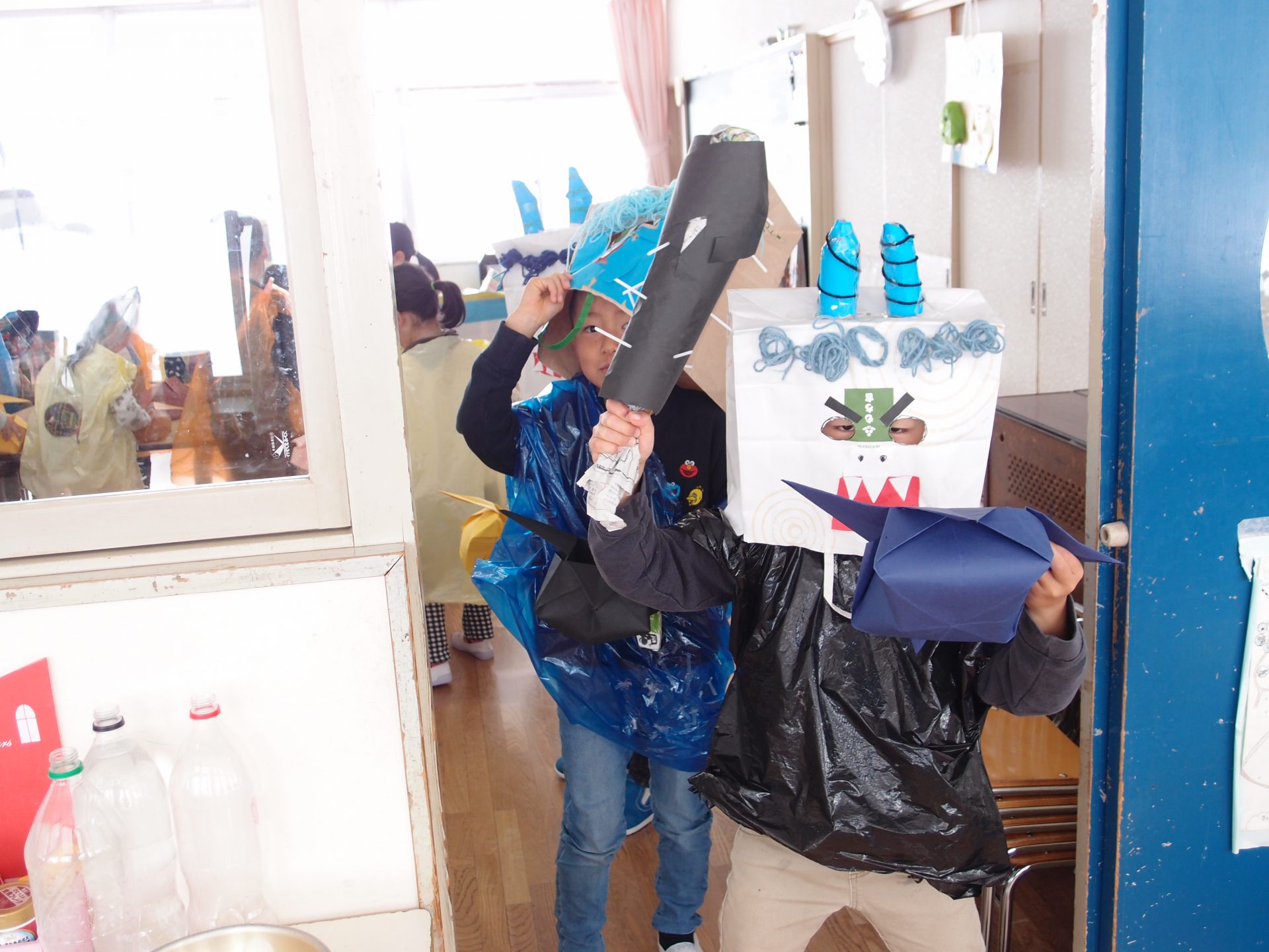 年長さんは、なまはげ軍団たちと戦うために自分たちも鬼になり洋服や金棒、