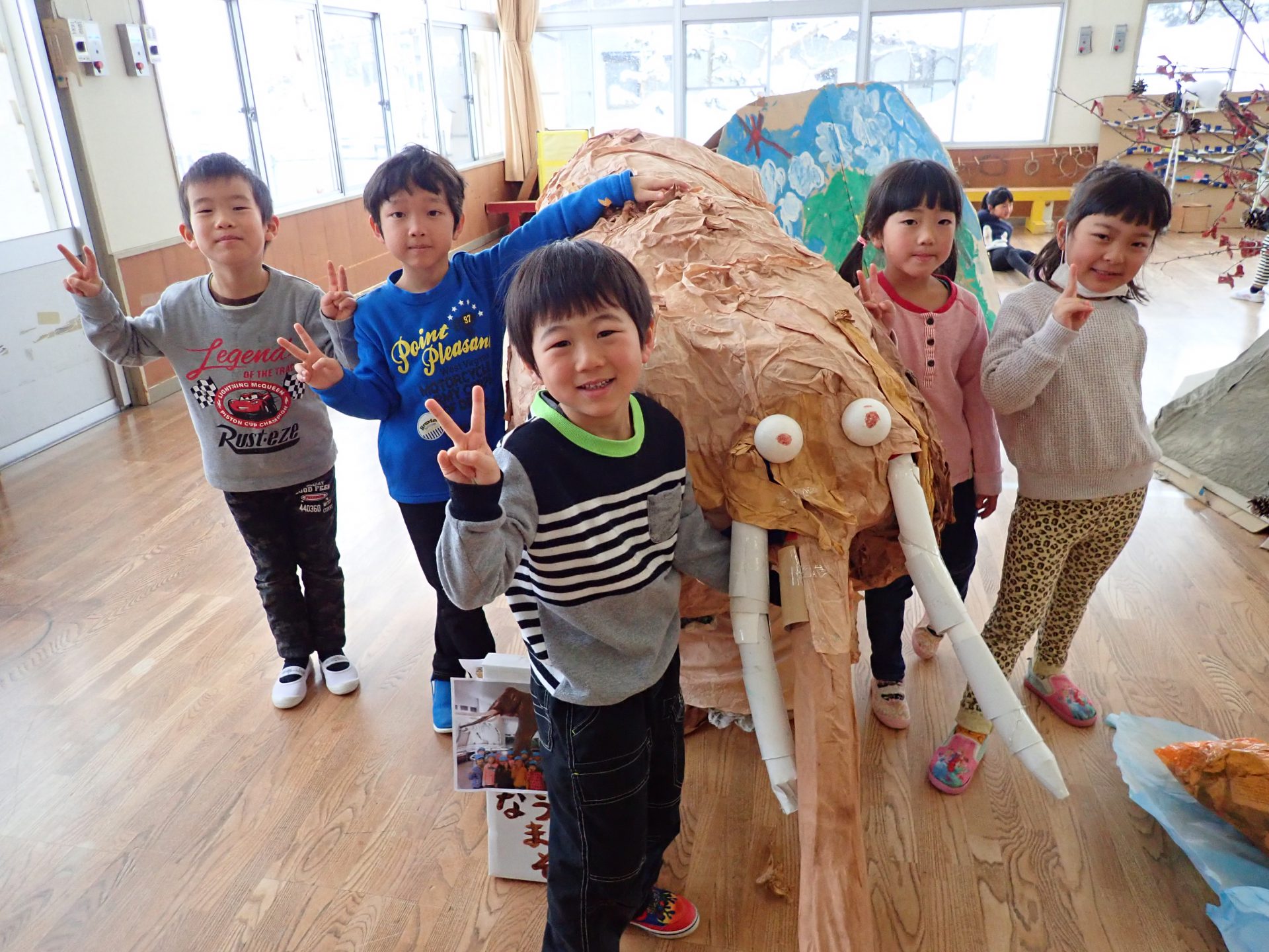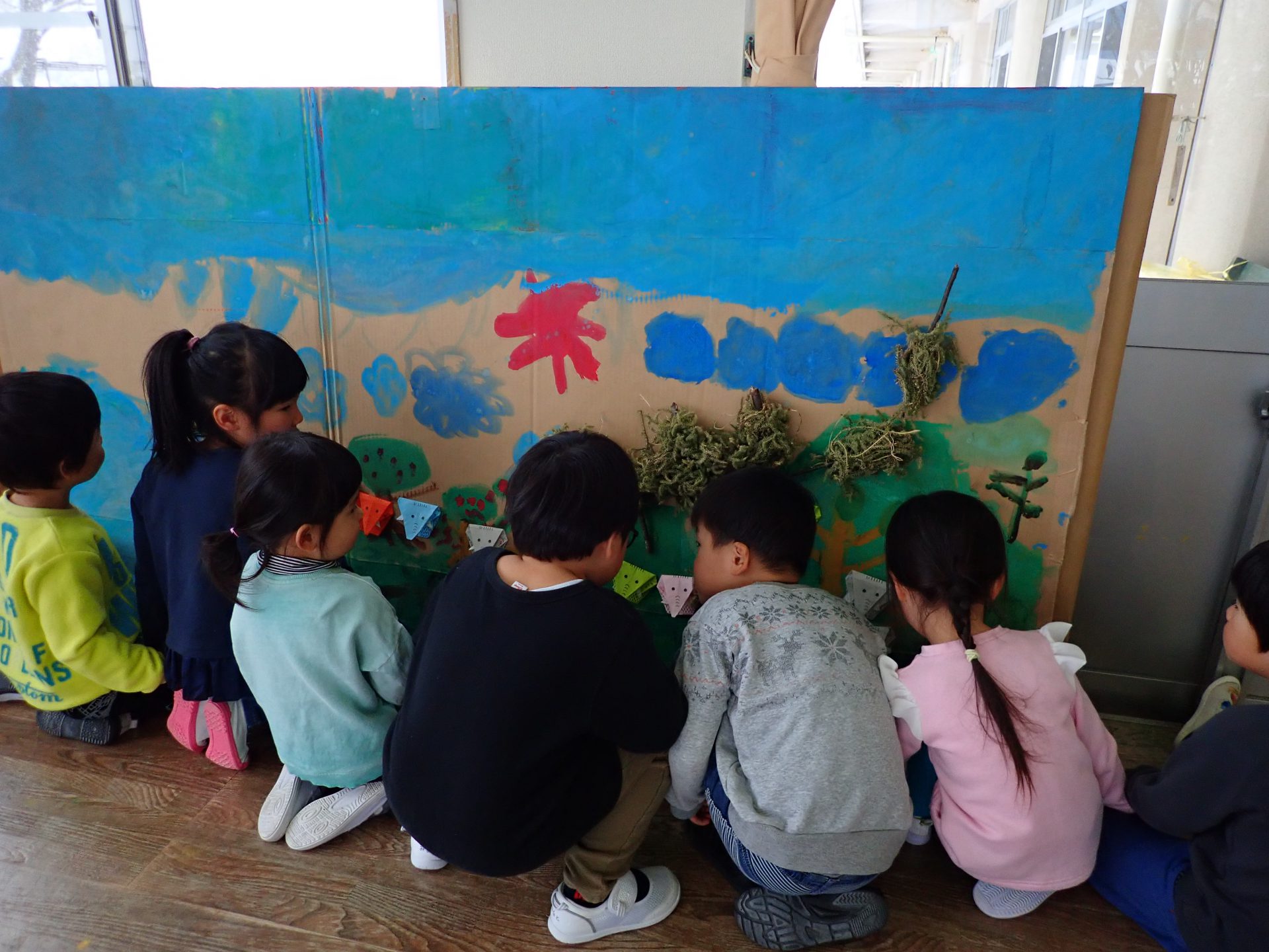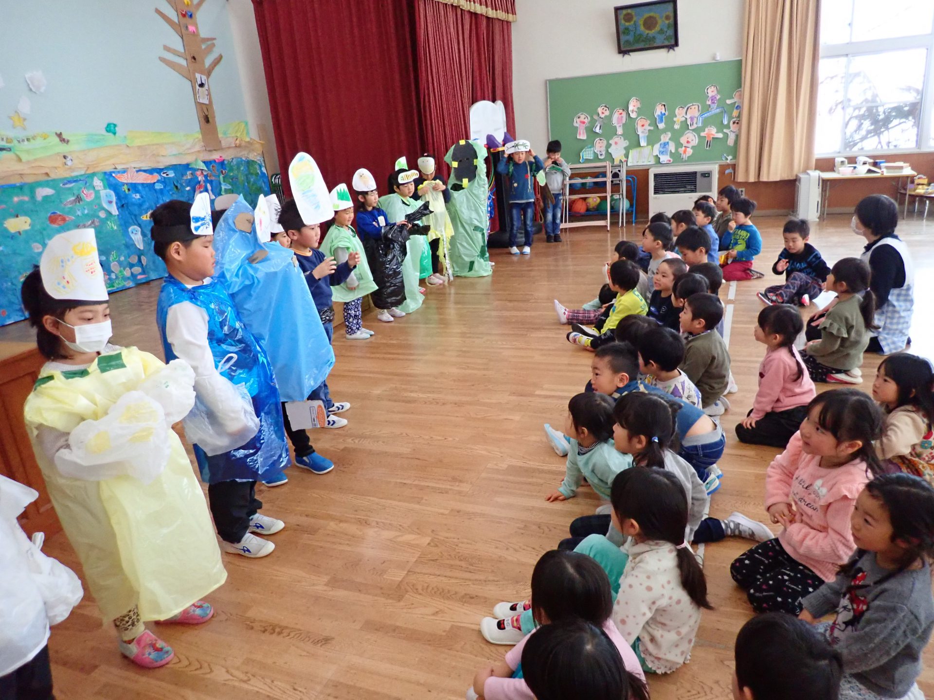 みんなで最後の劇を楽しむことができ、また、他クラスの友達に博物館や劇を観てもらったことで自信となり、さらに意欲的に生活し、保育園最後の園生活を楽しんでいます。