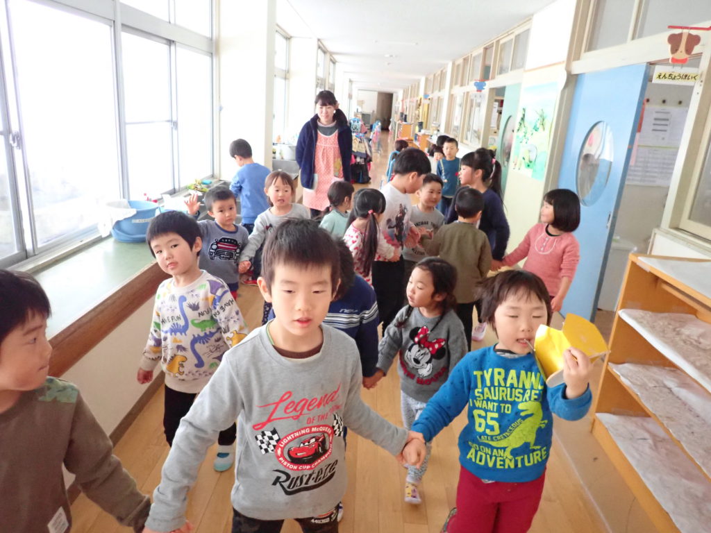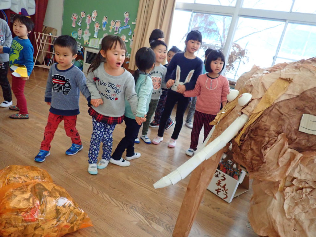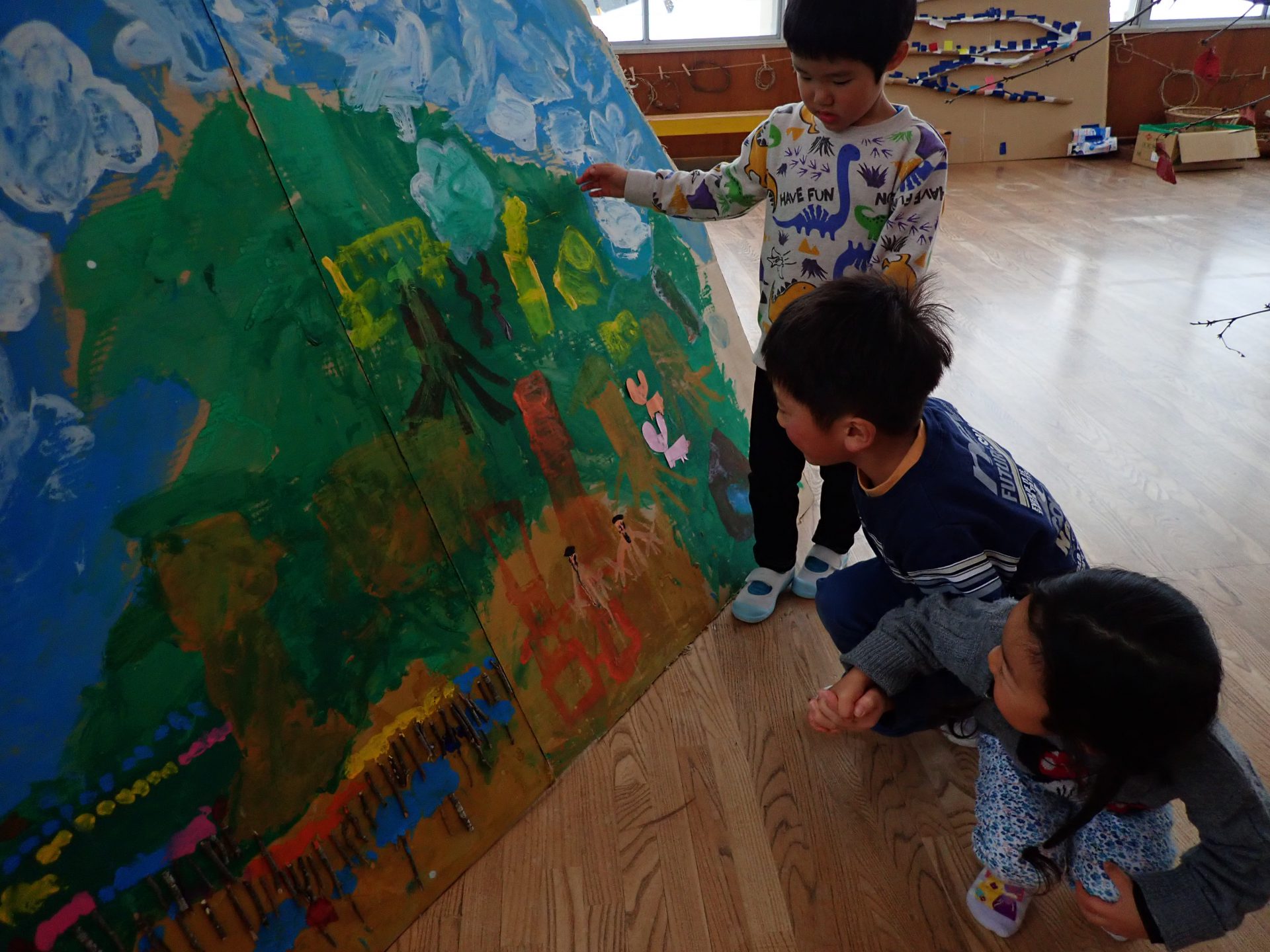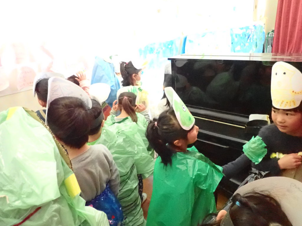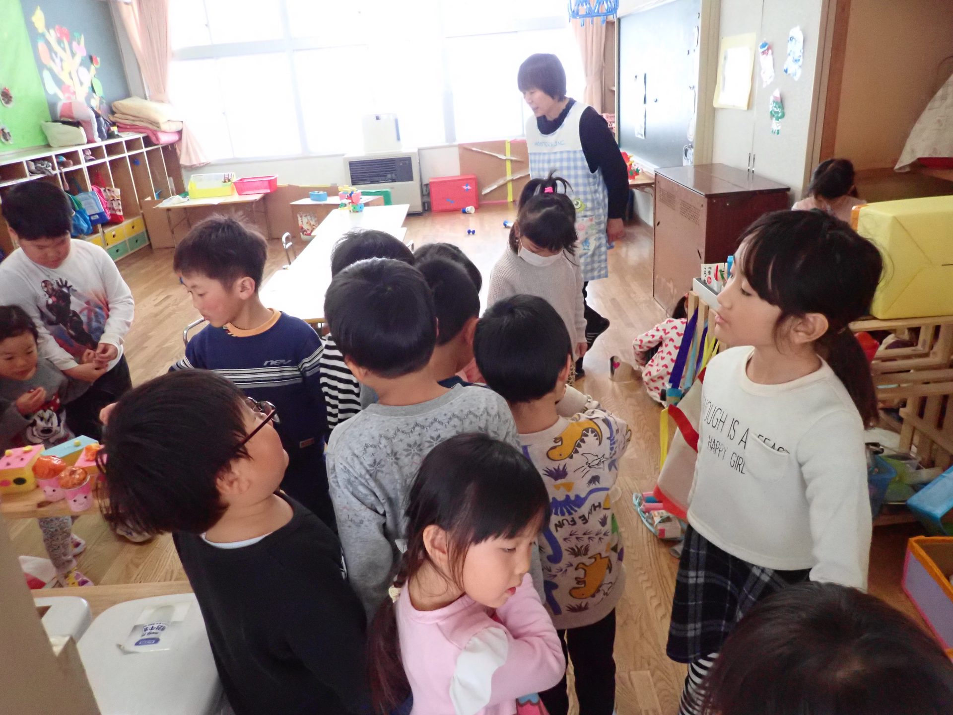 みんなで最後の劇を楽しむことができ、また、他クラスの友達に博物館や劇を観てもらったことで自信となり、さらに意欲的に生活し、保育園最後の園生活を楽しんでいます。