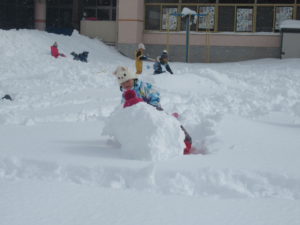 5歳児さんは、大きな雪玉を使ったキャラクターも作っていました!!(保育士も、出来上がりに驚きすぎて写真を撮ることを忘れてしまいました)