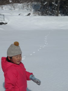 自然豊かな信濃町。雪の上で動物達の足跡に出会うことがあります。