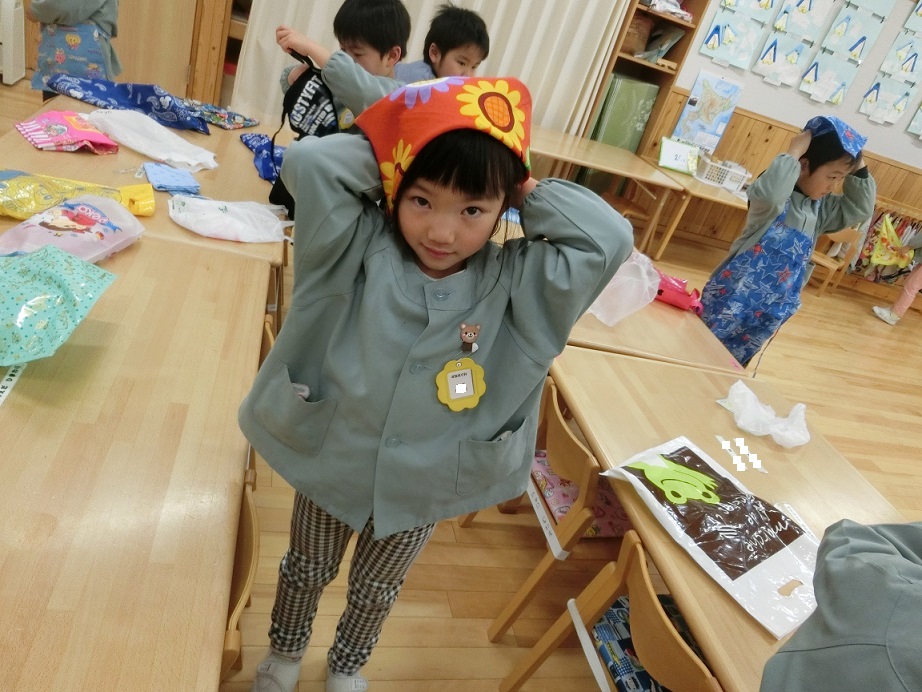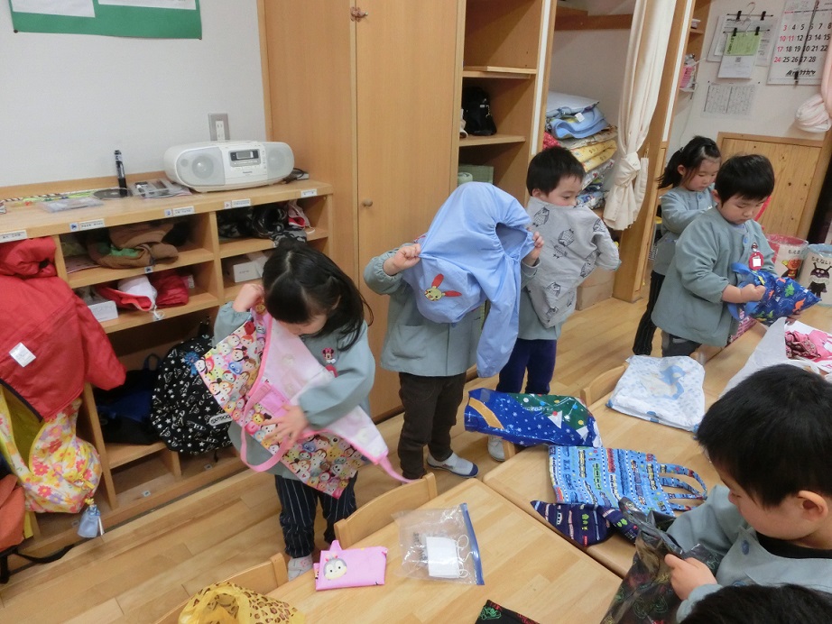 年中児は身支度もだいぶ手馴れてきました。