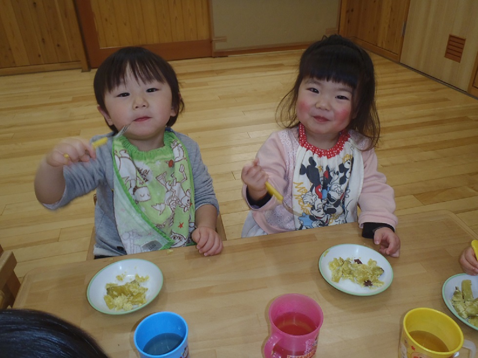 0歳児と1歳児のおやつは団子ではなくふかし芋です。