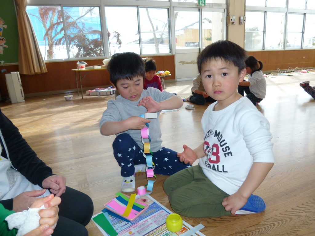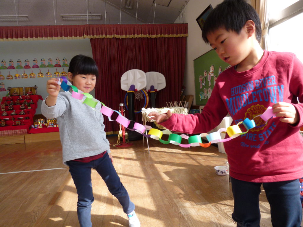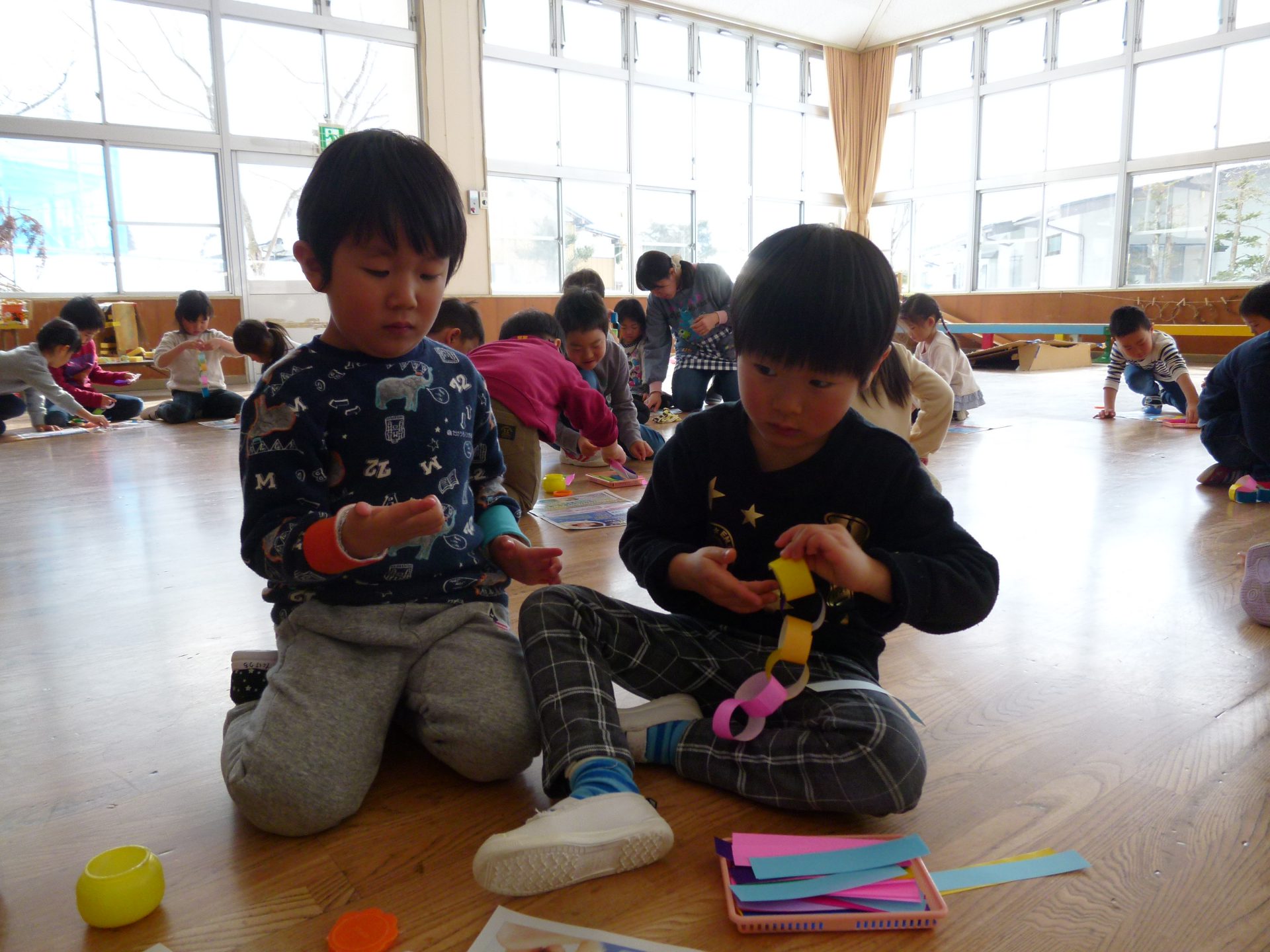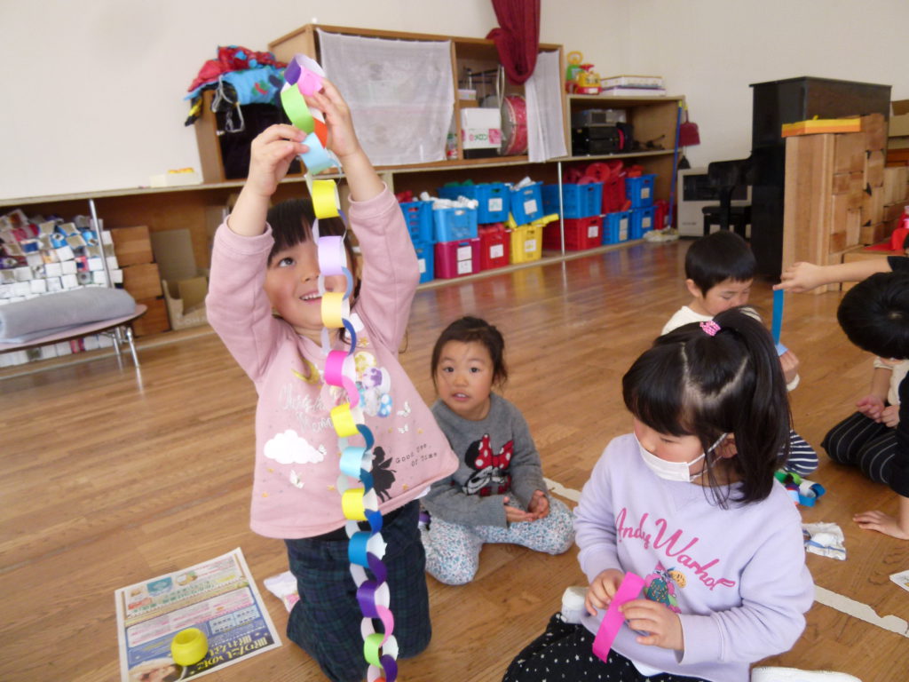 次の日に年少さんと一緒に輪つなぎを作りました。
