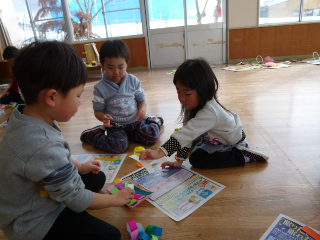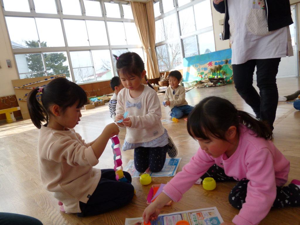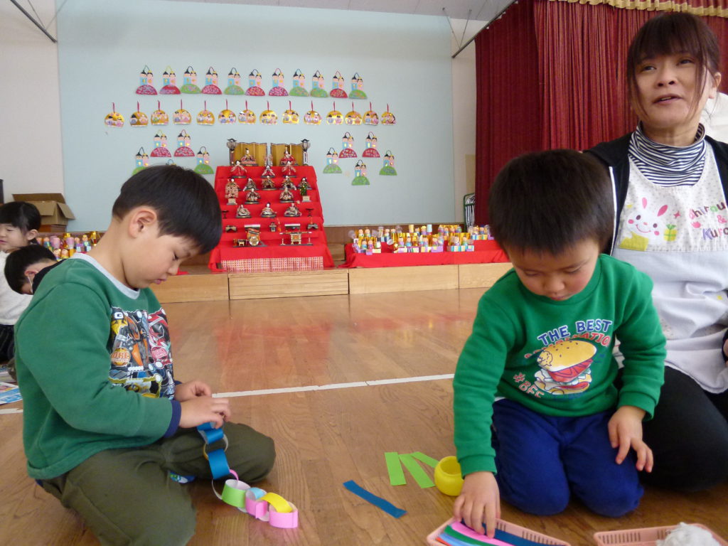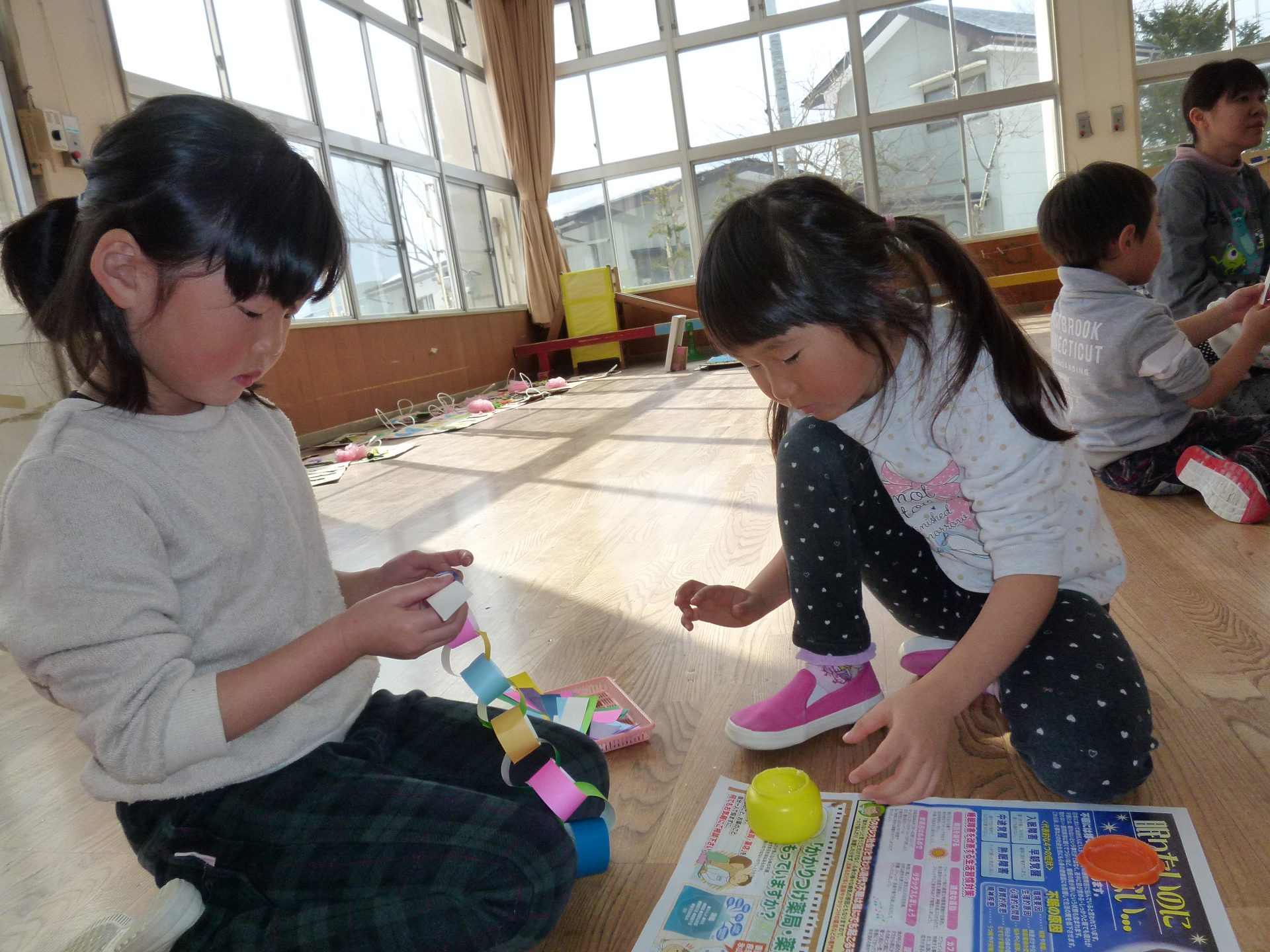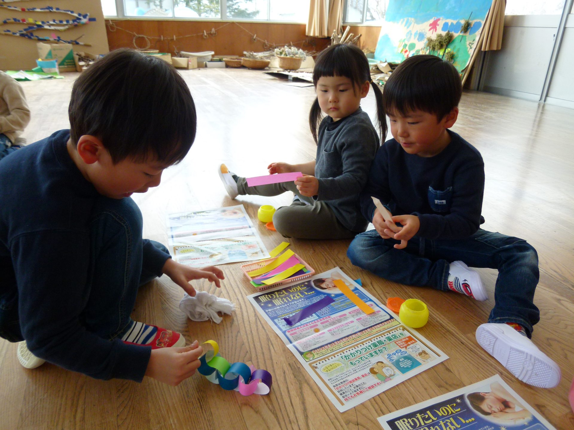 次の日に年少さんと一緒に輪つなぎを作りました。