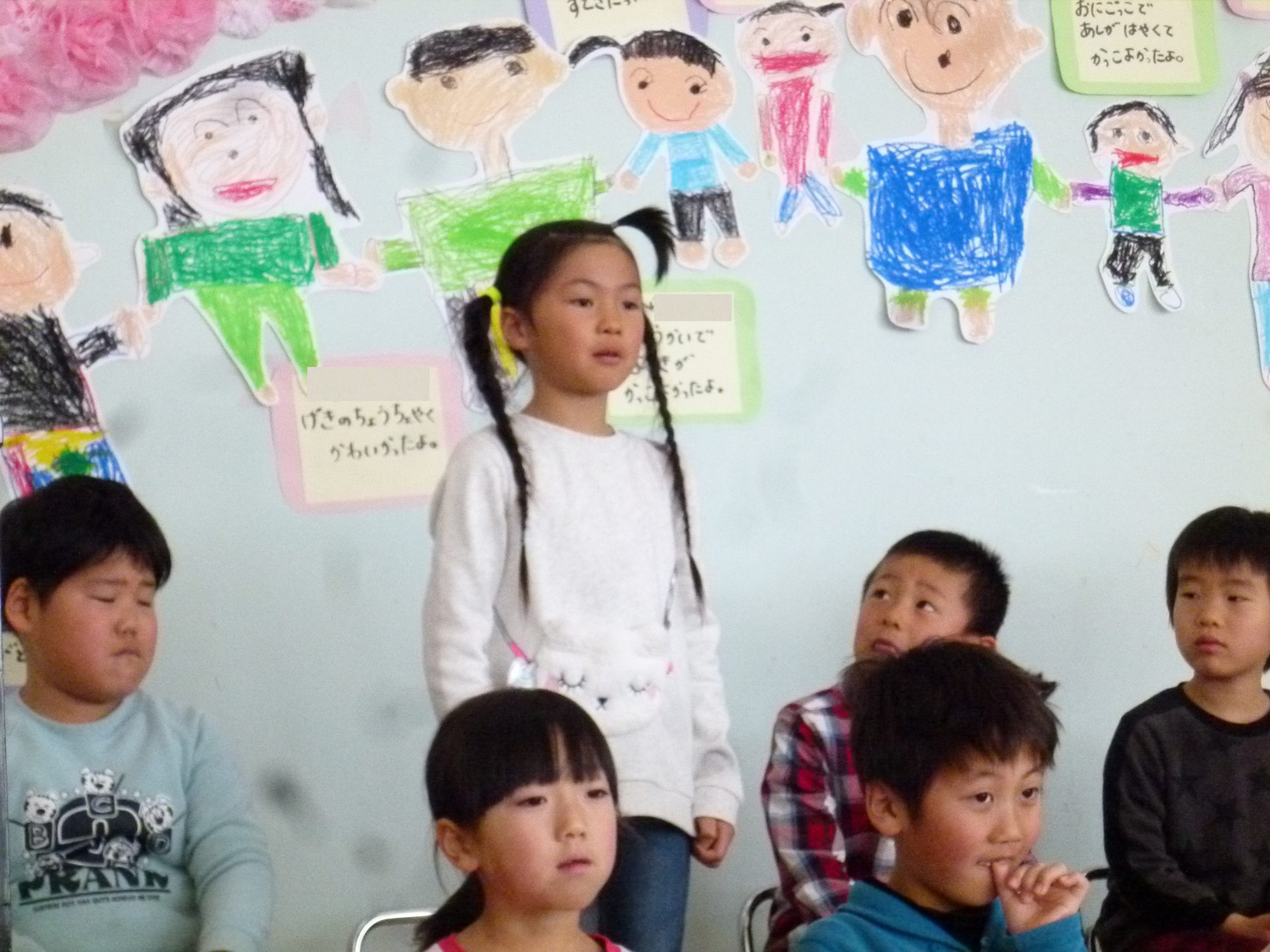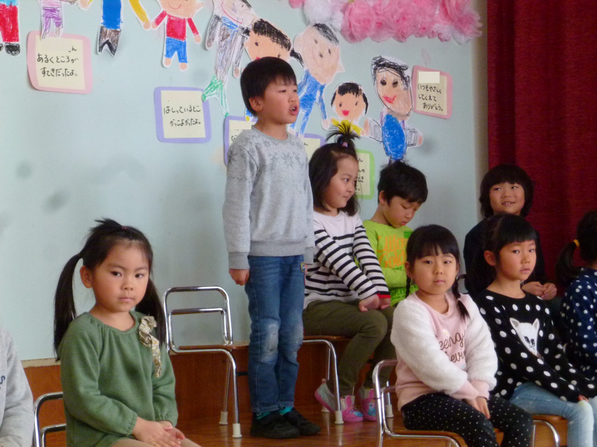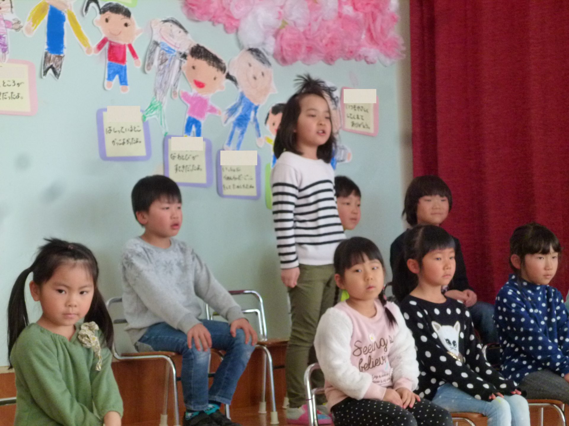 小学校に期待を持っていたり、保育園での楽しかった思い出など自分の言葉で堂々と発表していました。