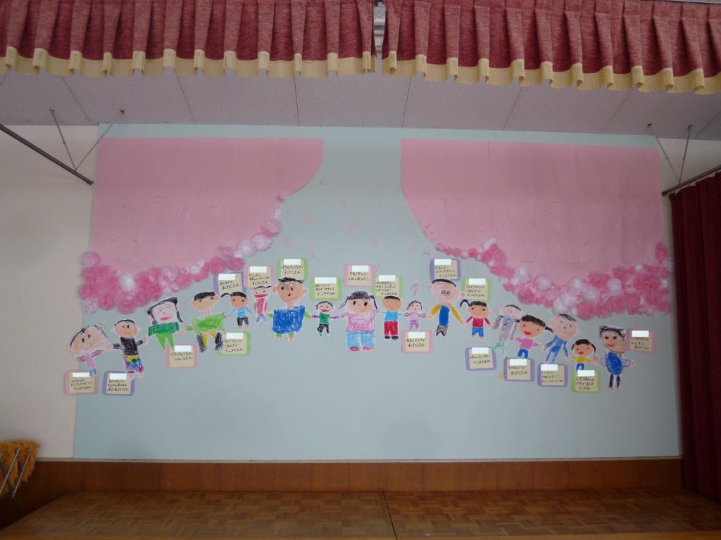 そして、最後に年長さんのお顔を描いてステージのところに飾りました。