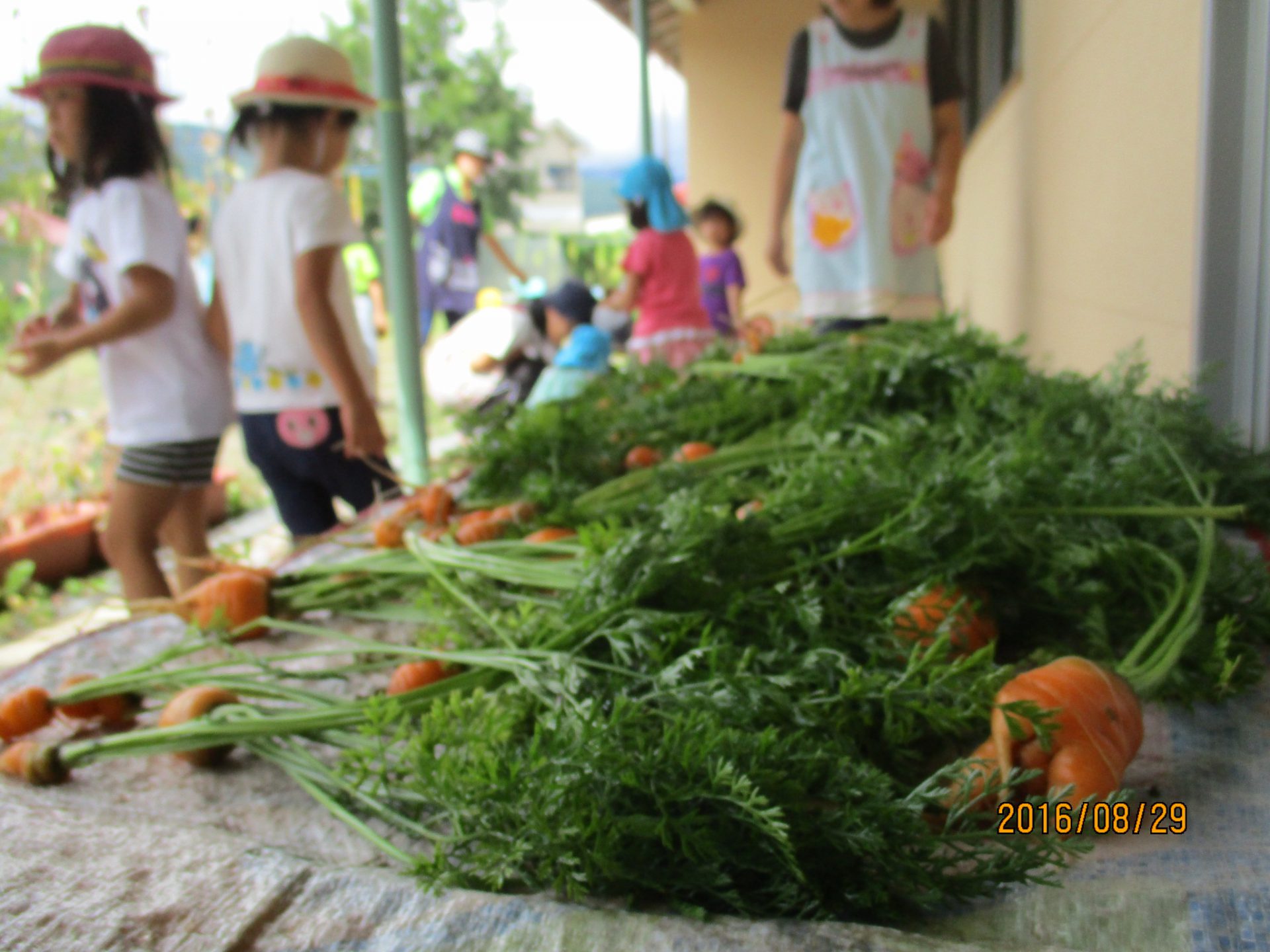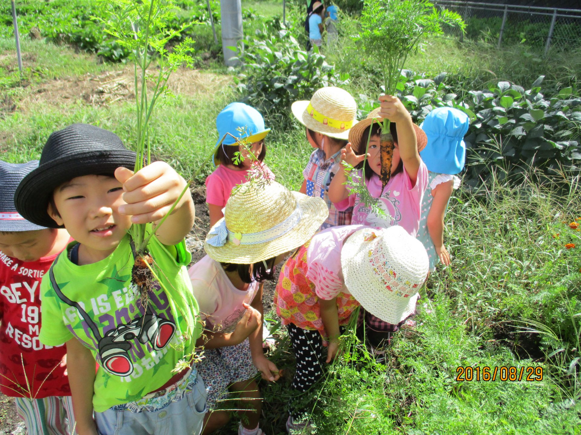 「私はゆうがおにしよー!」「僕はにんじん!」野菜の場所はしっかり覚えていて、お目当ての野菜がある所まで一直線に走っていく子ども達。