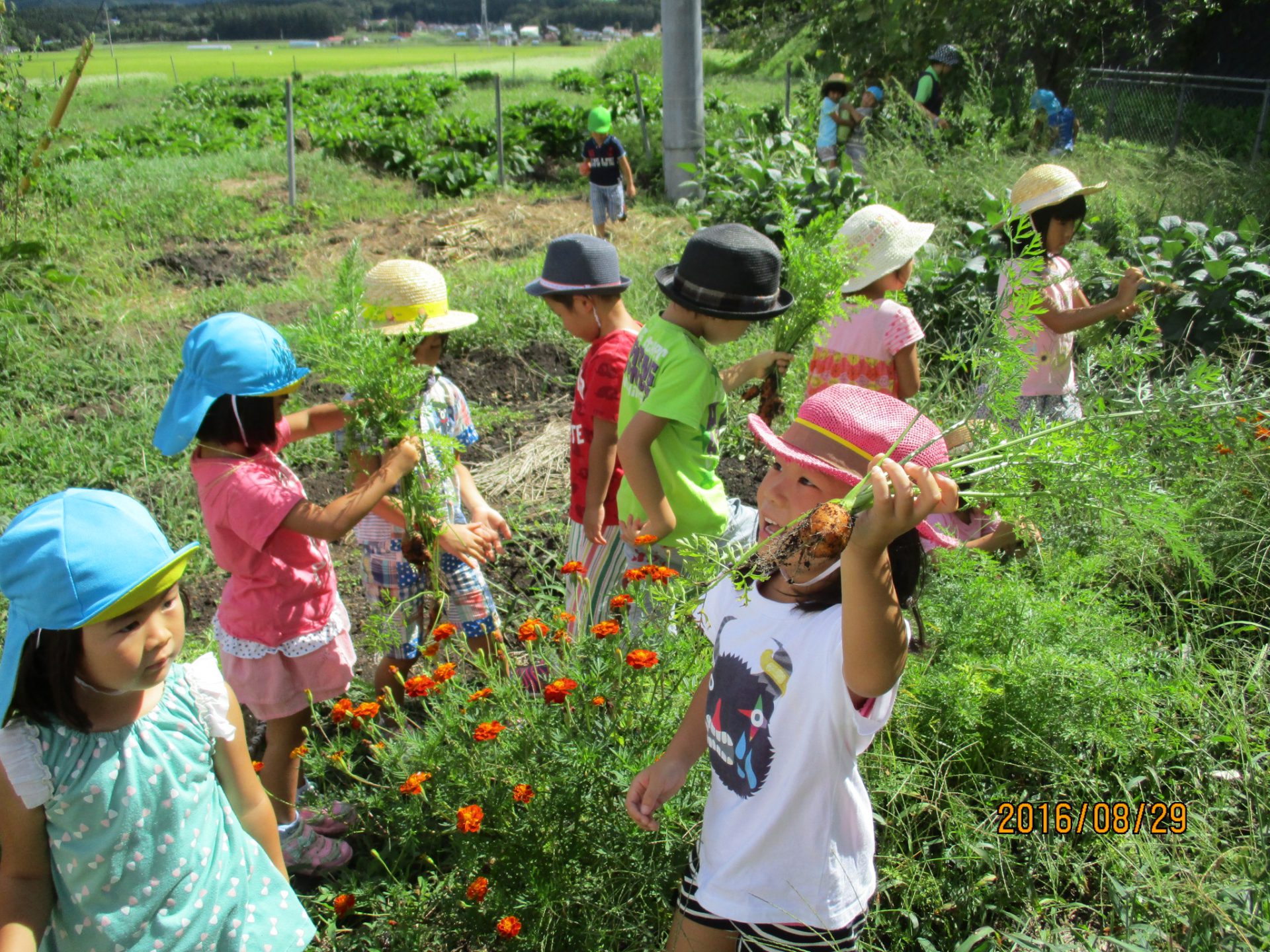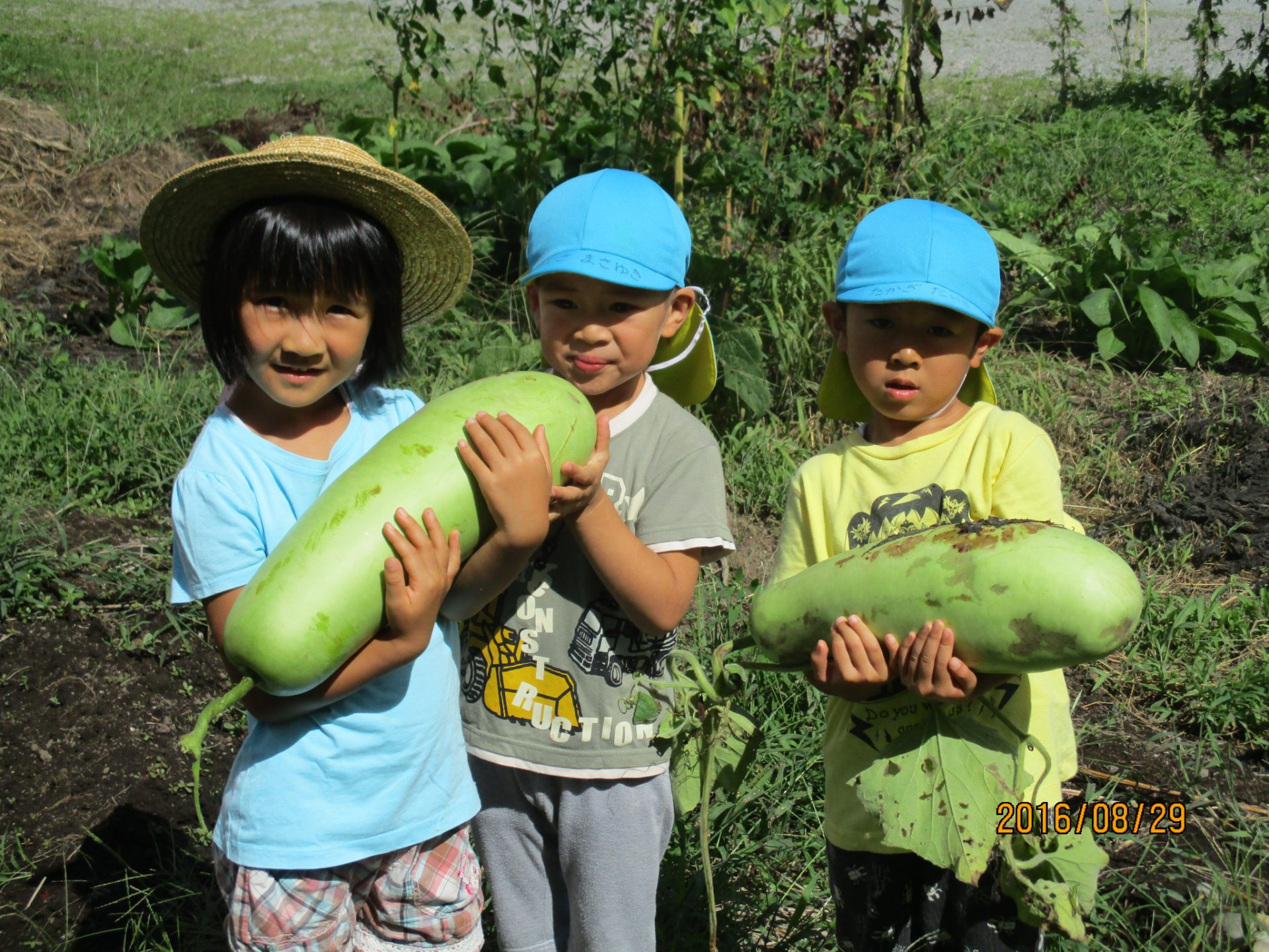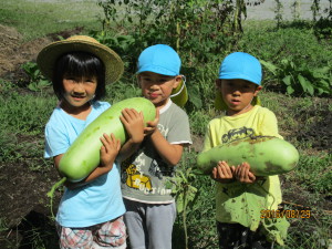 月曜日、富士里保育園の畑にはたくさんの野菜達が収穫される時を待っています。