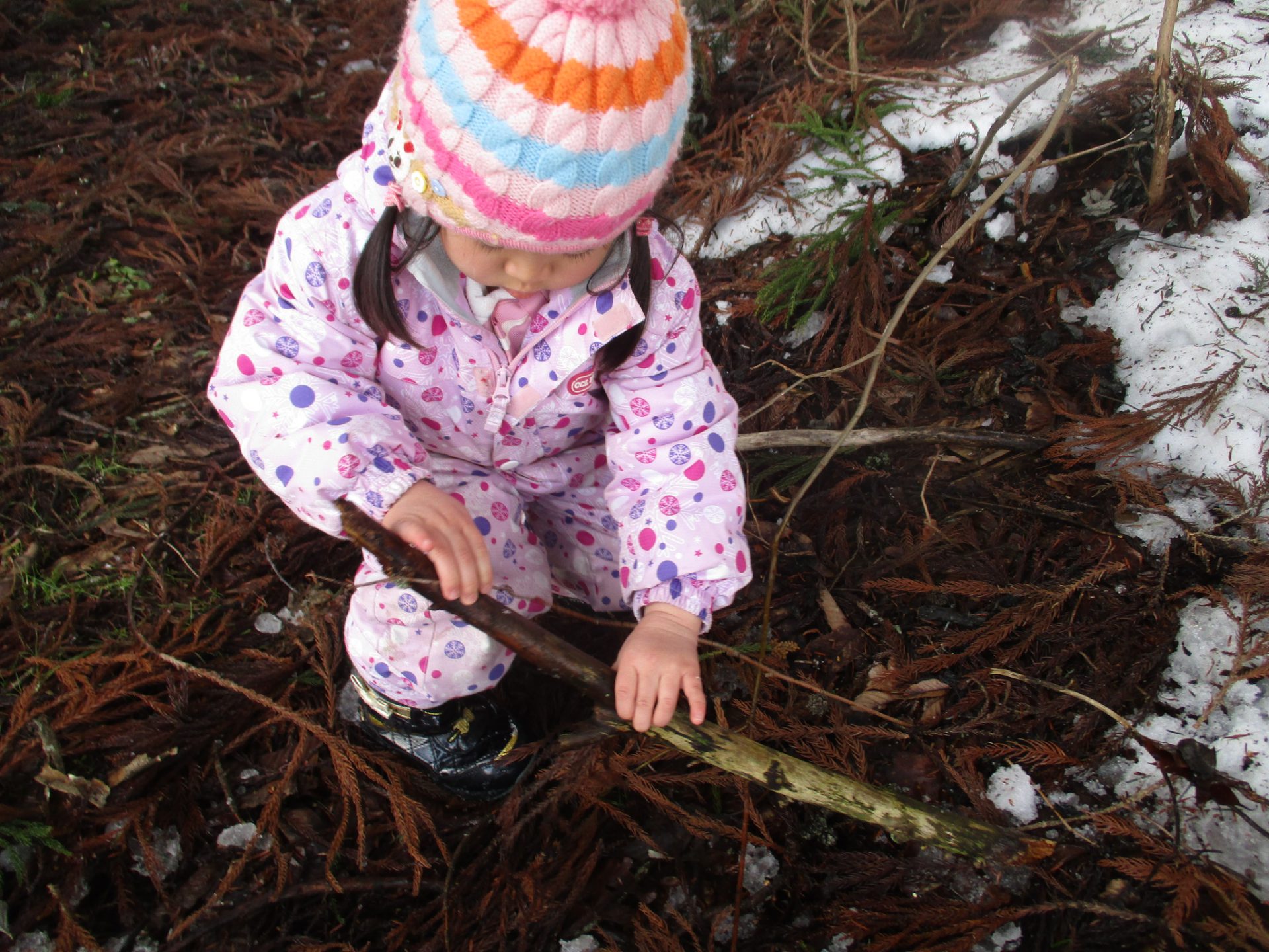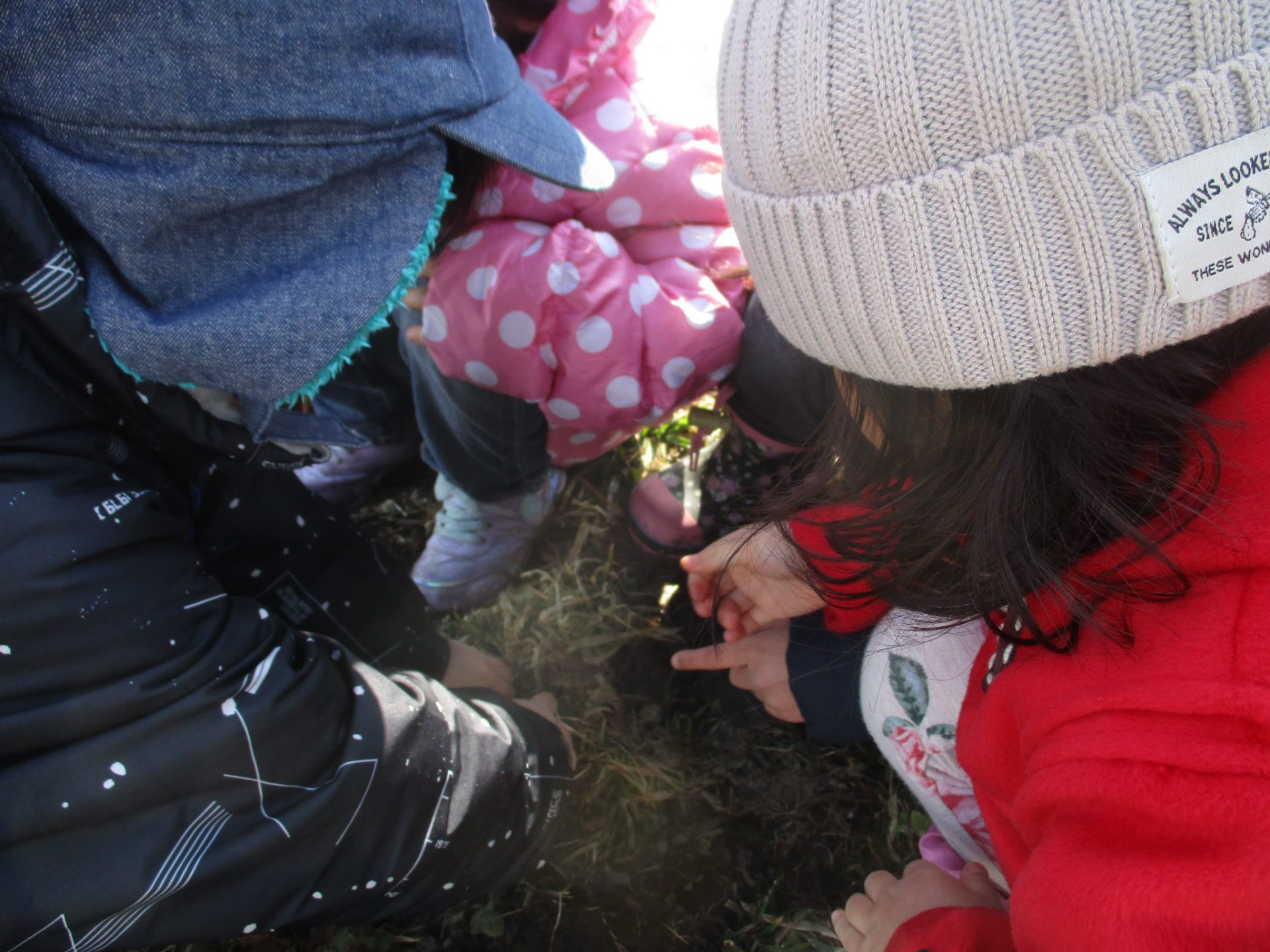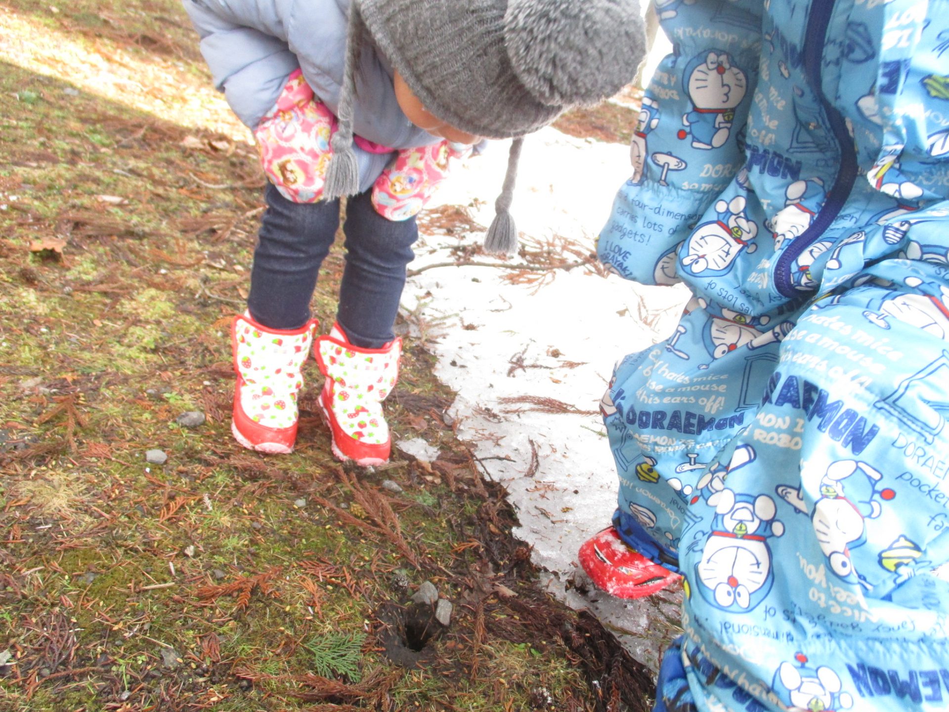 穴を見つけると、「春になったからねずみさん出てきたんじゃない?」「この穴はミミズだよ!」