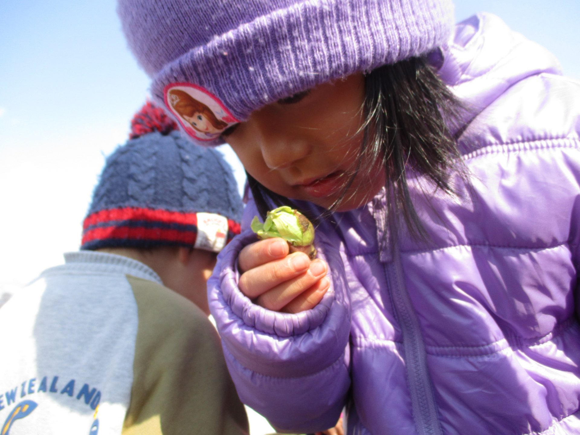 「ふきのとうの中ってこんなだったよ!」「サッカーボールみたい!」