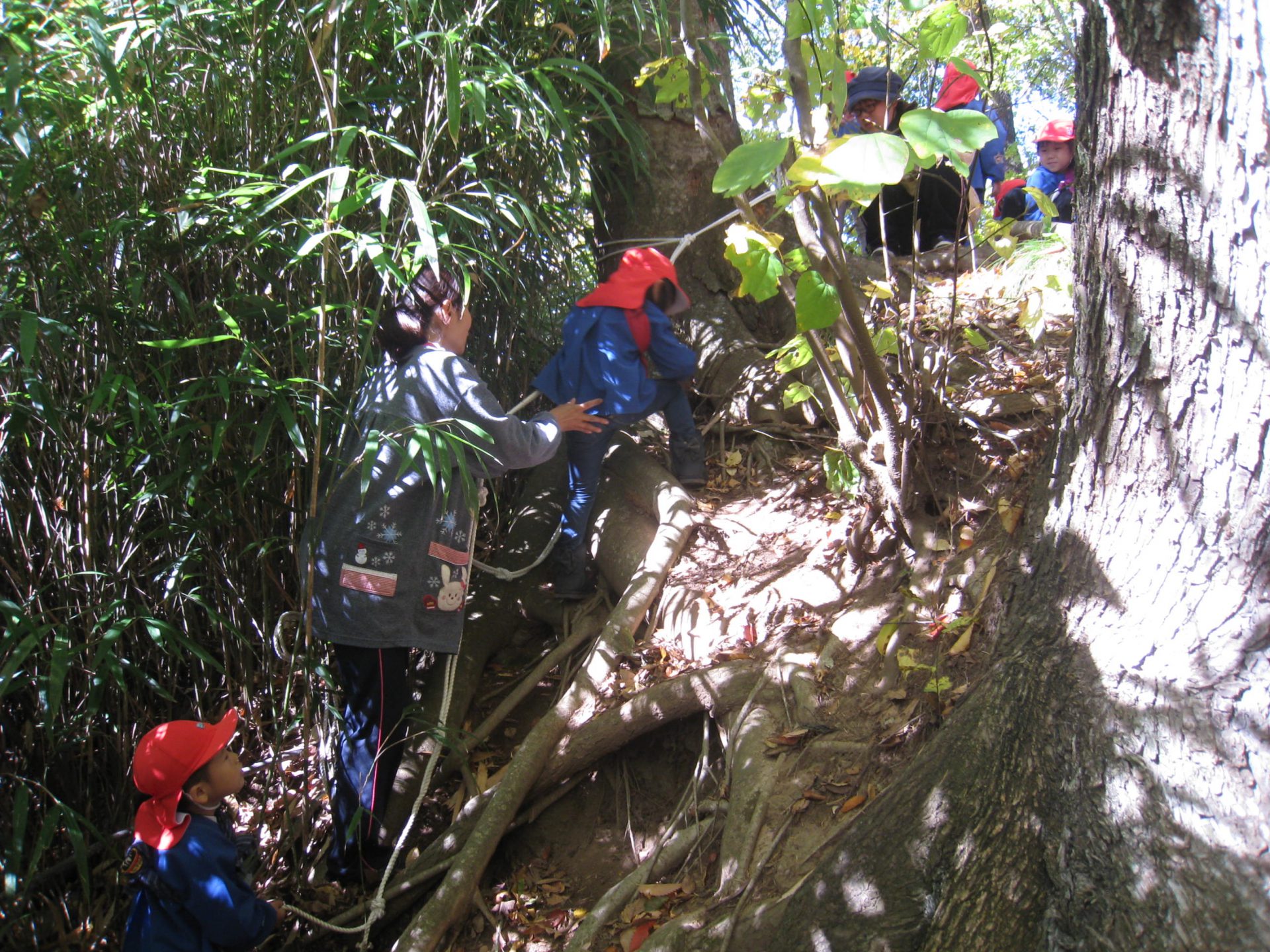 友達と助け合い、保育士の指示を得ながら、考え勇気をもって登ることができた。