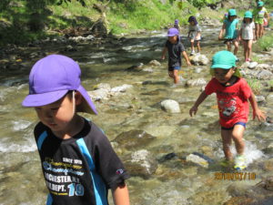 川あそびの経験から、水中にいる生き物や水辺にいる生き物等への興味・関心を深めて欲しい。