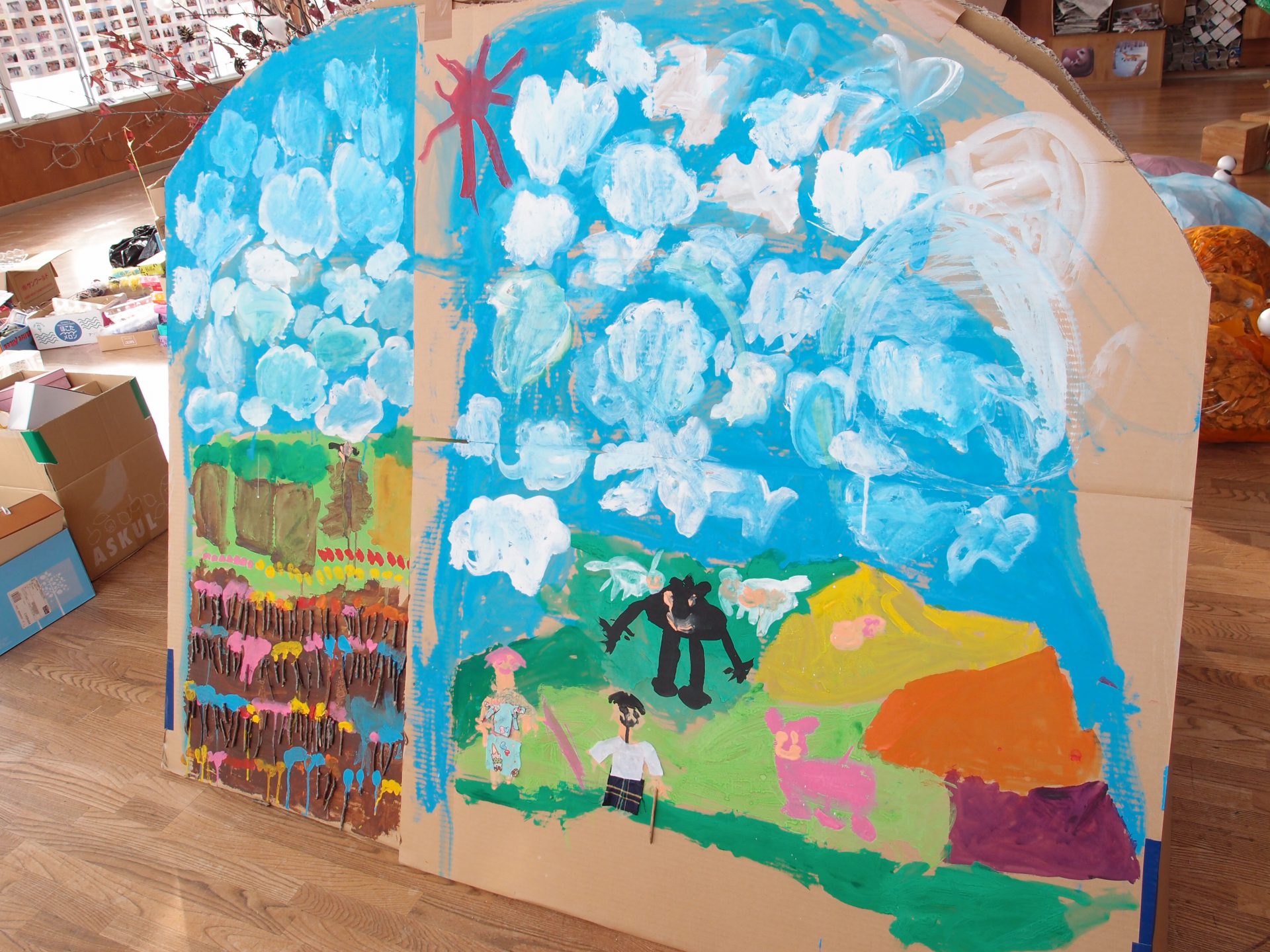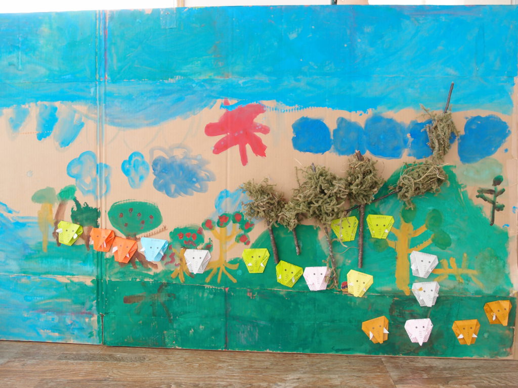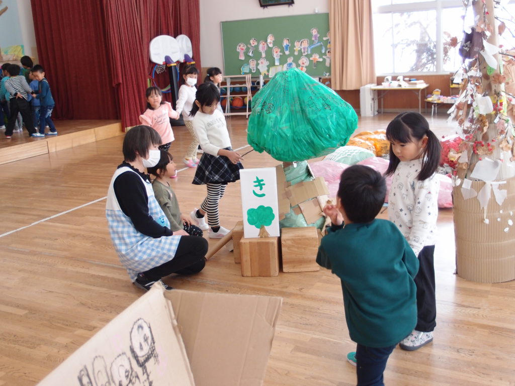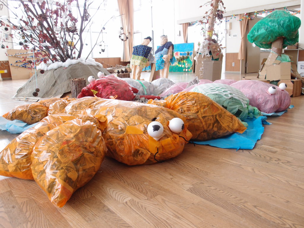 そんな中、ちょうど今年の柏原保育園の年長さんが、秋頃からずっと子ども達同士でアイデアを出しながら野尻湖の製作に取り組んでいるのが目に入りました。