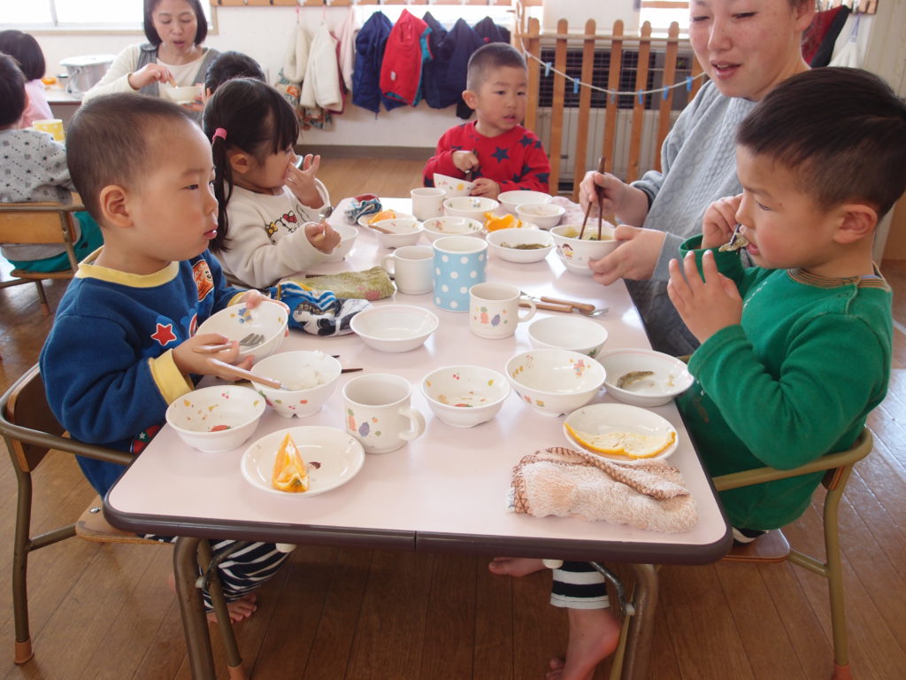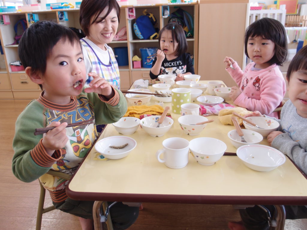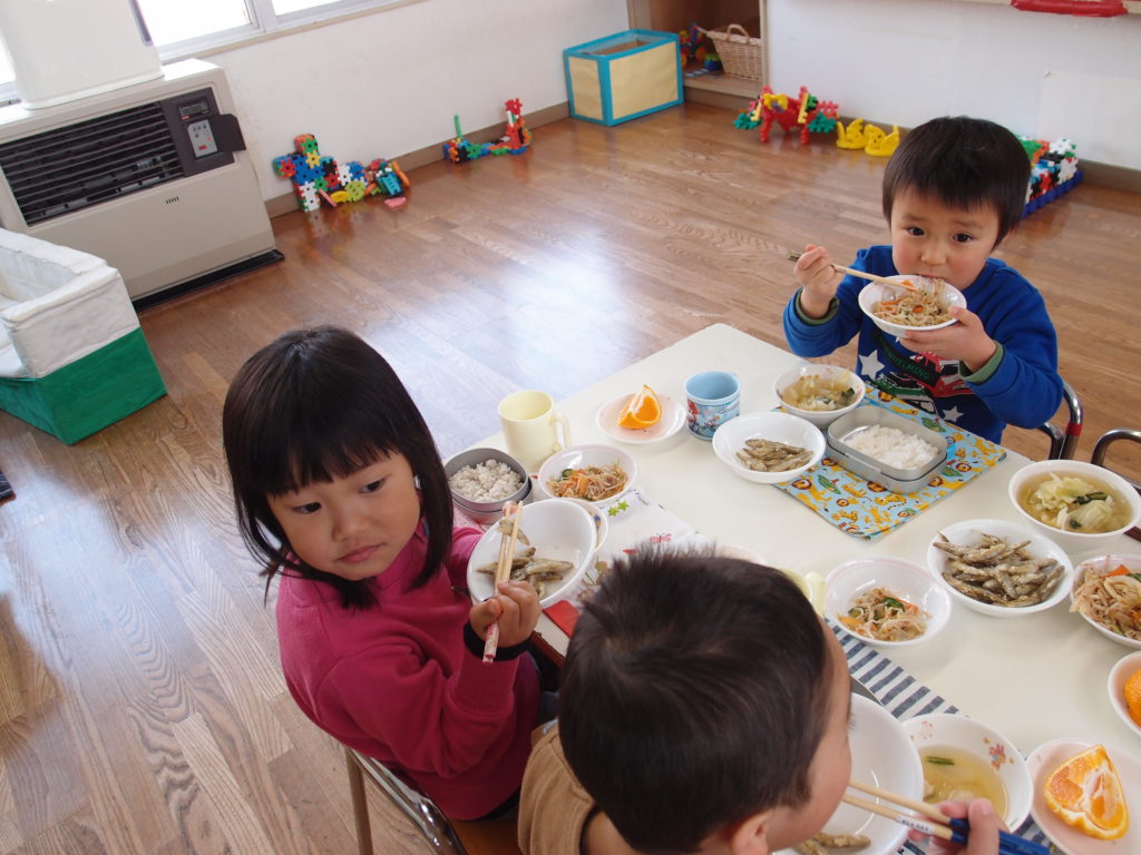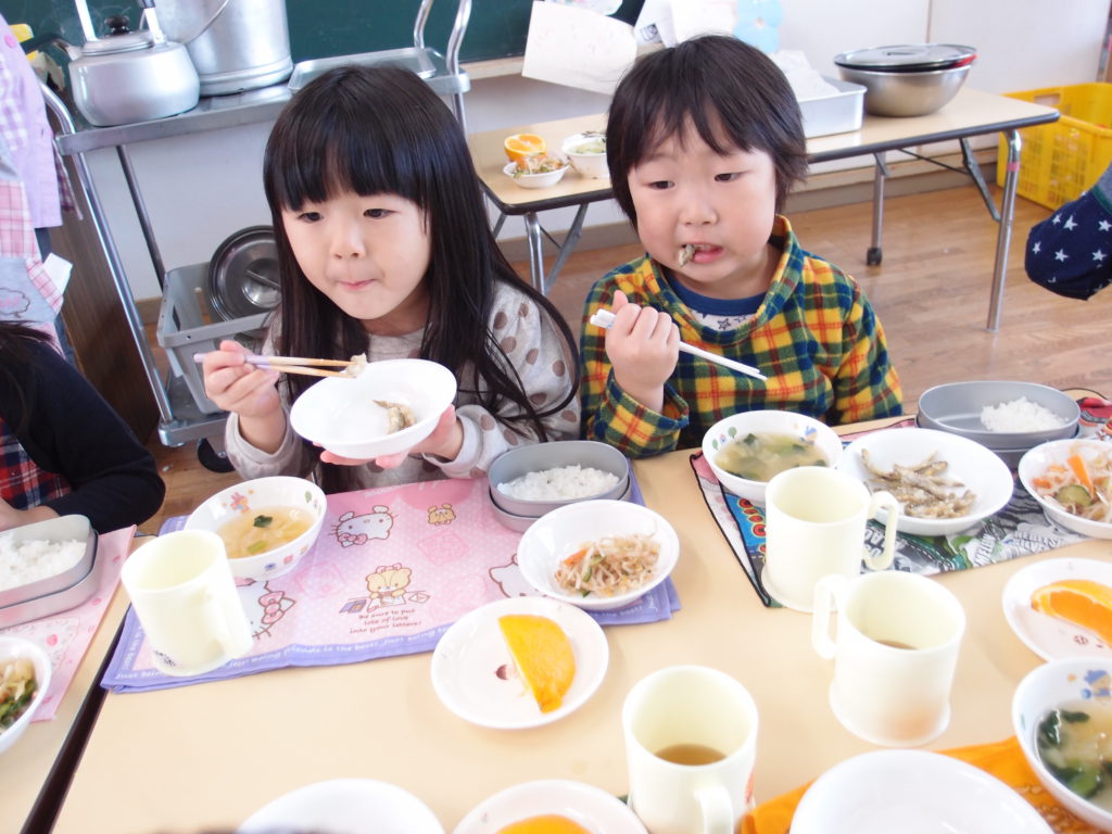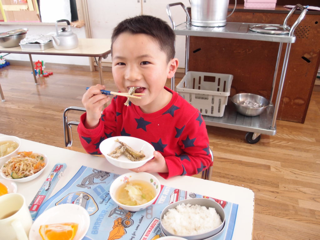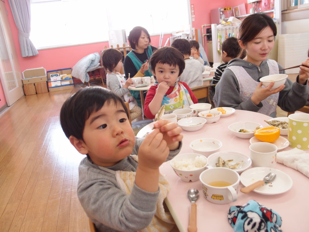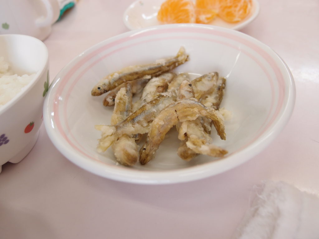 やわらかいわかさぎは未満児さんにも食べやすかったようで、一番初めにお皿が空っぽになっている子もたくさんいました。