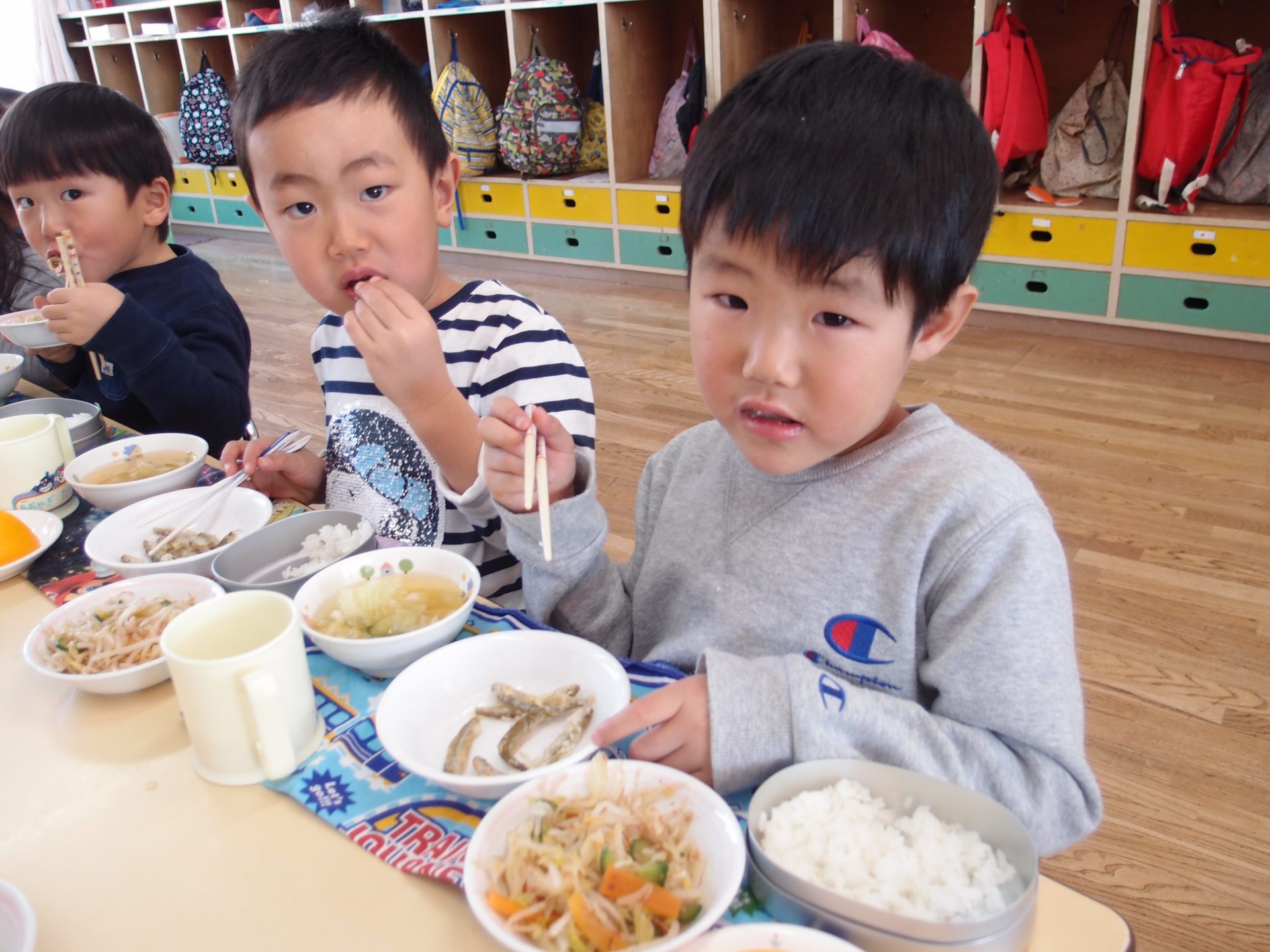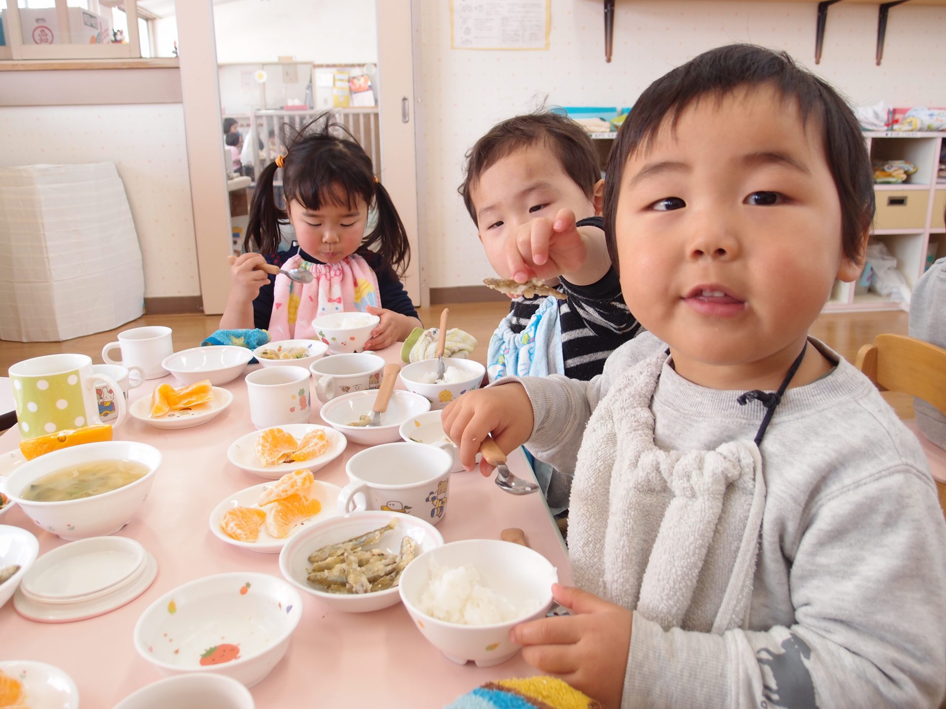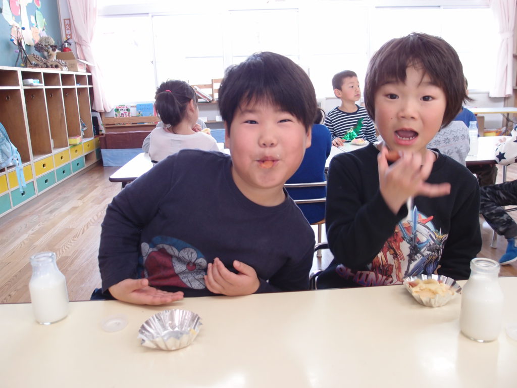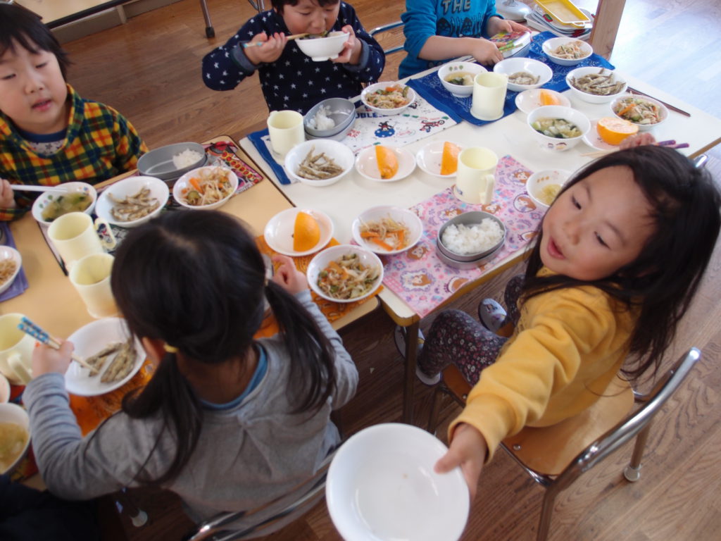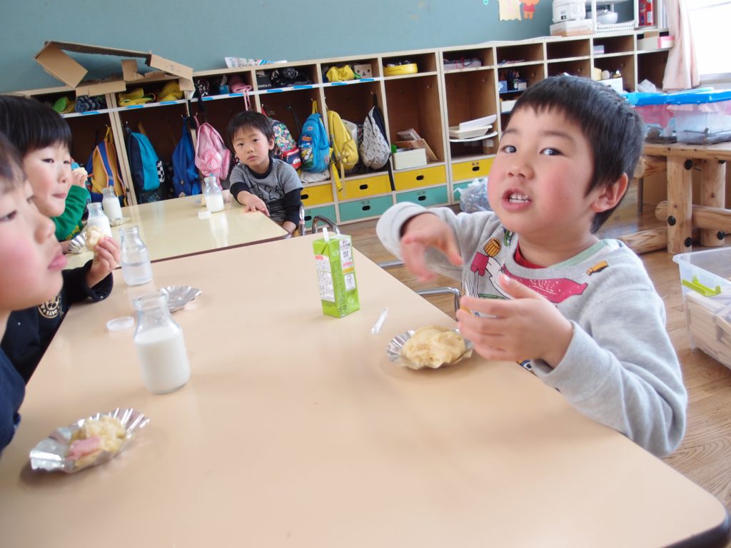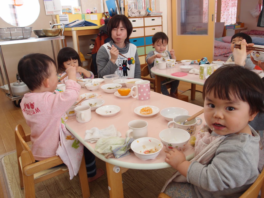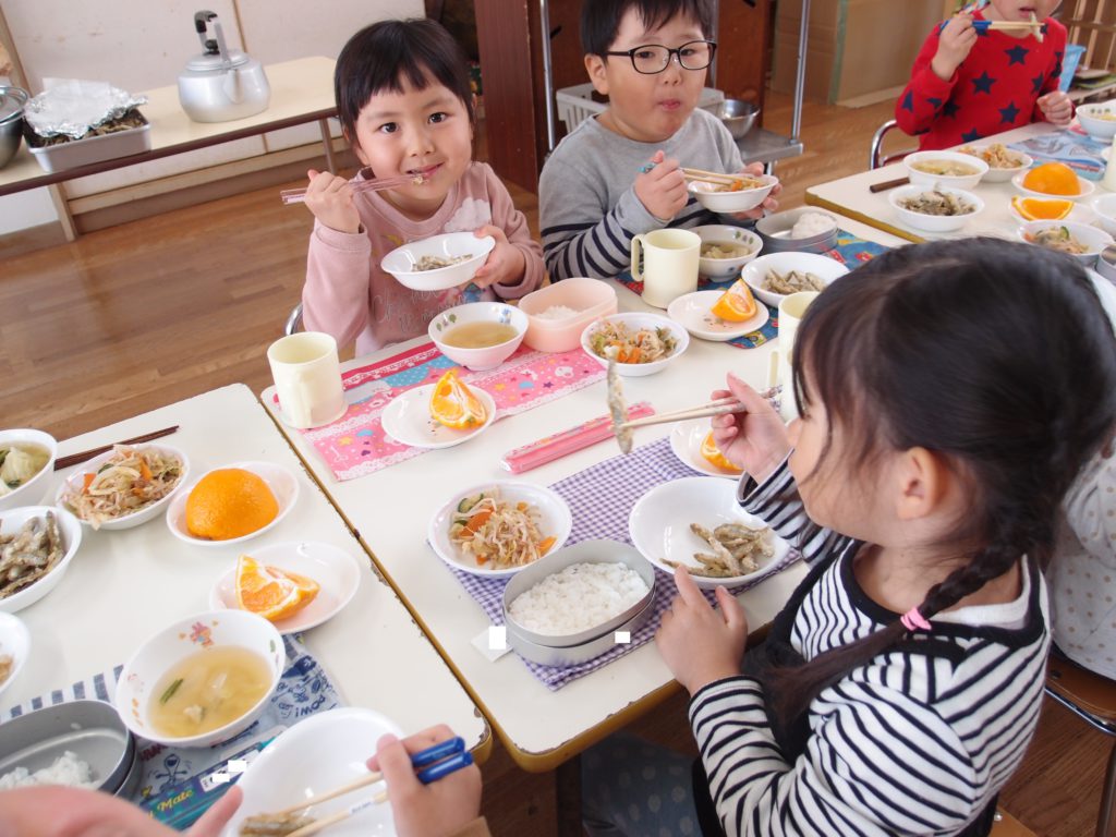 やわらかいわかさぎは未満児さんにも食べやすかったようで、一番初めにお皿が空っぽになっている子もたくさんいました。