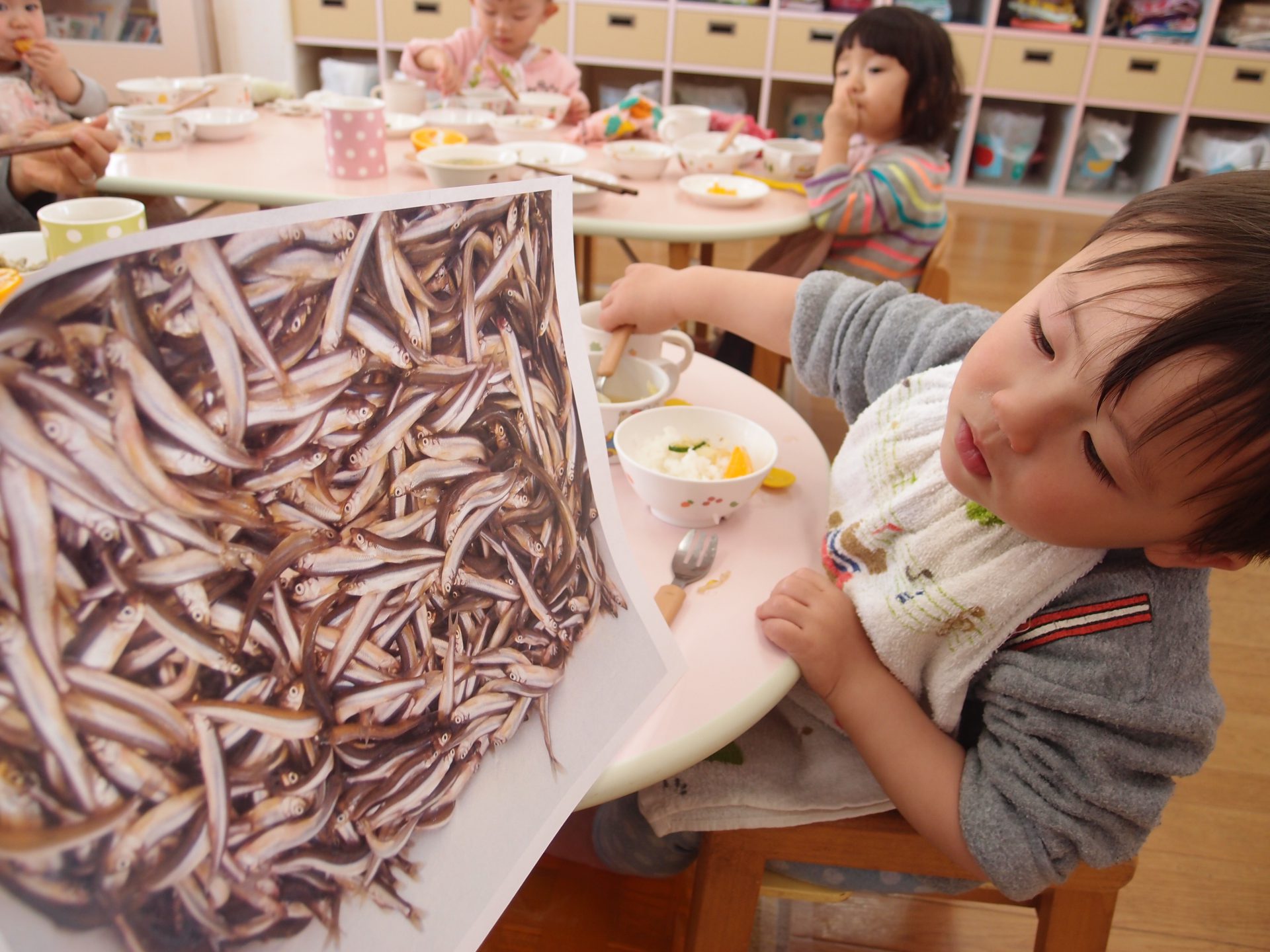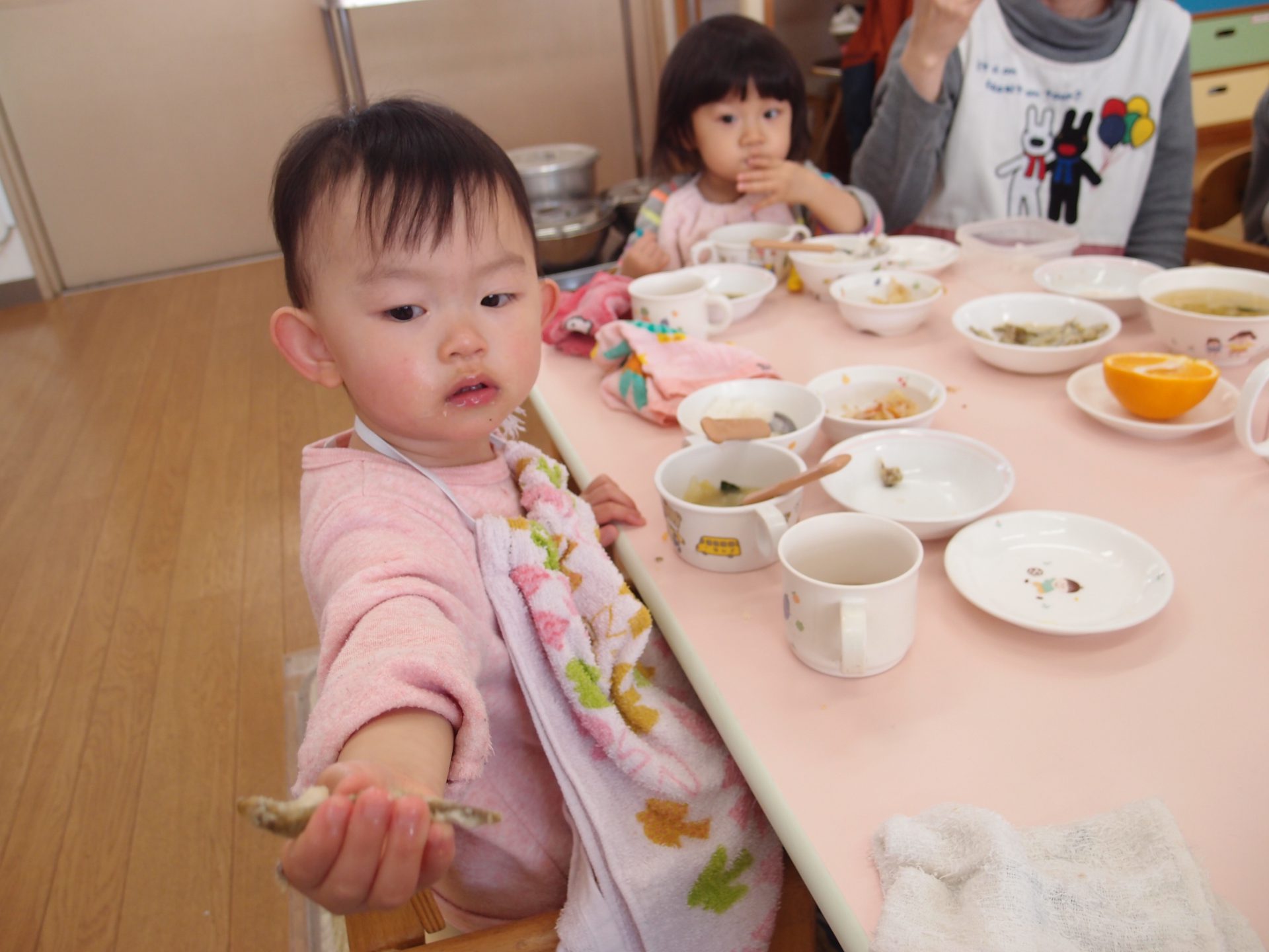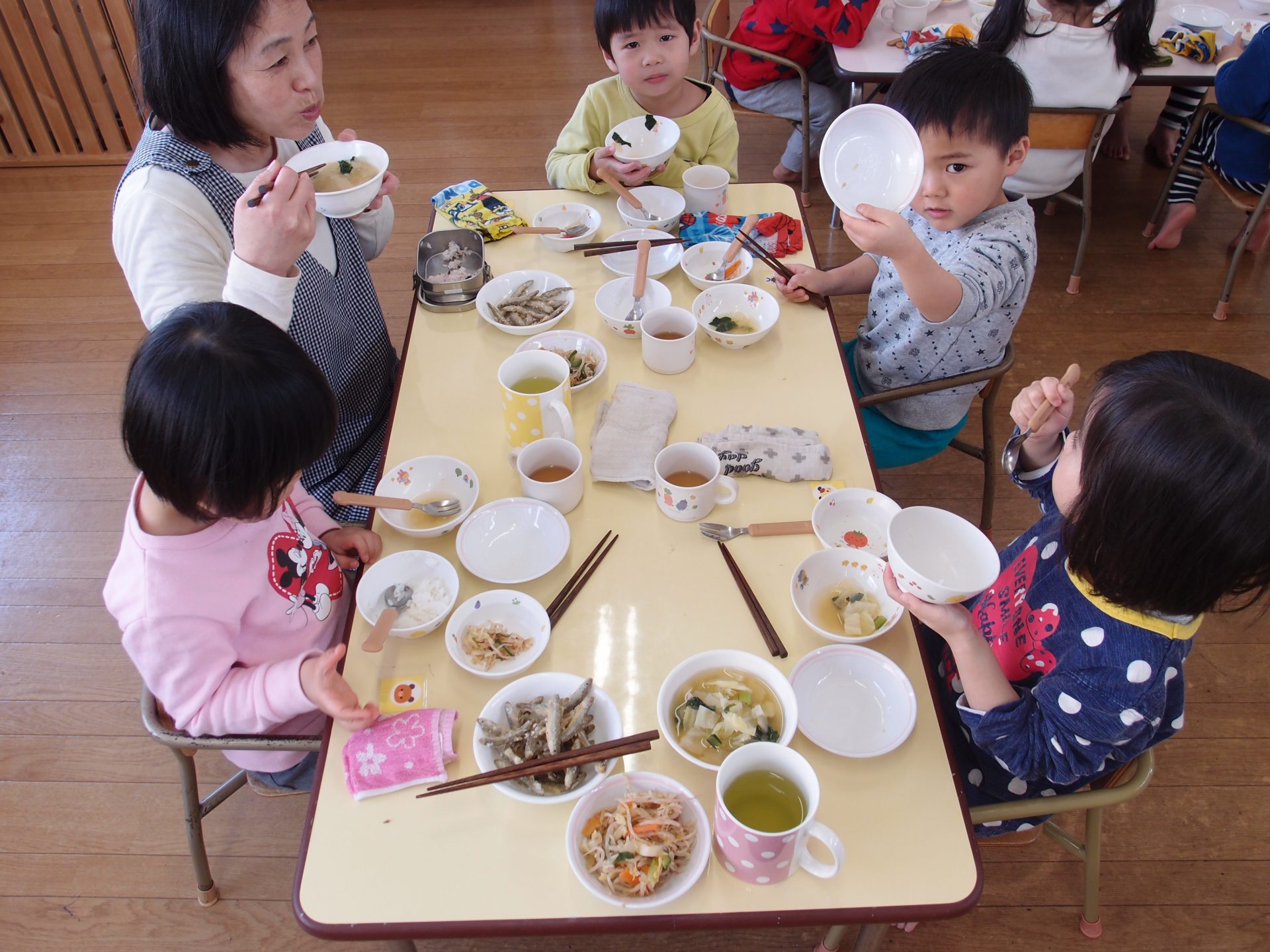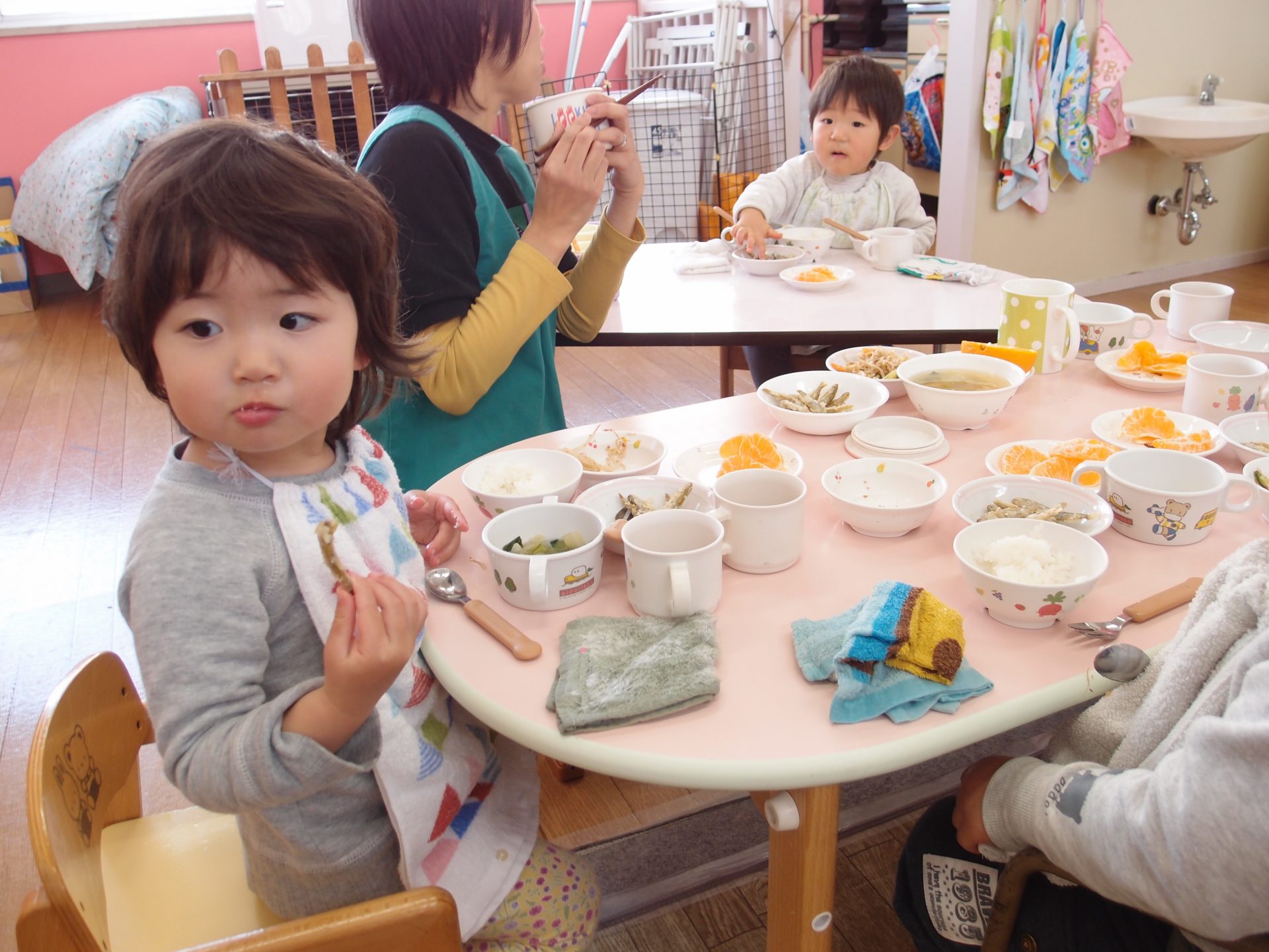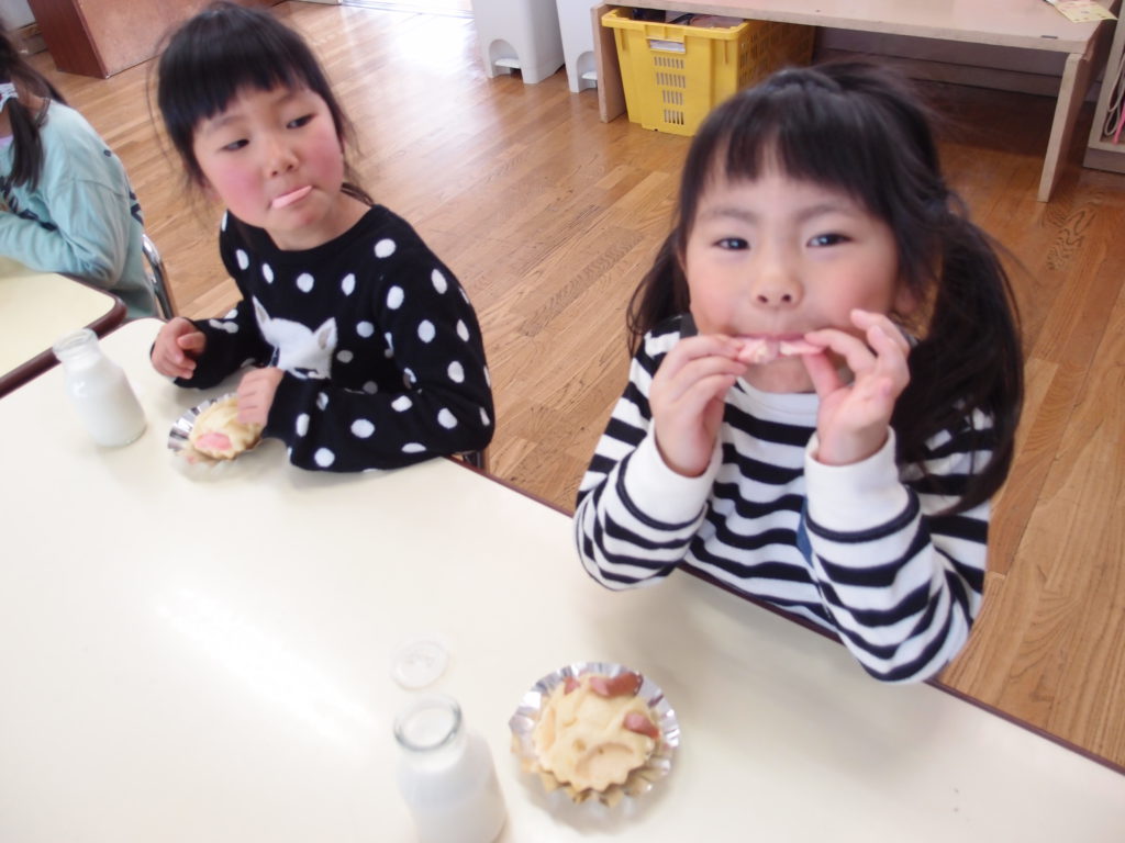 やわらかいわかさぎは未満児さんにも食べやすかったようで、一番初めにお皿が空っぽになっている子もたくさんいました。