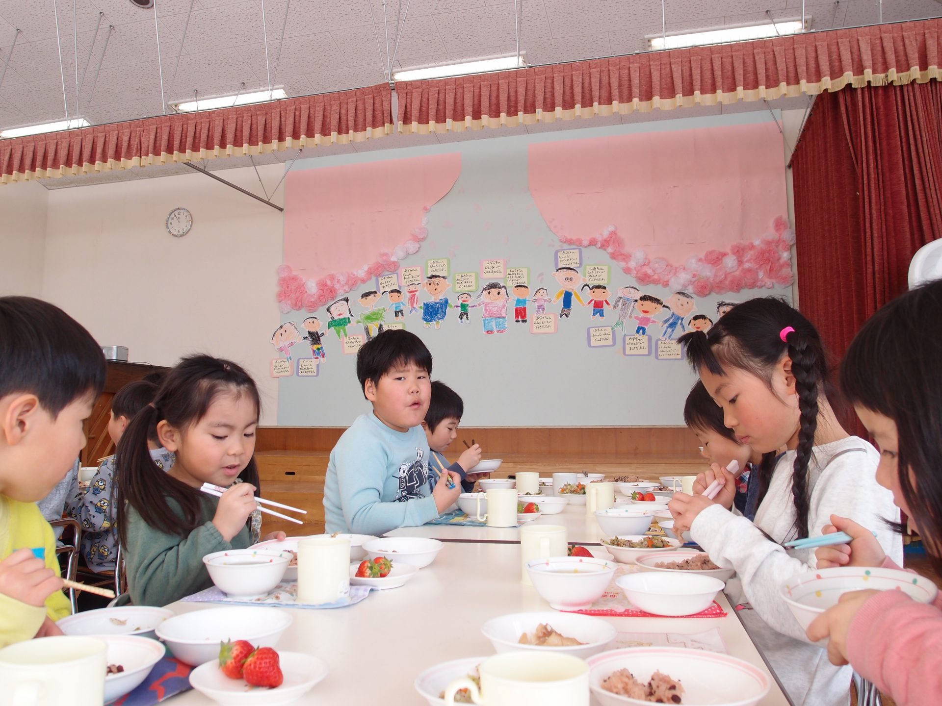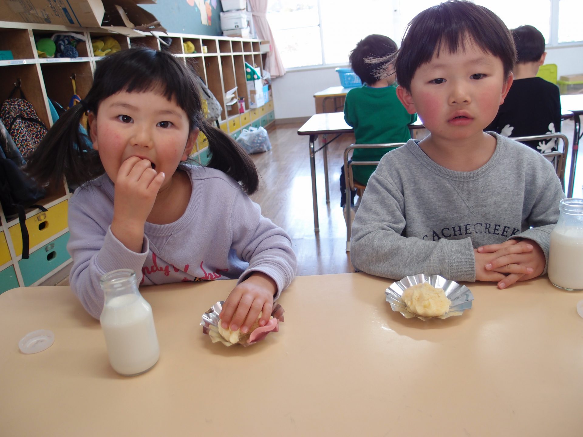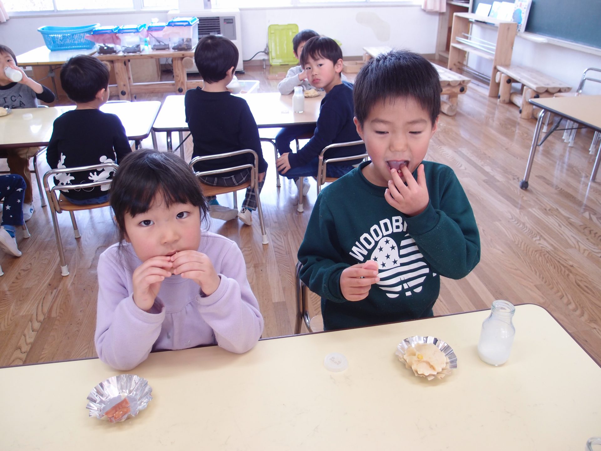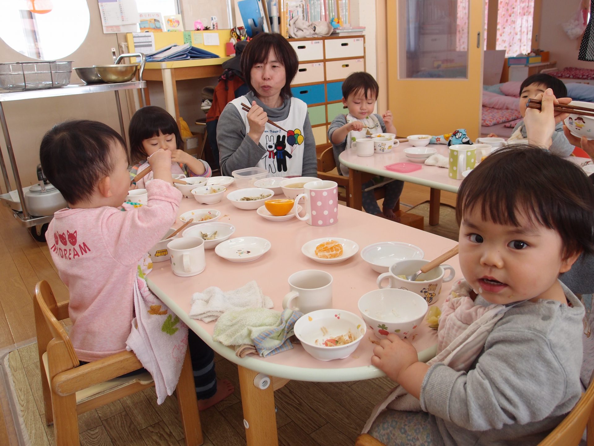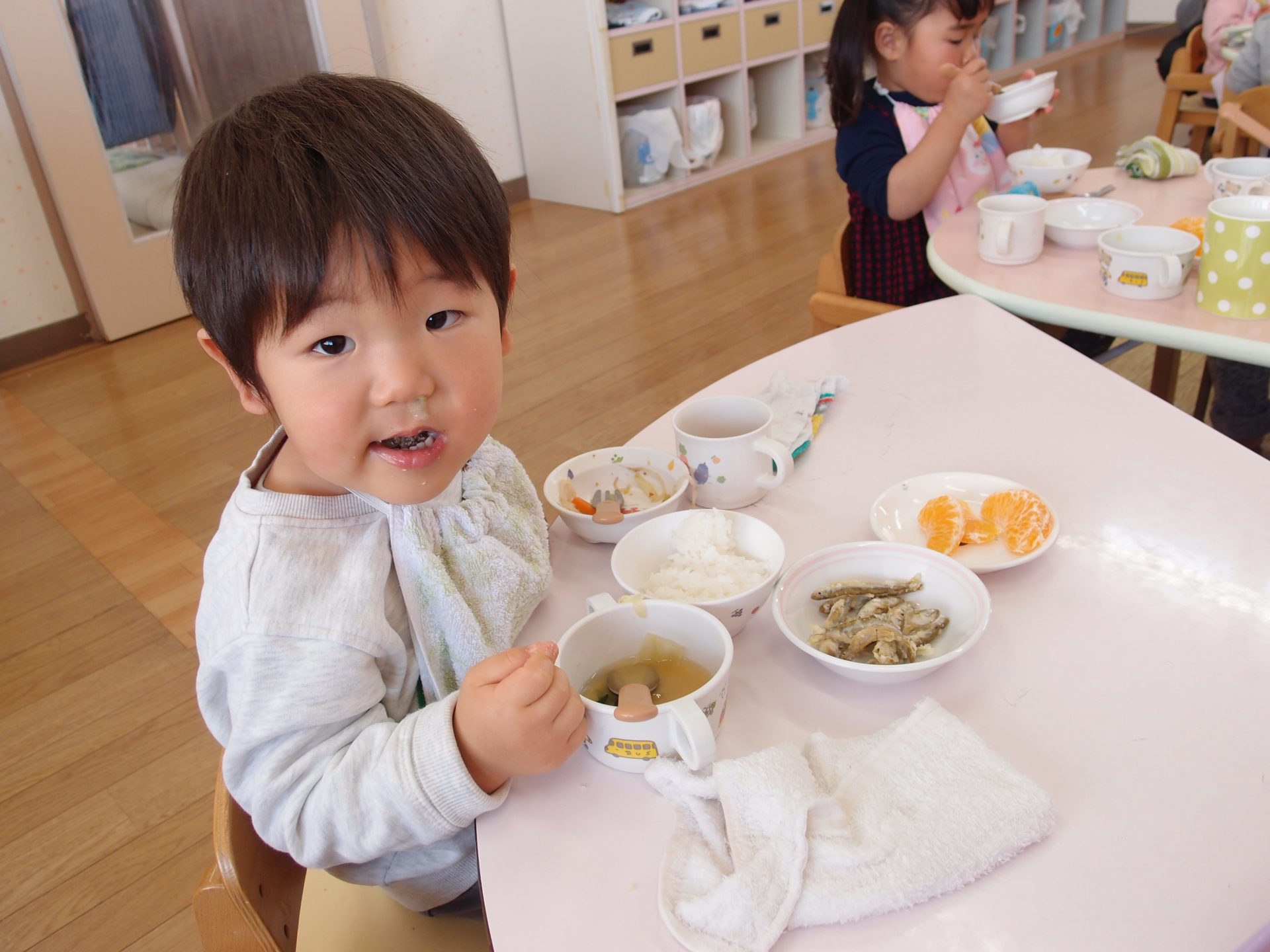やわらかいわかさぎは未満児さんにも食べやすかったようで、一番初めにお皿が空っぽになっている子もたくさんいました。