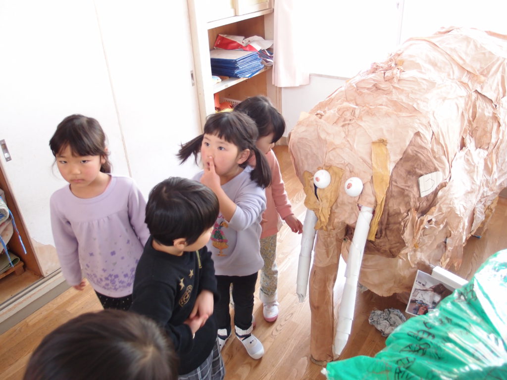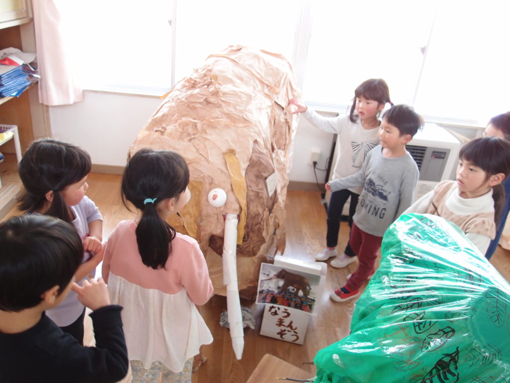 予め担任の先生方にも、「パーツがずれたものもありますが、これはナウマンゾウです!」と説明させていただいて、