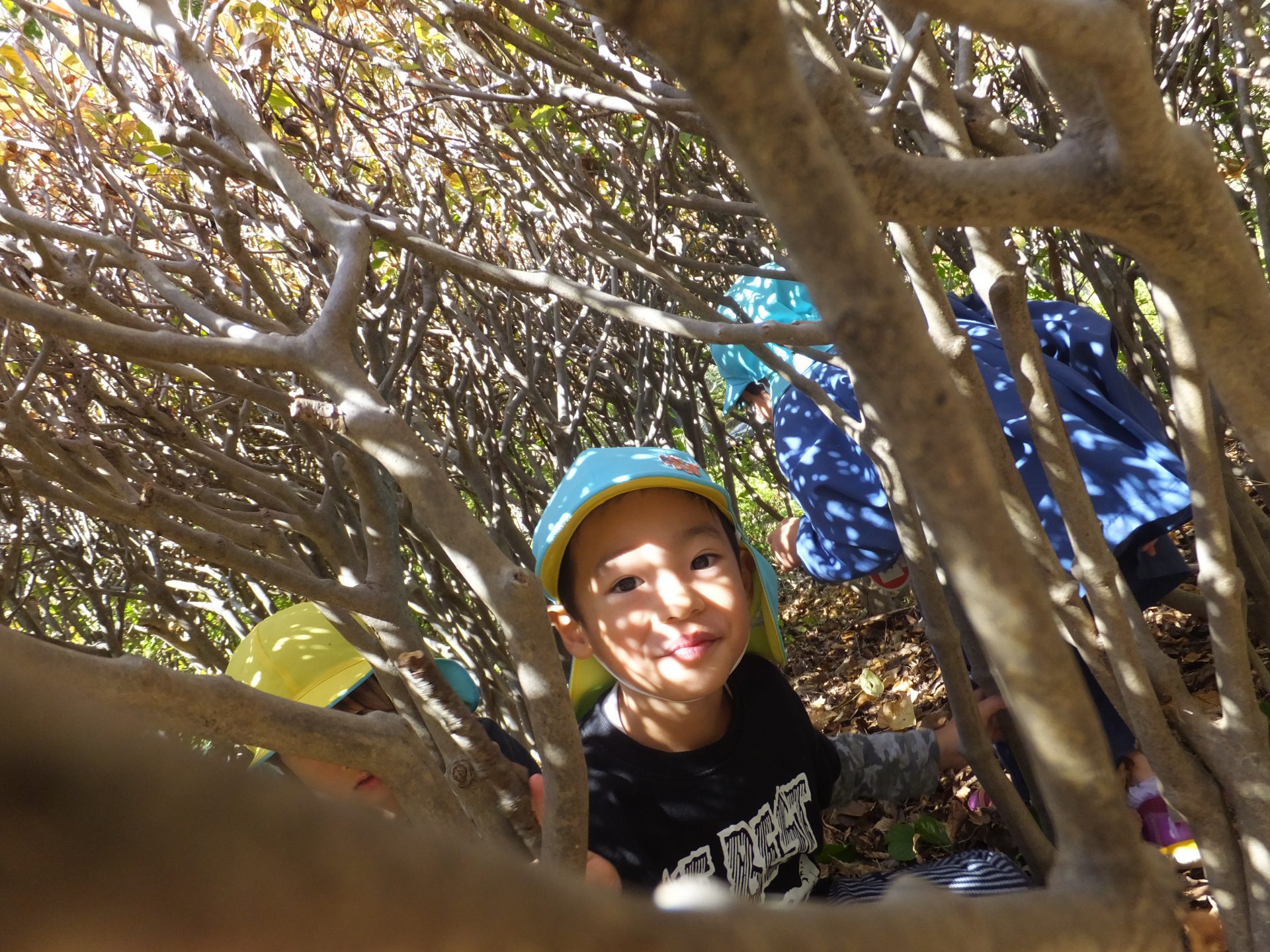 ・垣根の下が通れるようになっていることに気づき、「トンネルだ~!」と喜んで垣根に入って遊んでいた。