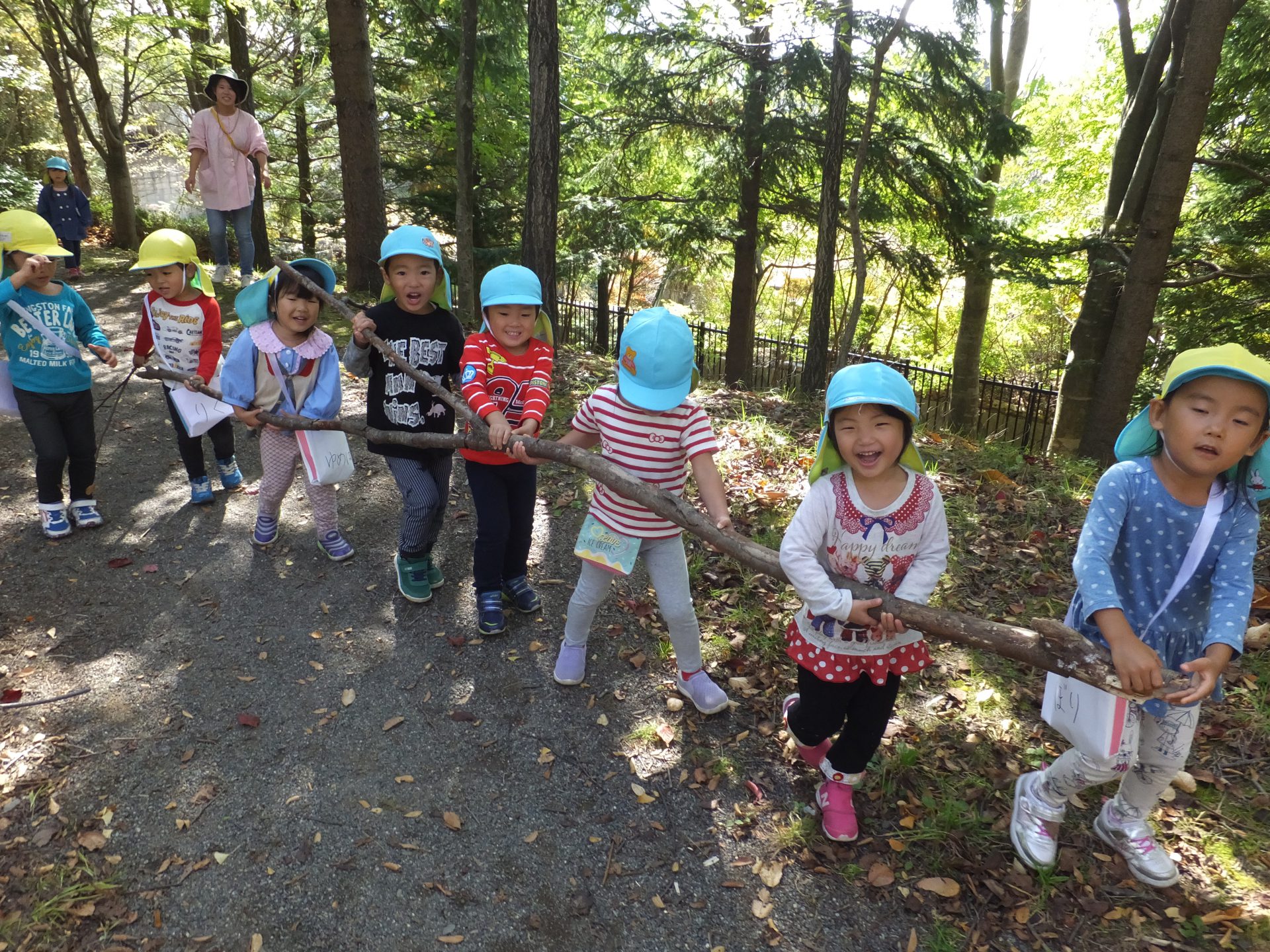 木だけでなく、落ち葉の山やどんぐり探しなど、秋の自然物に触れて遊ぶことができた