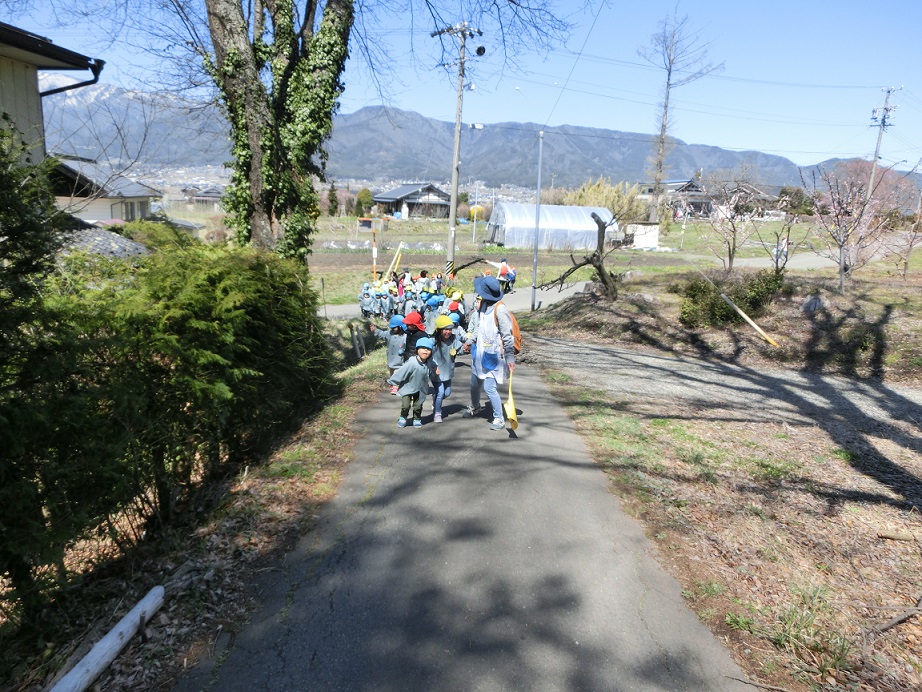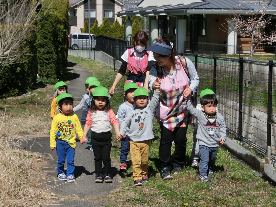 「楽しかったね」「桜の花きれいだったね」楽しく会話をしながら保育園に帰りました。