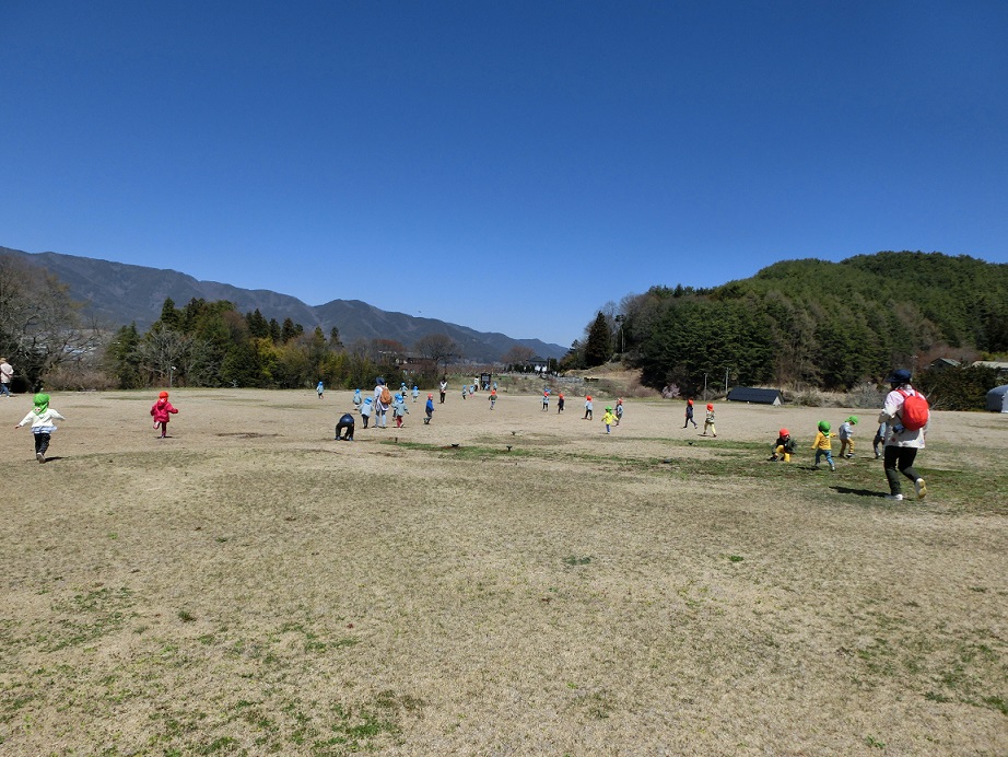 桜の花見の後は広場に移って思い切り走り回ったりして遊びます。