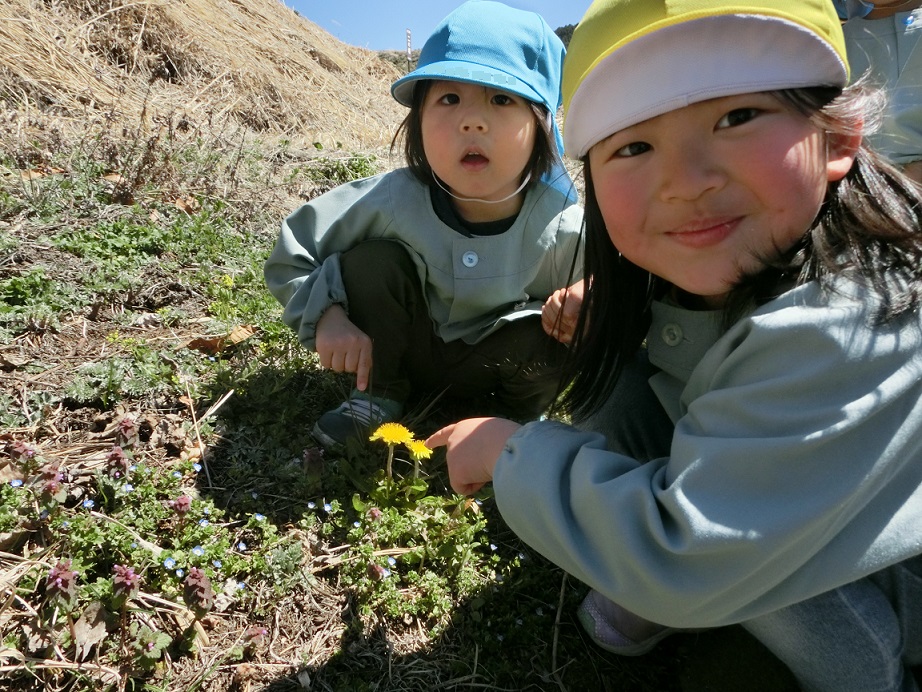 「見て見て!このタンポポ。日本のタンポポだよ」絵本や図鑑でしっかりタンポポを見ていたので西洋タンポポでないことに気付きました。