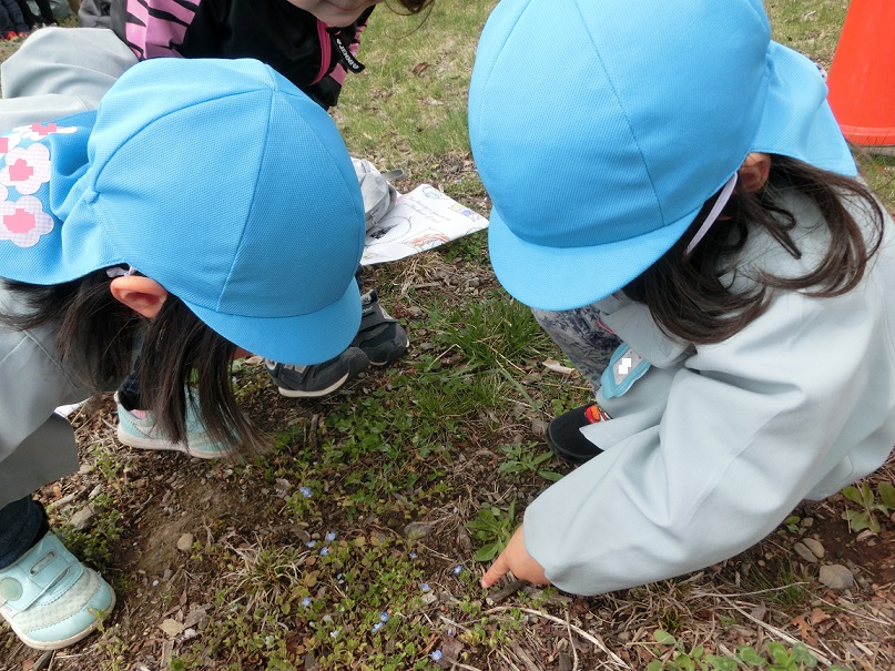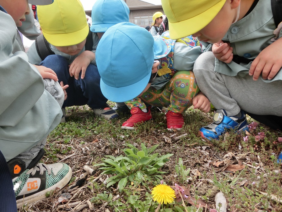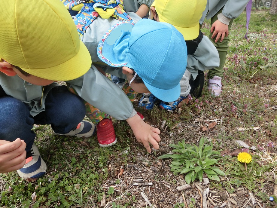 広場についてすぐに「てんとう虫見つけた」