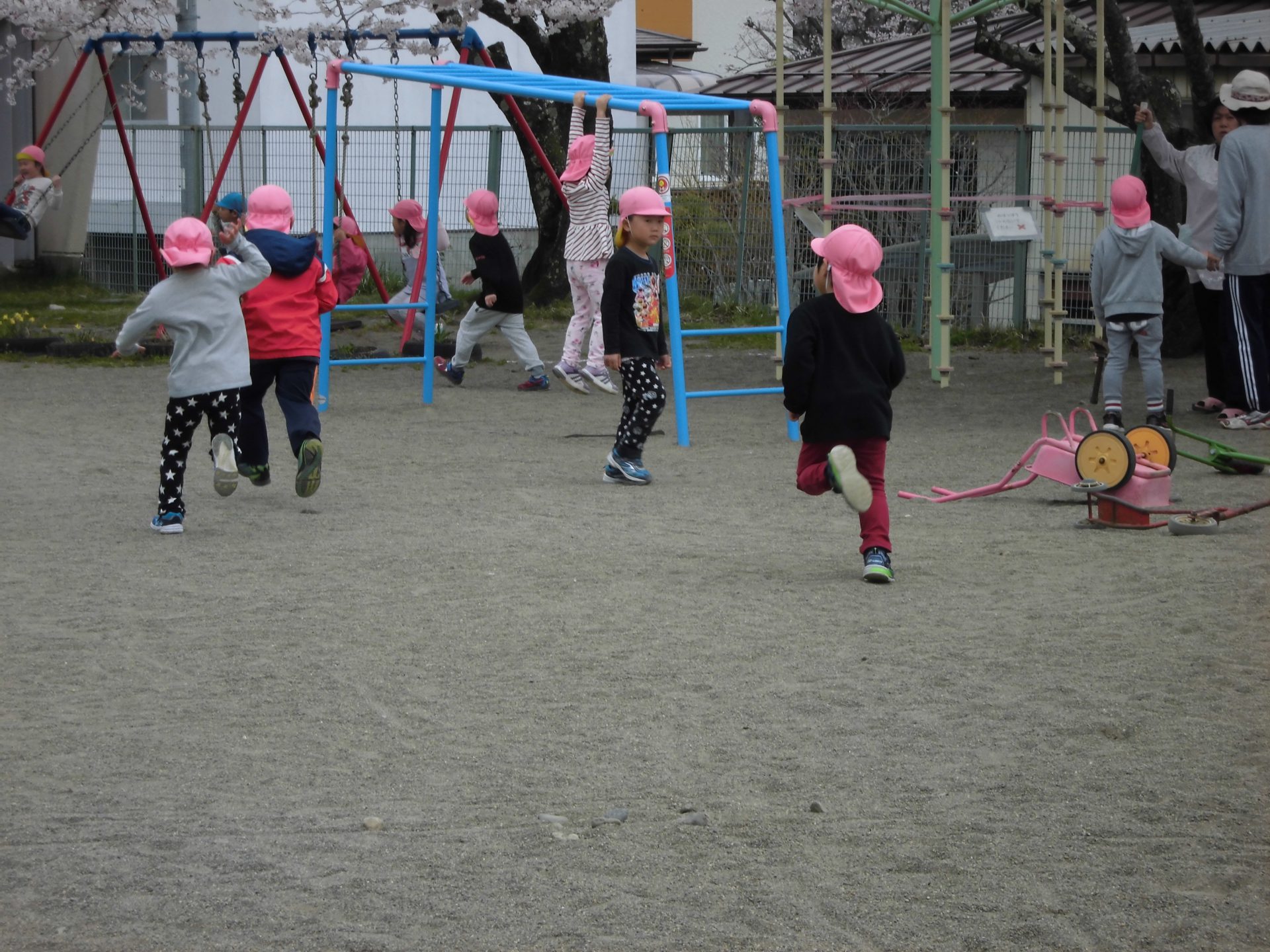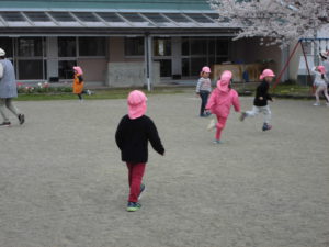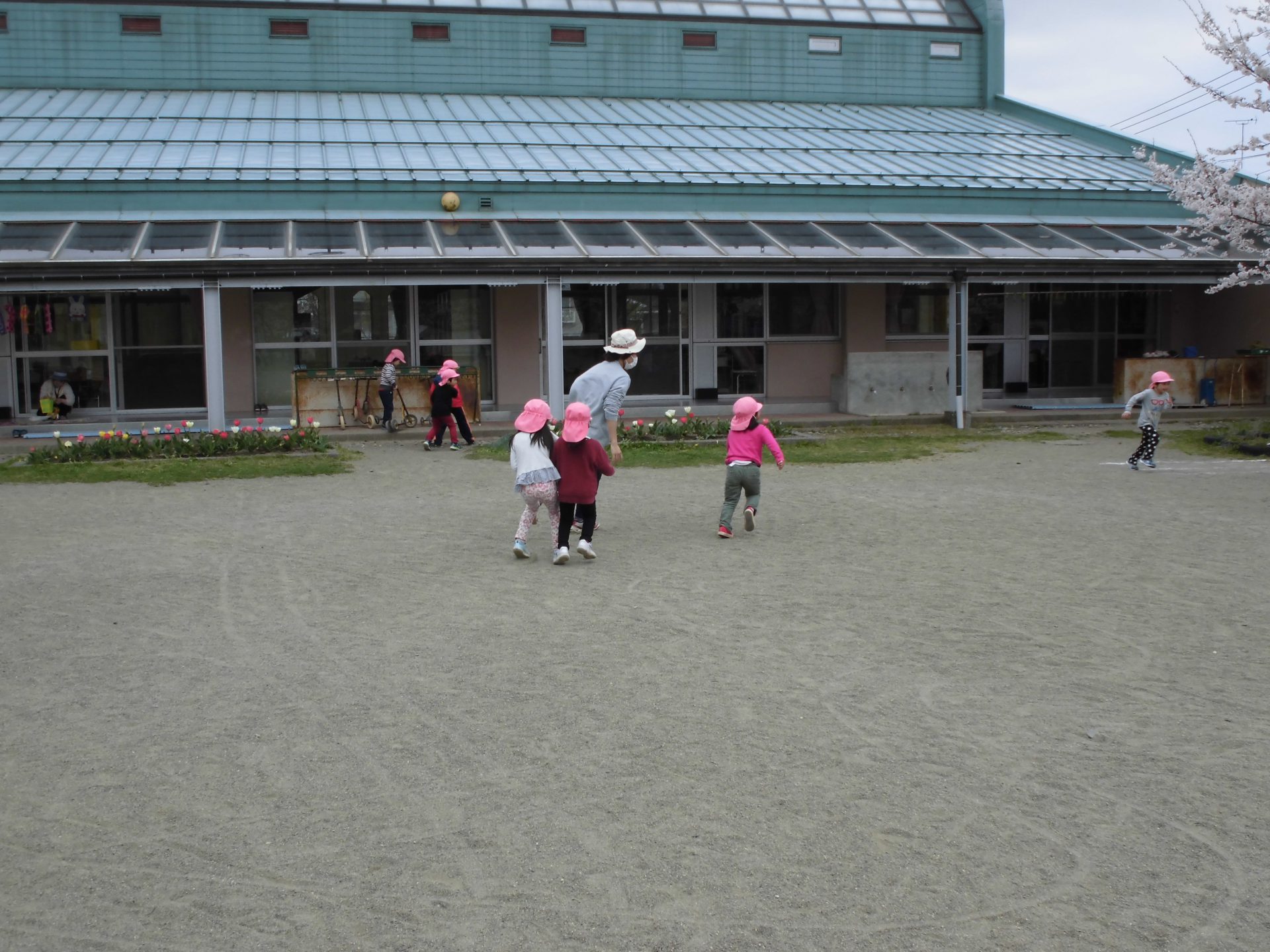 ☆鬼ごっこも盛り上がっていました。先生も巻き込んで「わいわい」「きゃーきゃー!!」