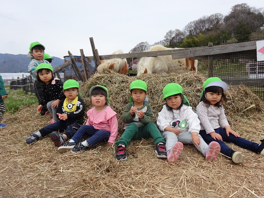 ポニーも草だけでなく干し草も食べるということにも2歳児なりに気づいたようでした。