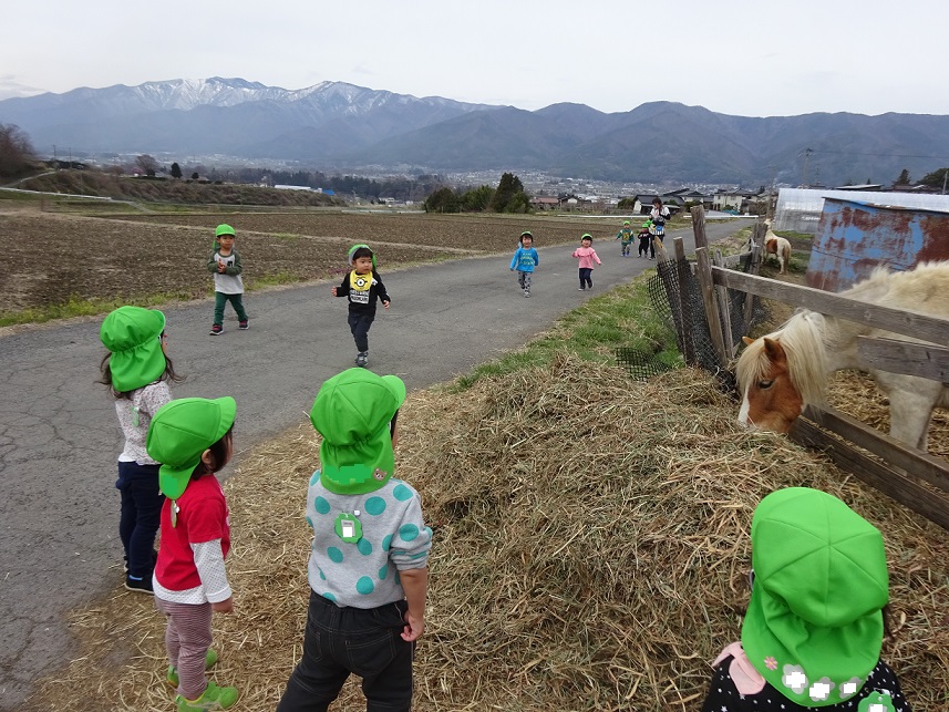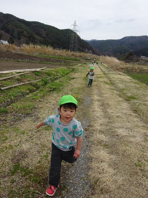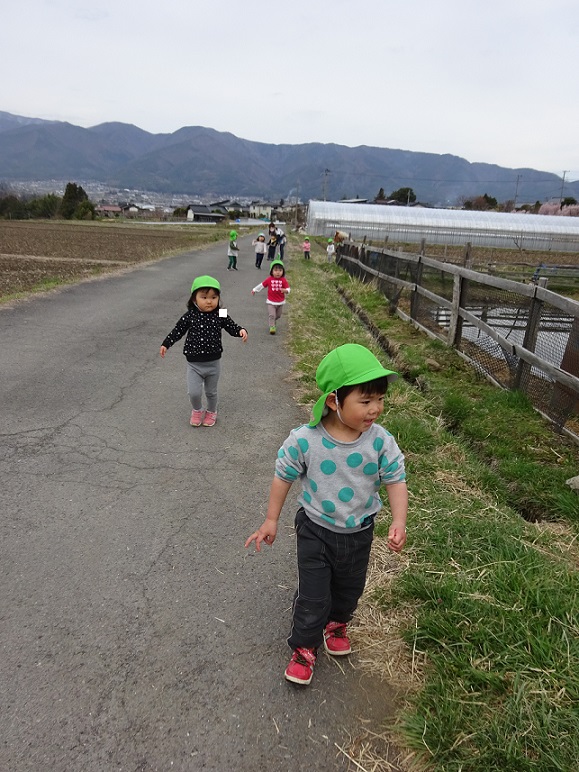 2歳児「こあら組」が散歩に出掛けました。みんな張り切って走っていますね。