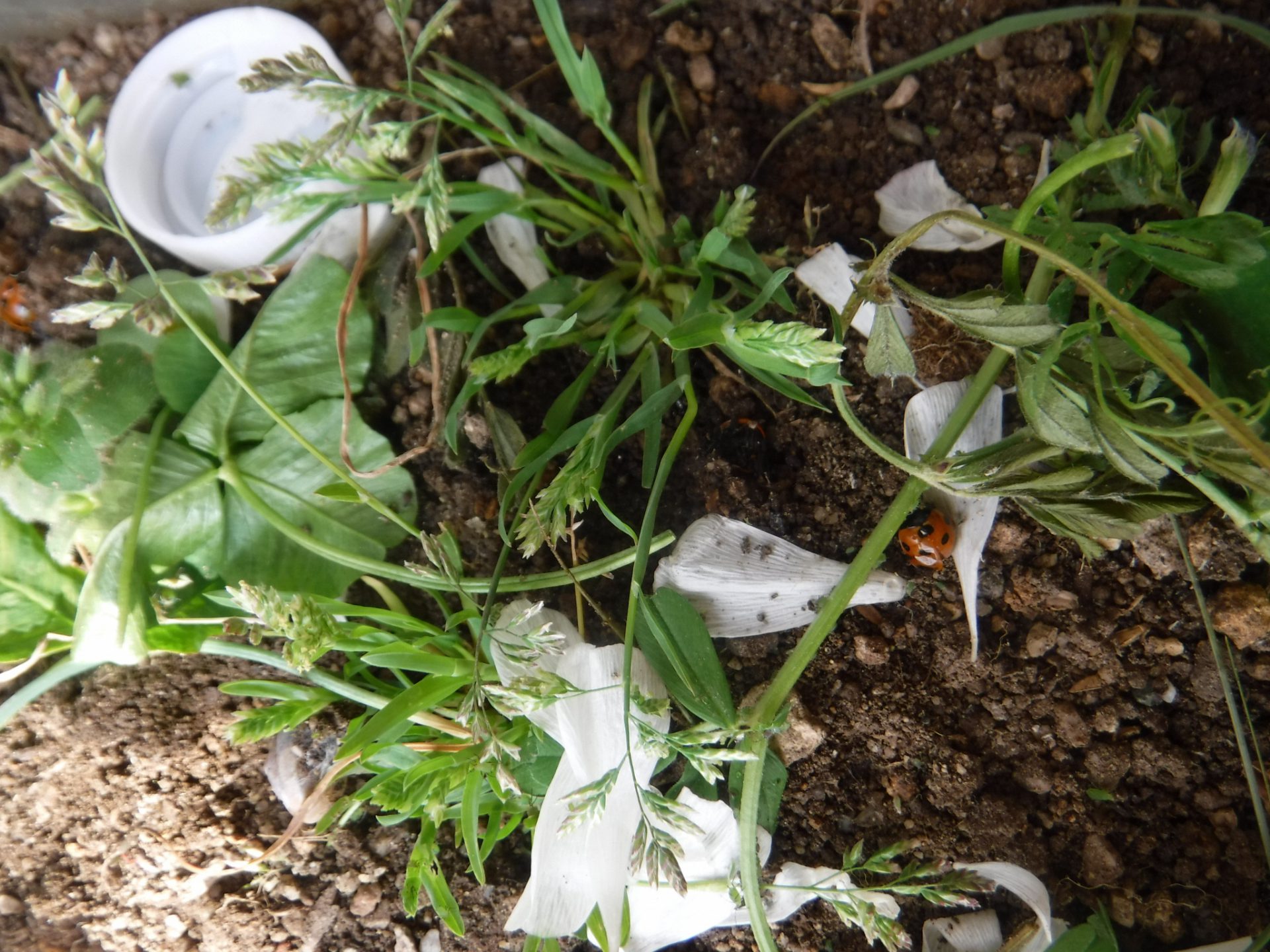 テントウムシの家ができていました。家から捕まえてきたテントウムシを飼いたい!という事で